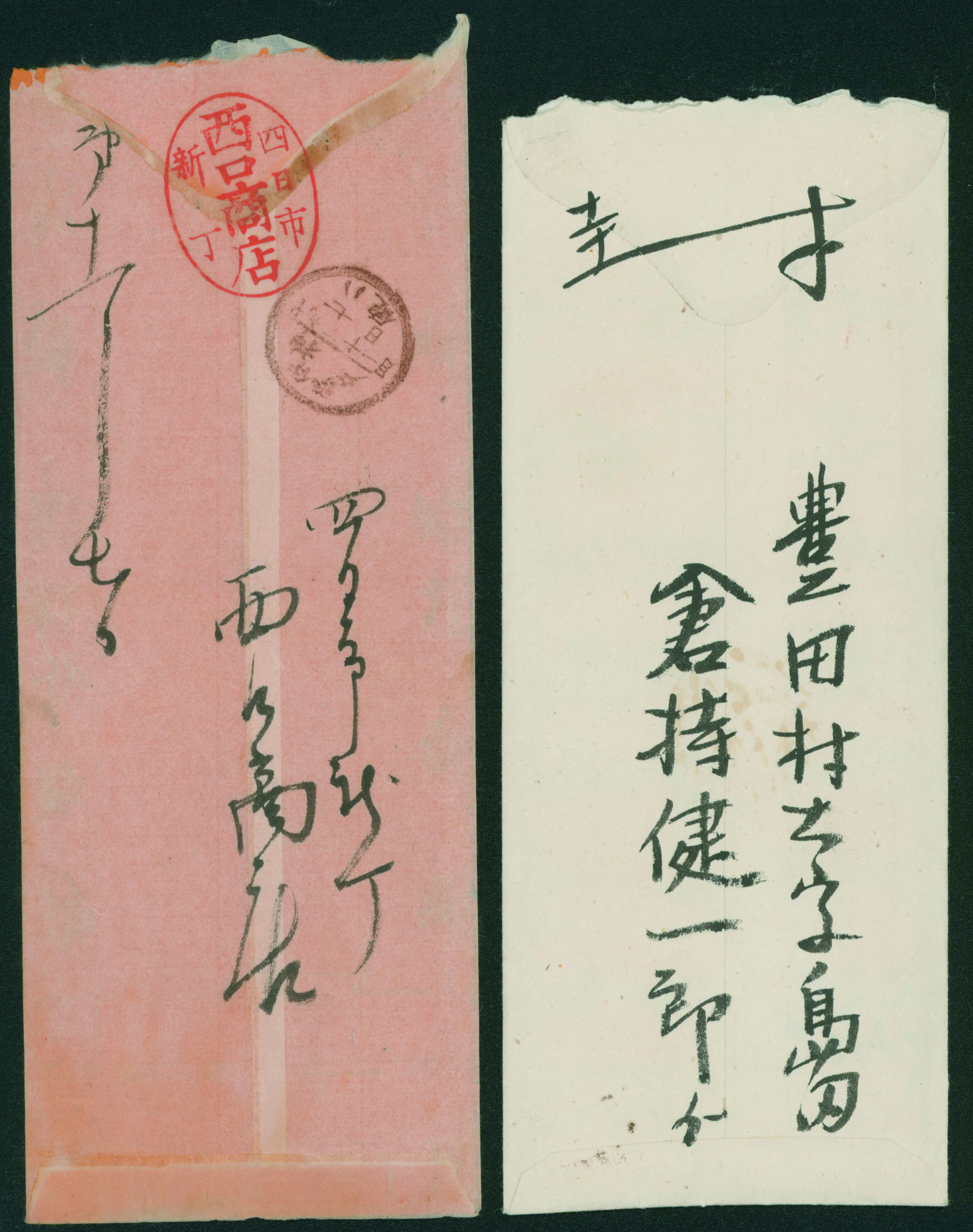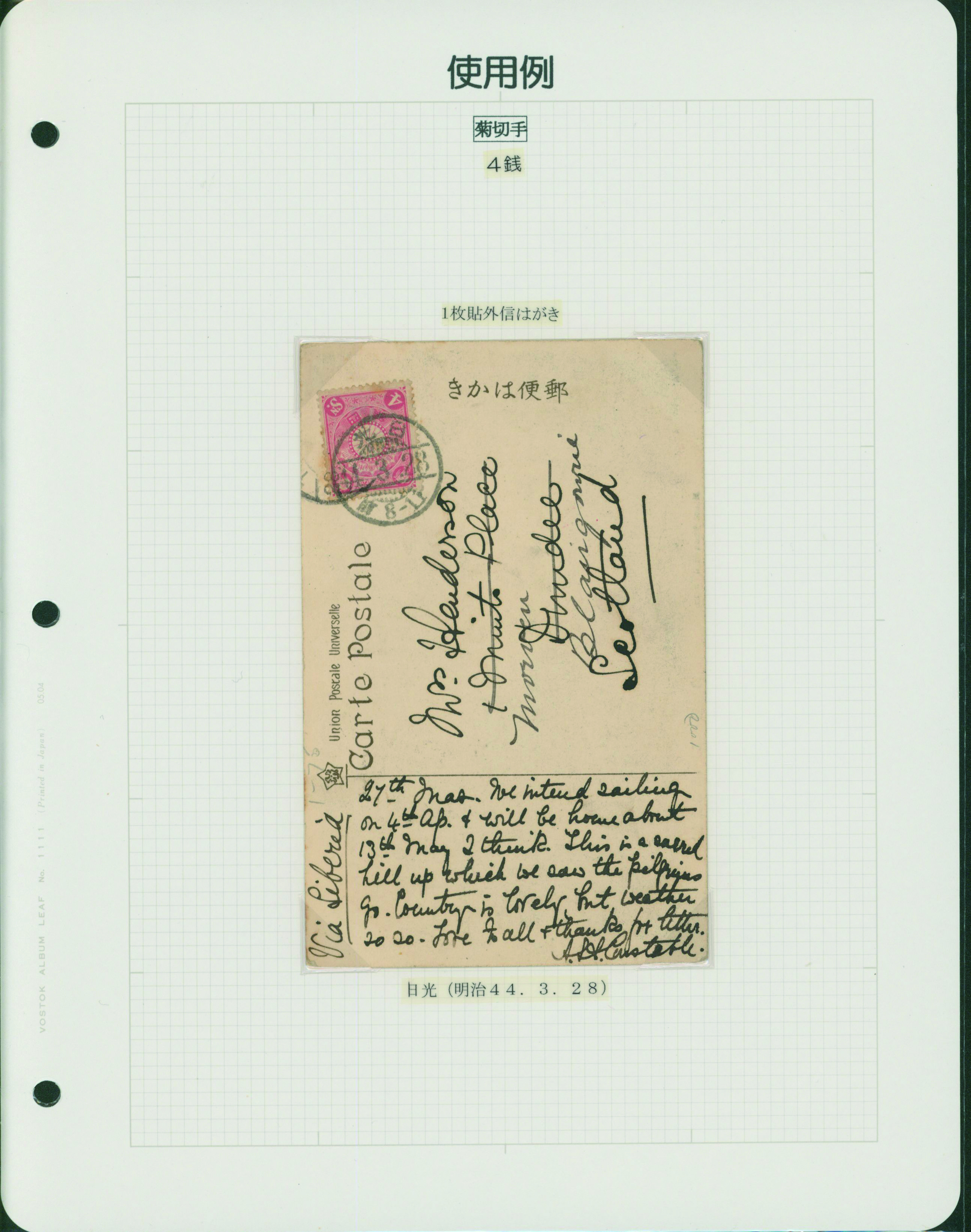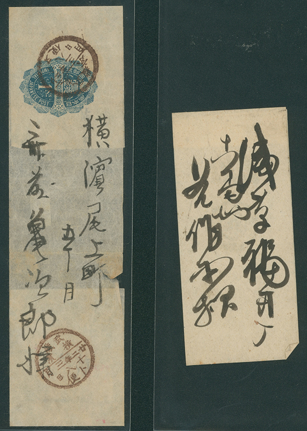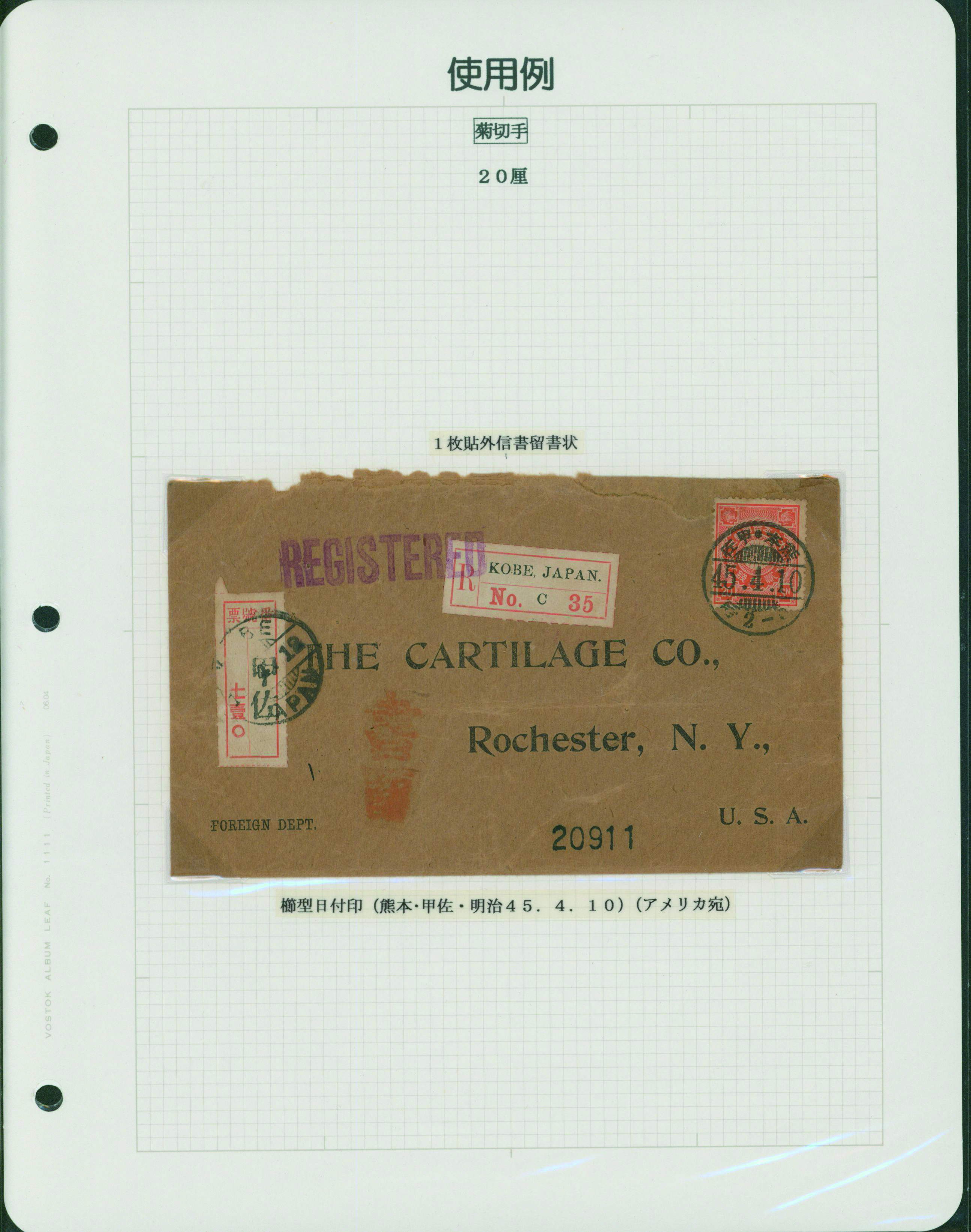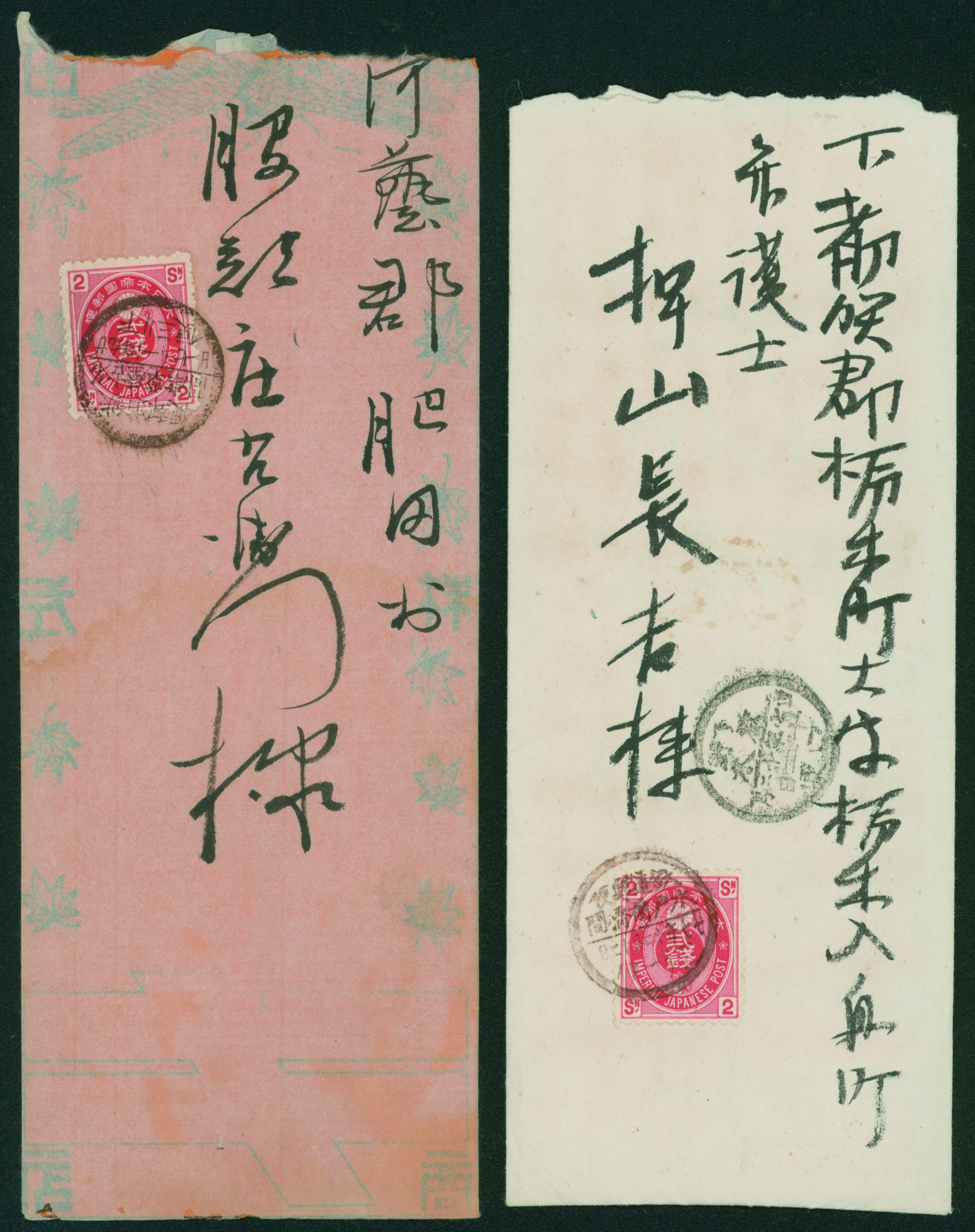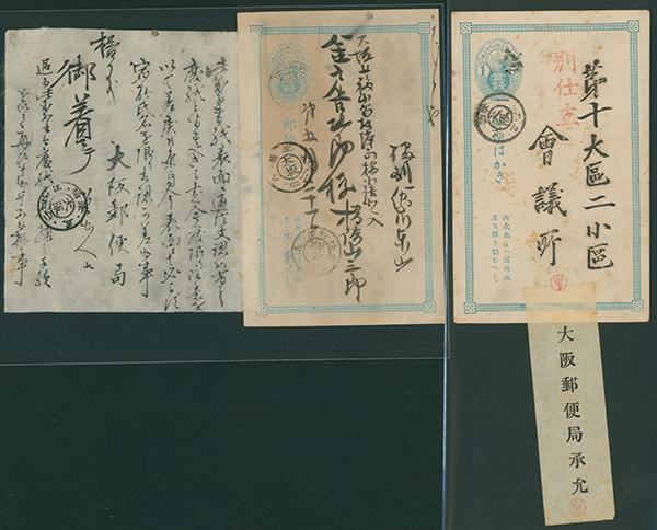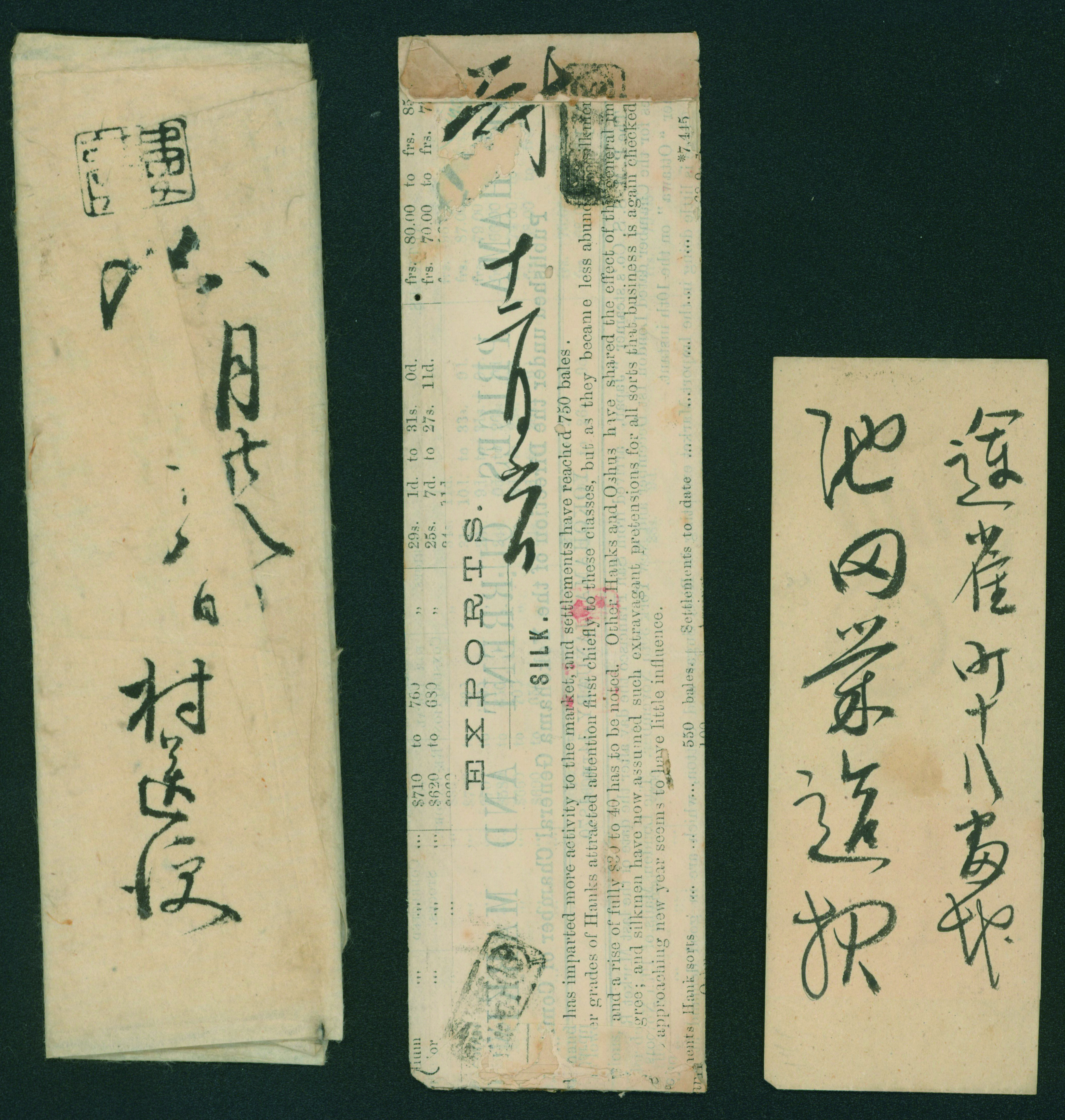 [使用例] 菊2銭 単貼り シミ 外信 カバー3通 印刷物、台北発、荷物タグ