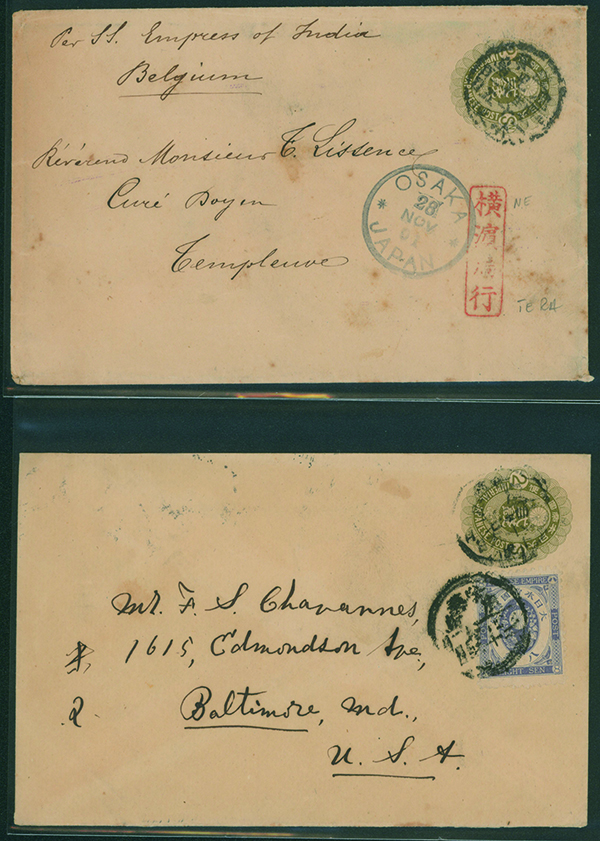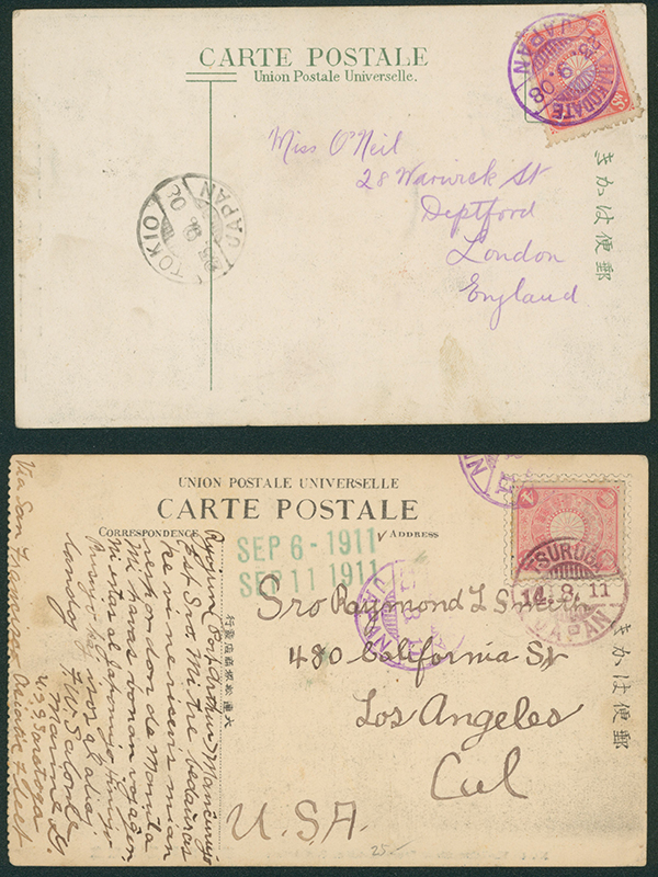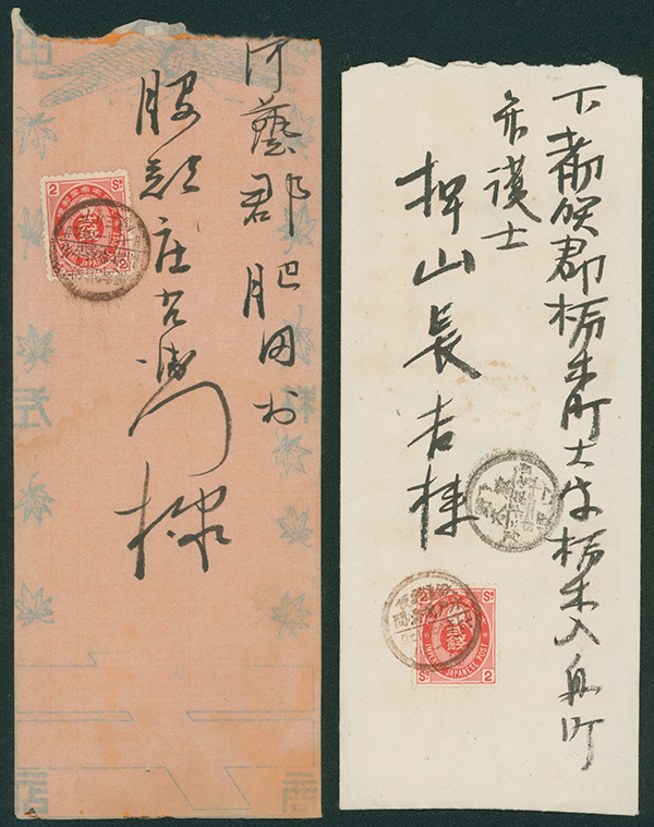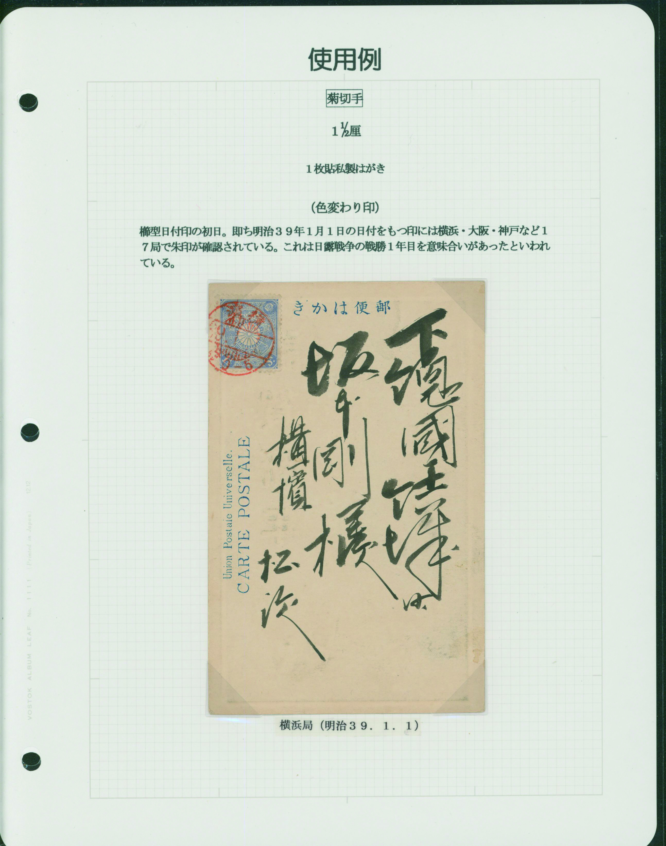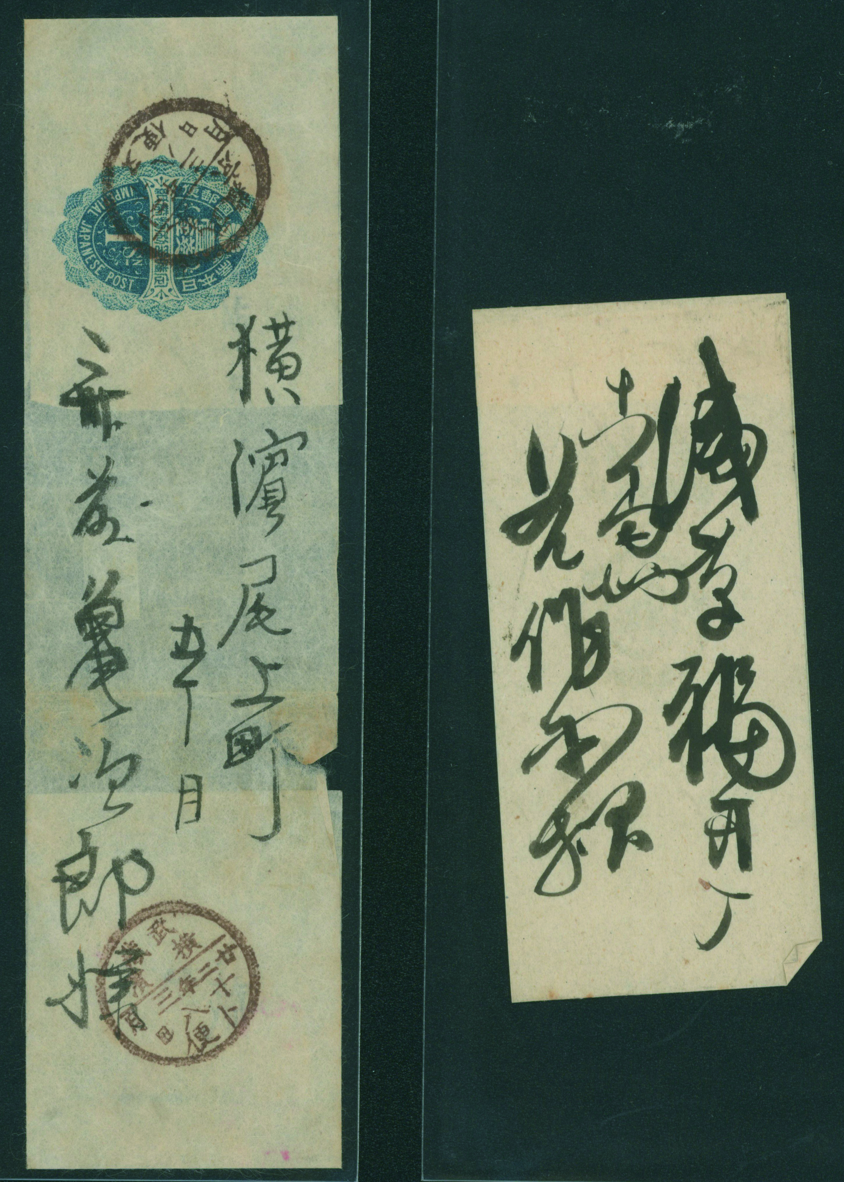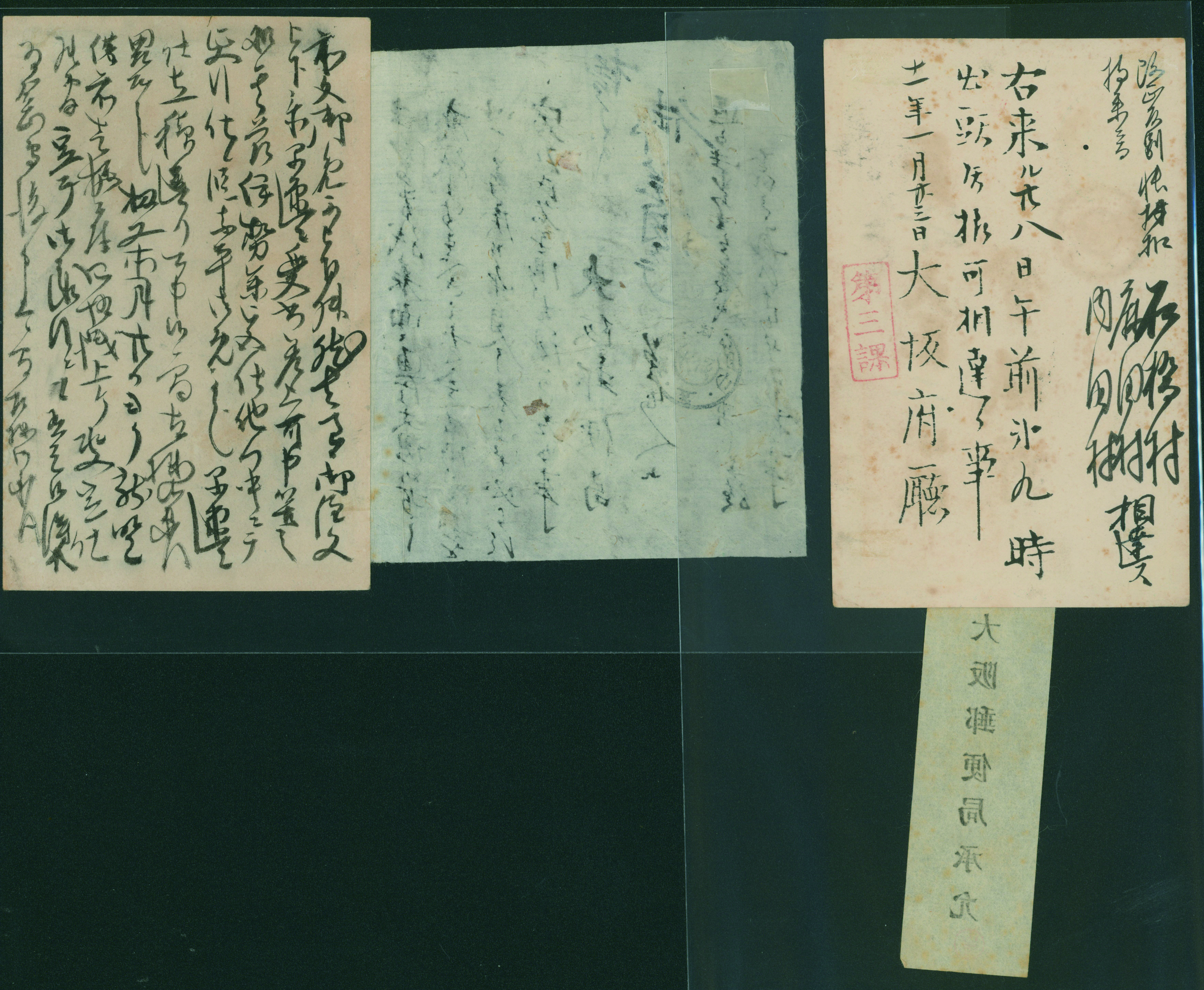 [使用例] 菊2銭 単貼り シミ 外信 カバー3通 印刷物、台北発、荷物タグ