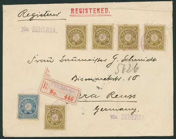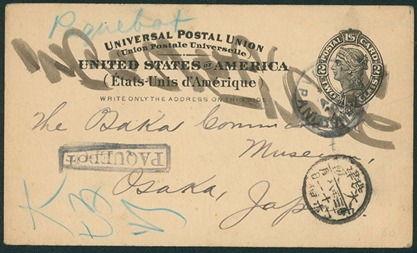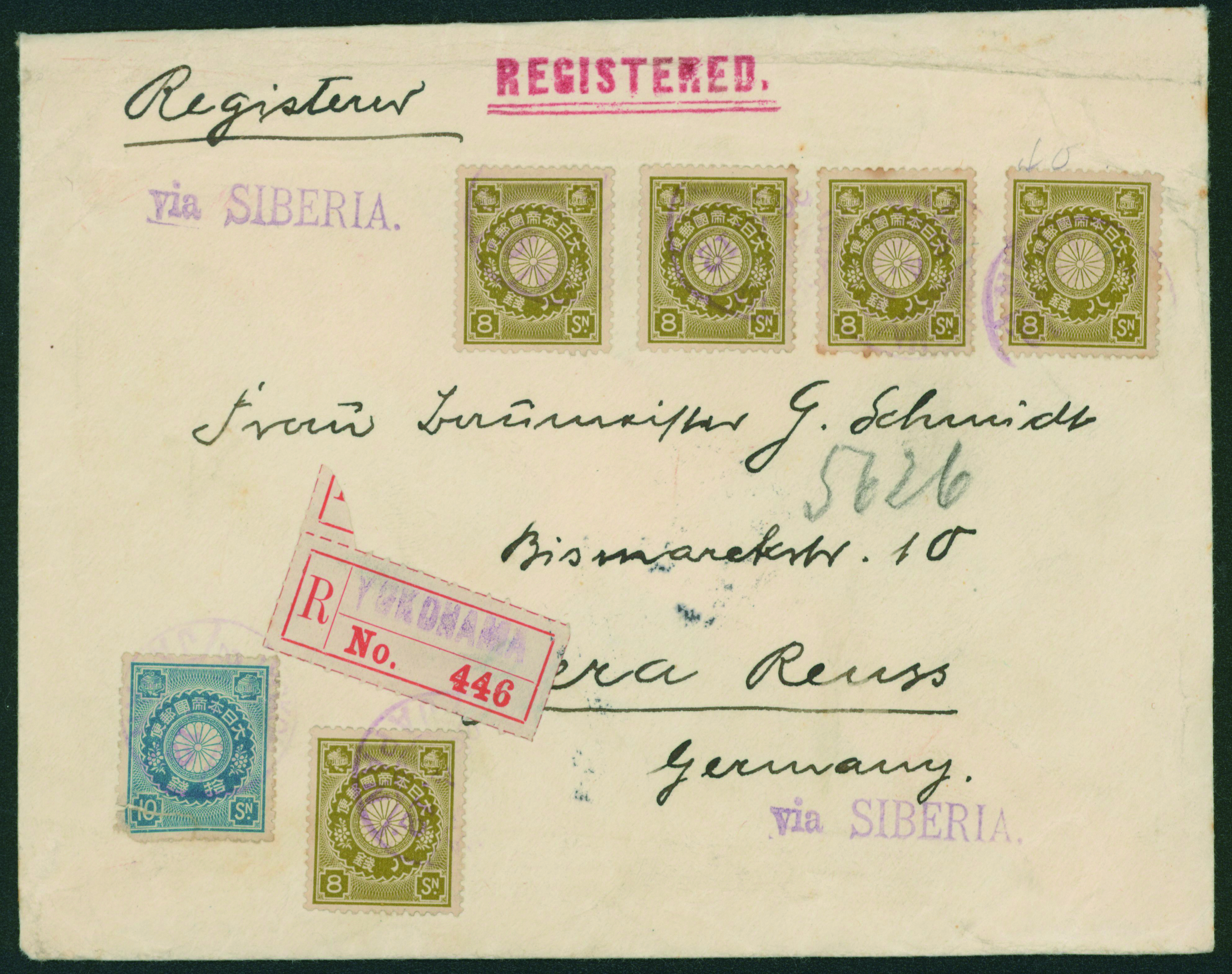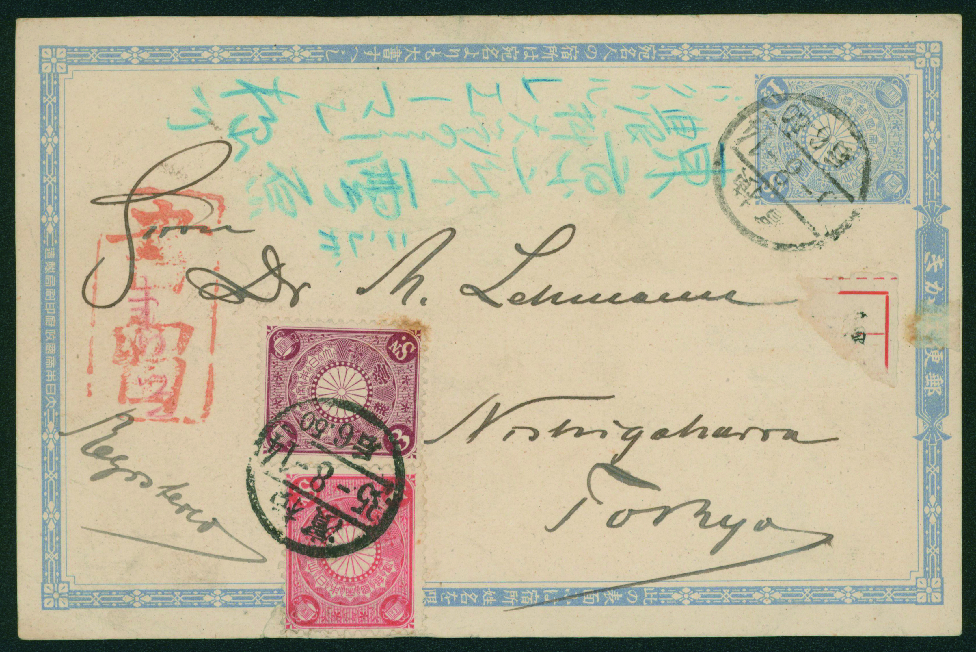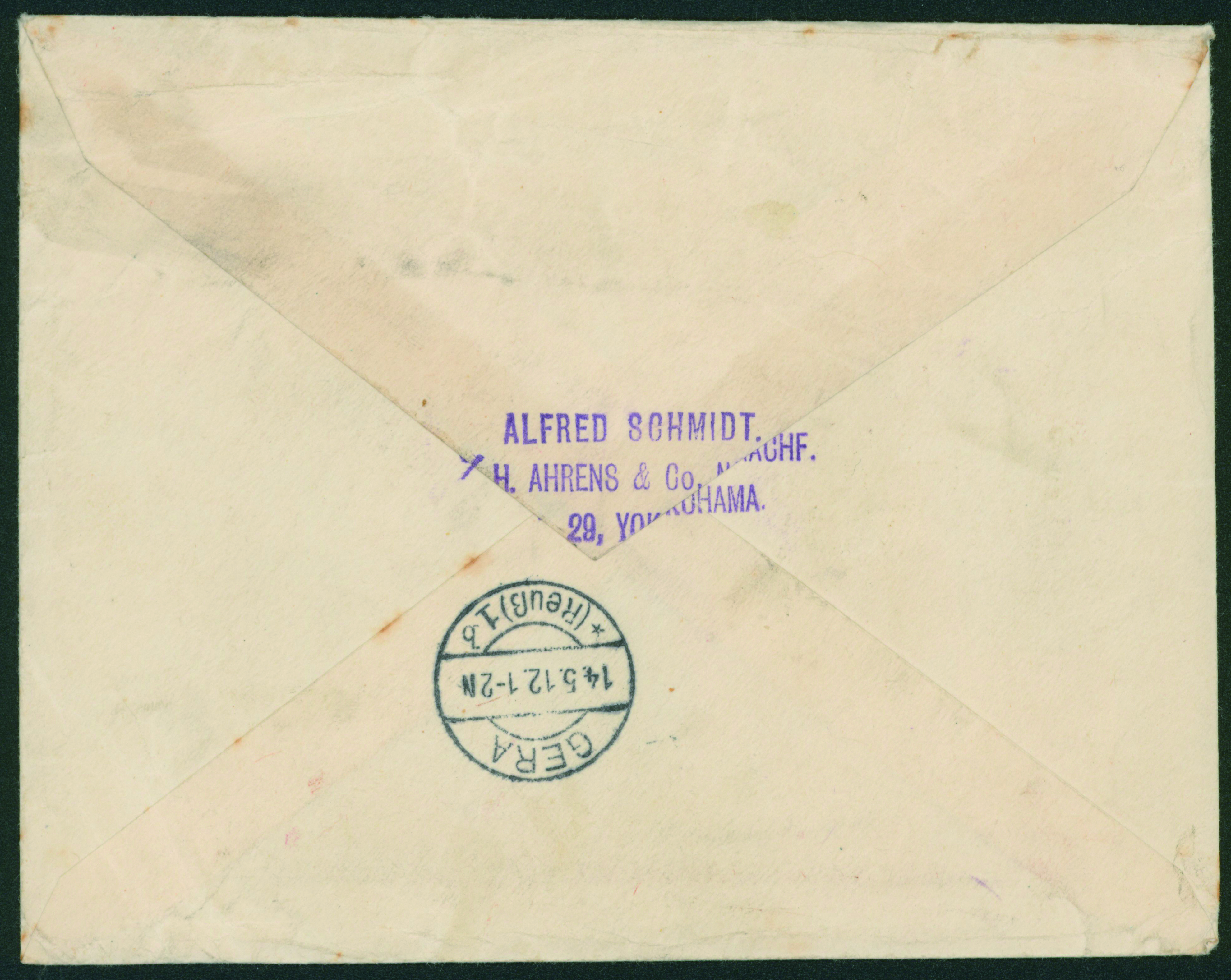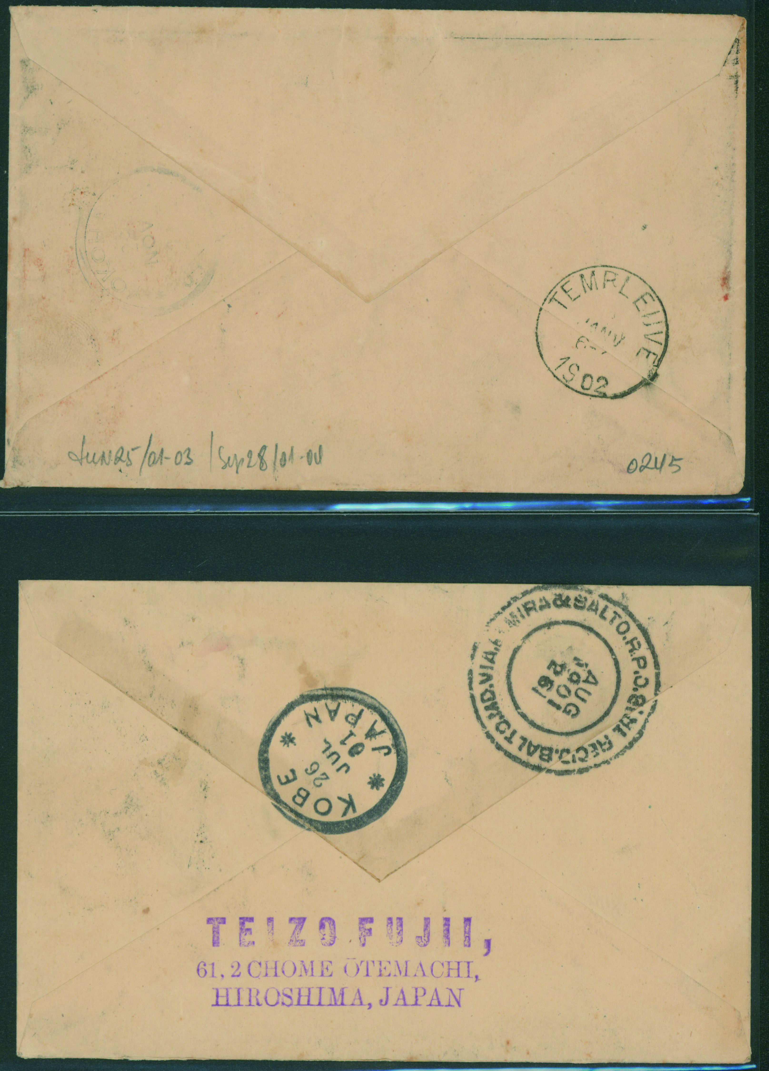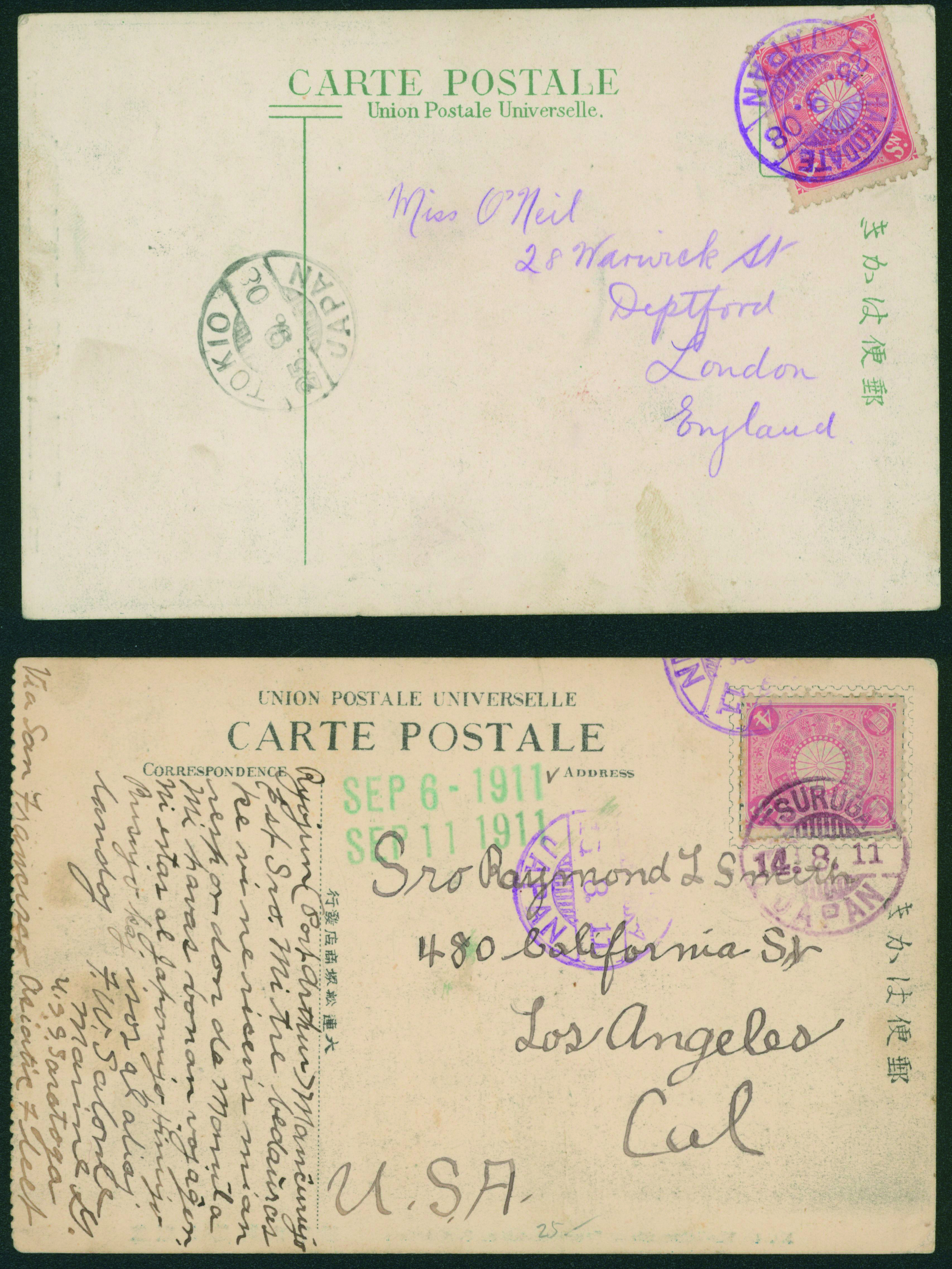 [使用例] 菊2銭 単貼り シミ 外信 カバー3通 印刷物、台北発、荷物タグ