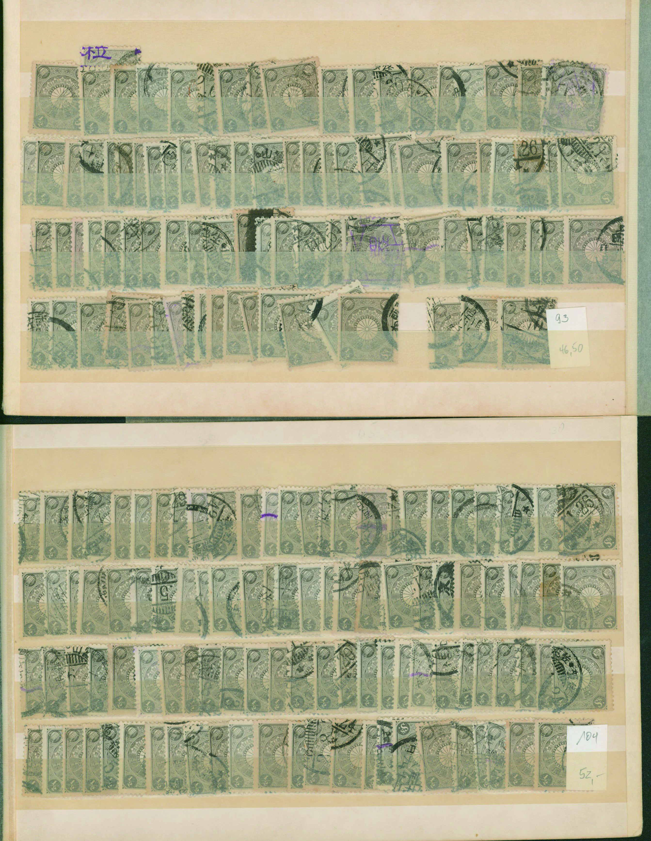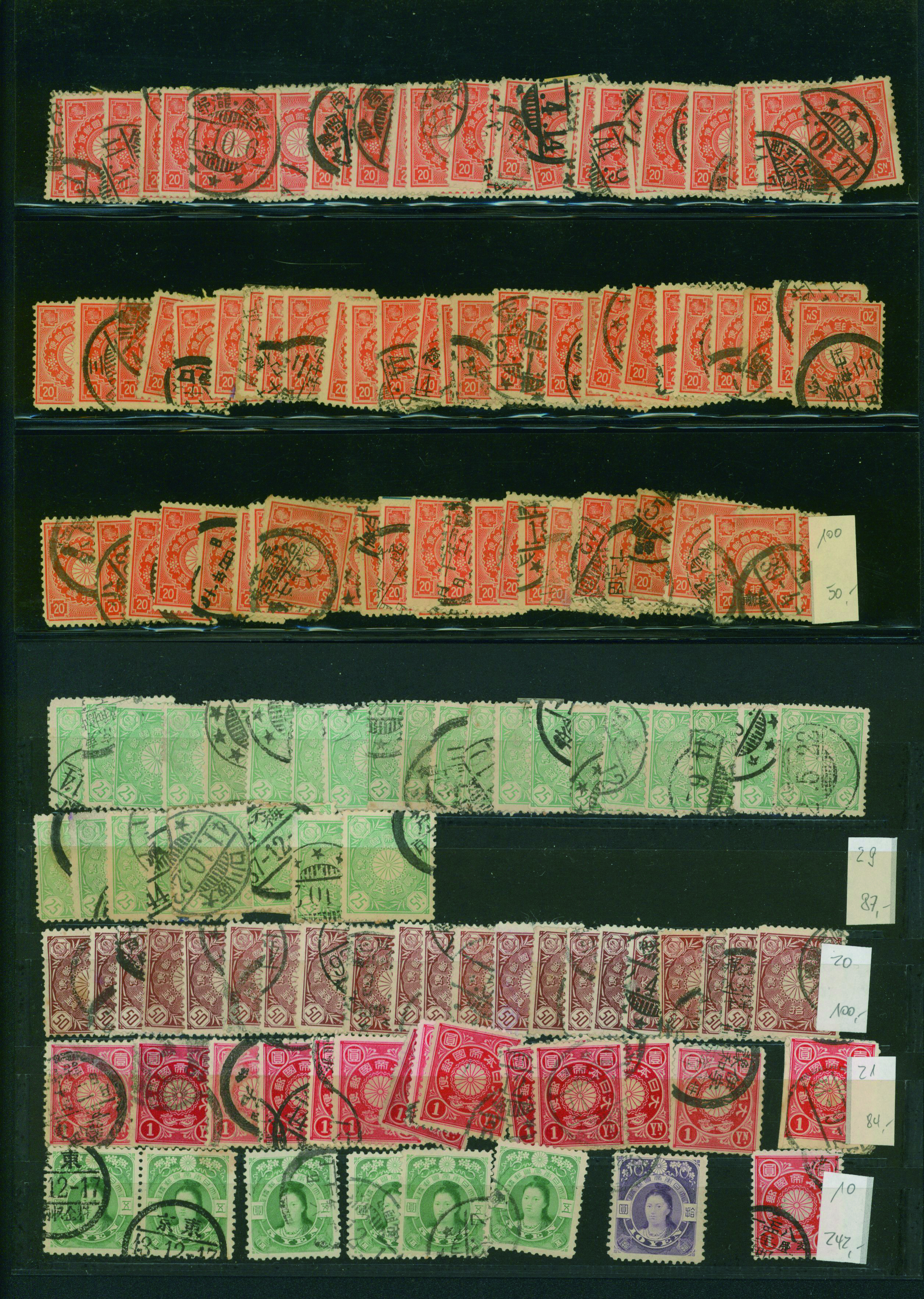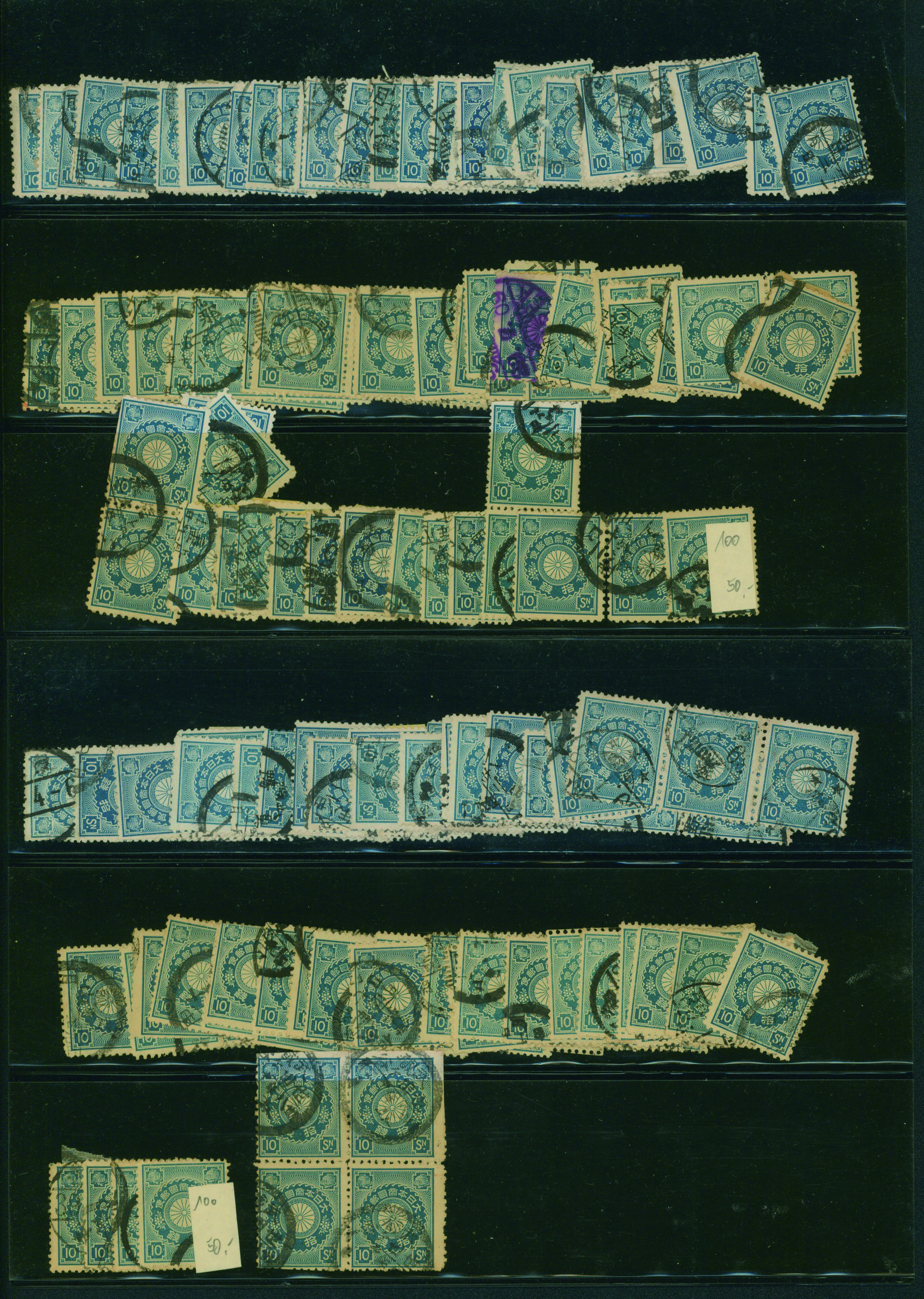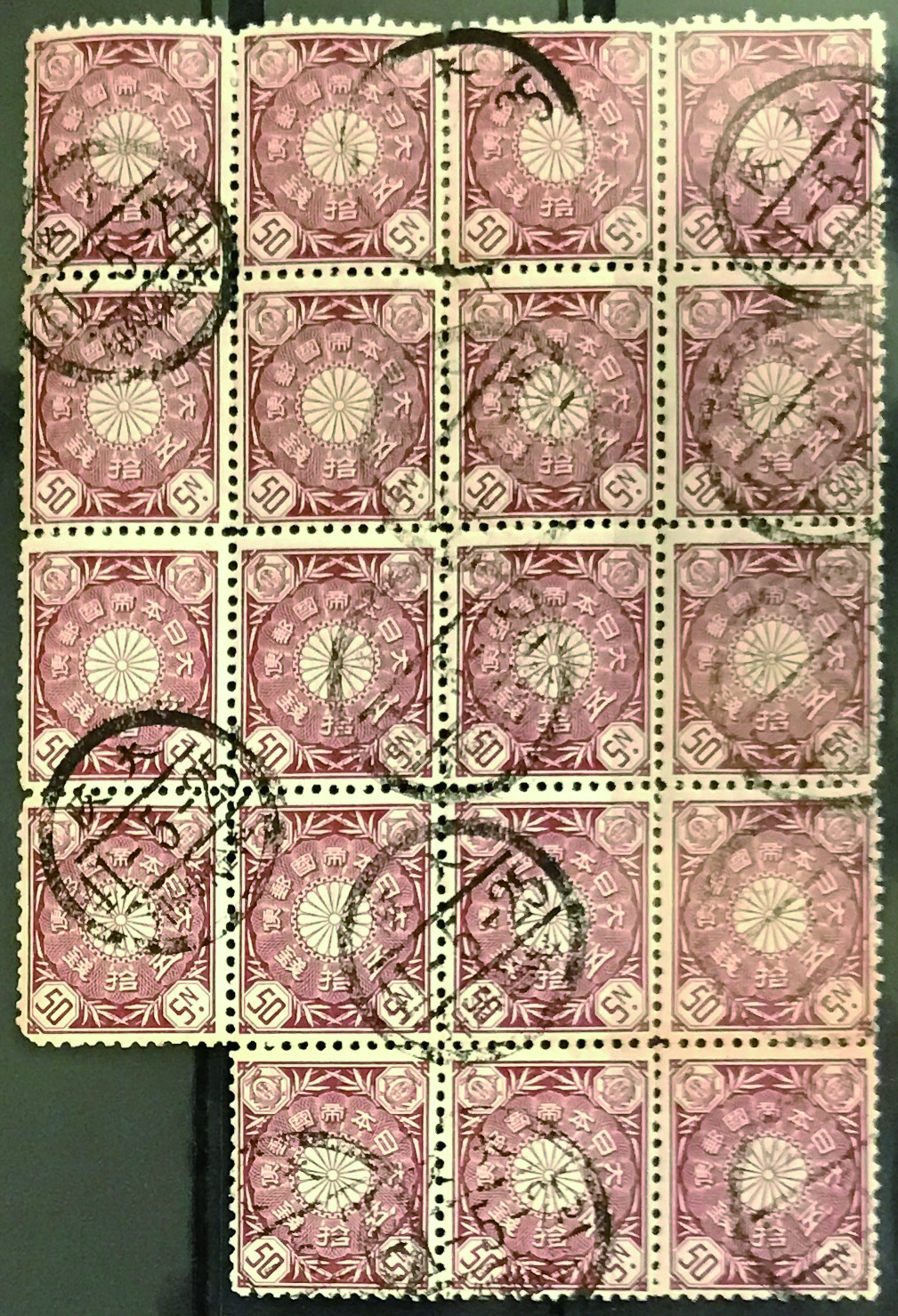 [済] 菊50銭 p.12L 19枚ブロック 済 RC 丸二印 明治41 5 25 大阪 料金収納印