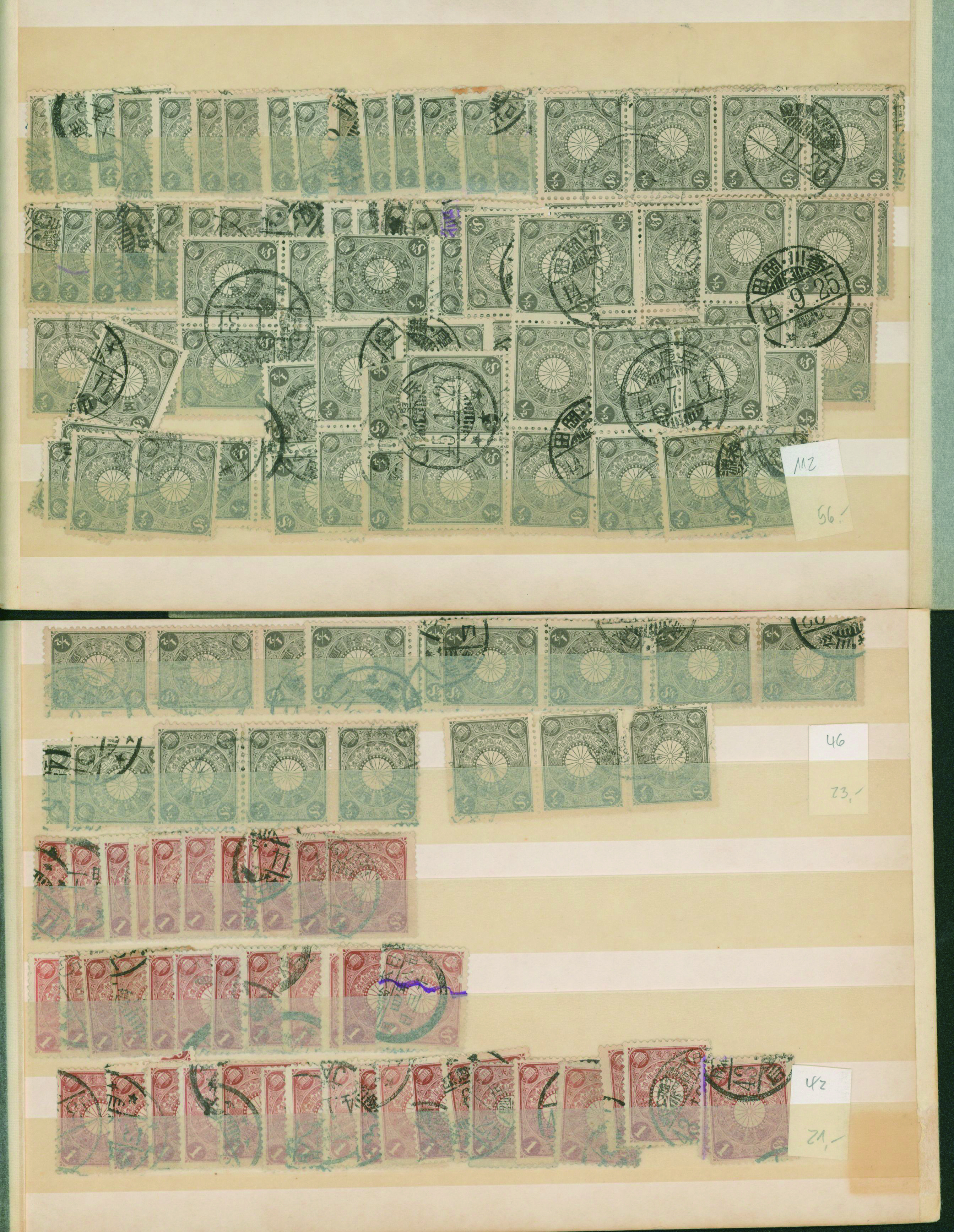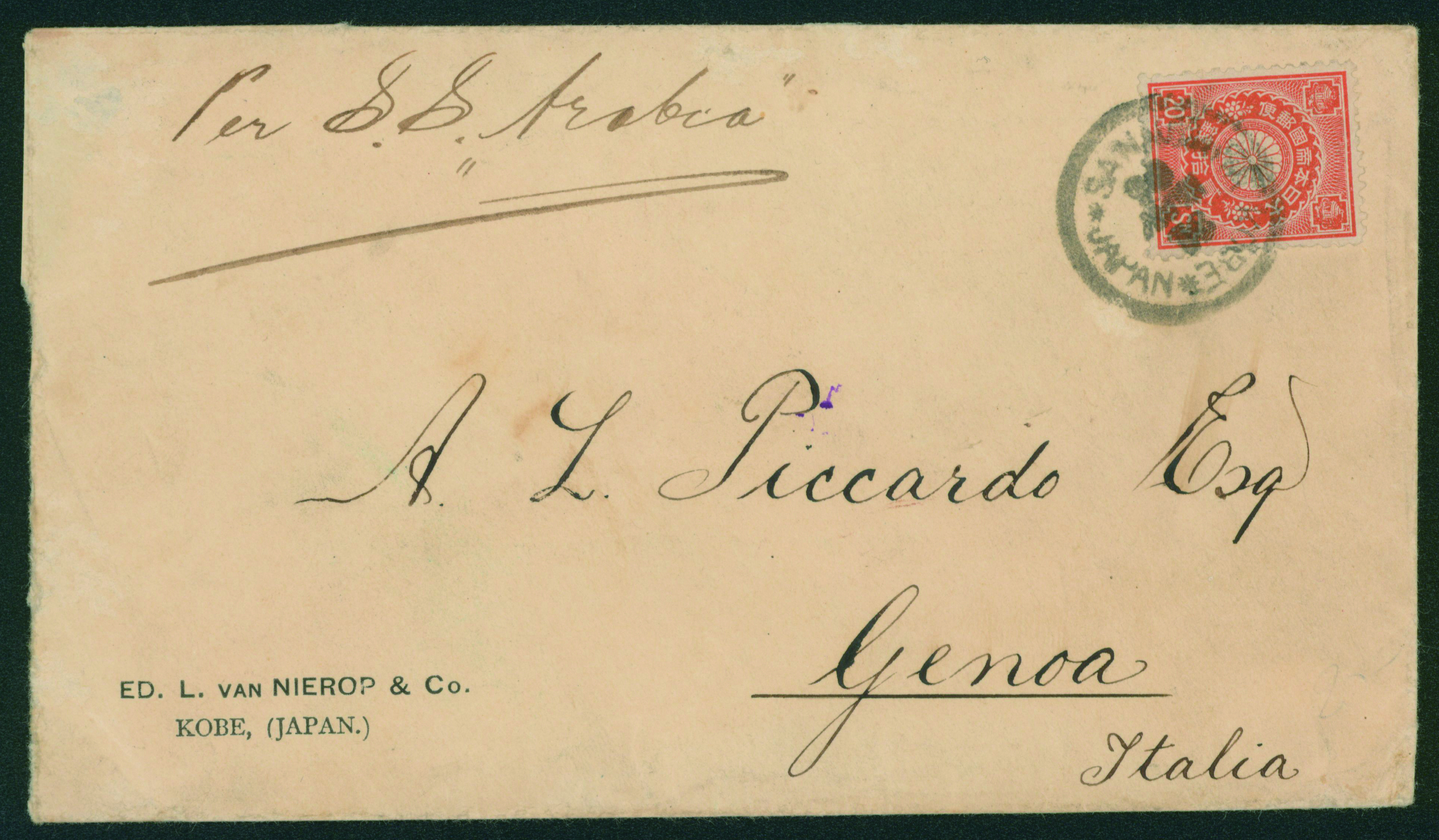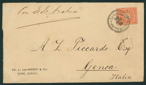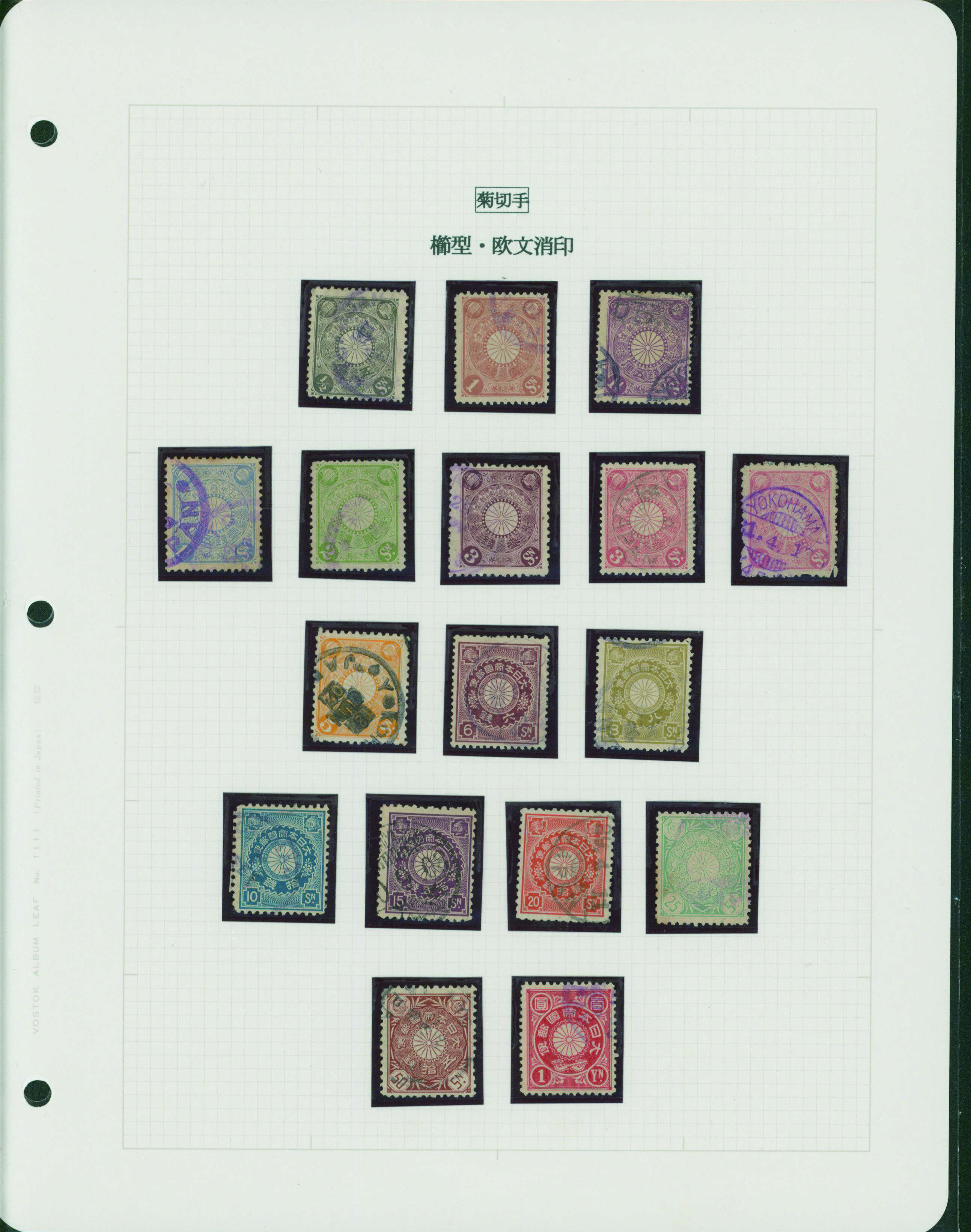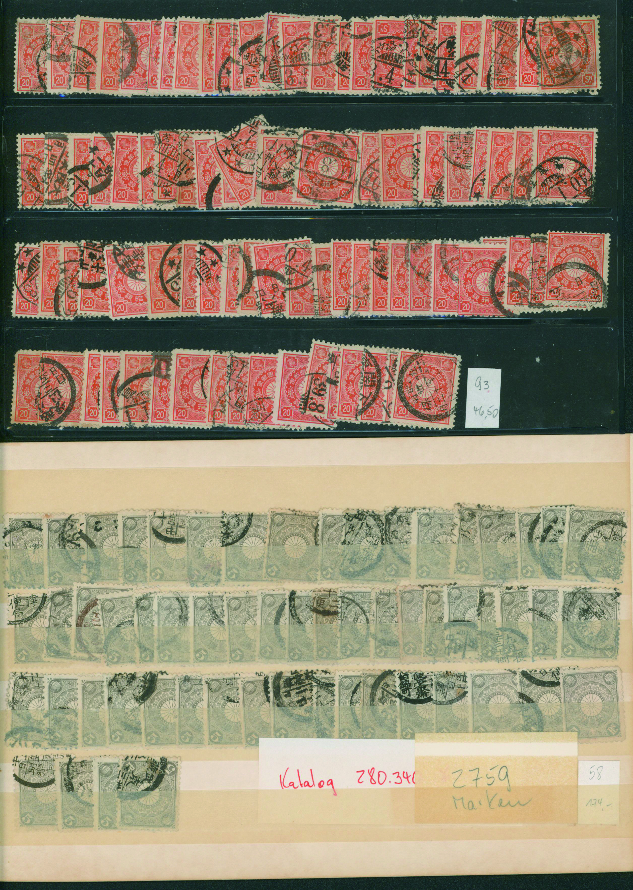 [済] 菊50銭 p.12L 19枚ブロック 済 RC 丸二印 明治41 5 25 大阪 料金収納印