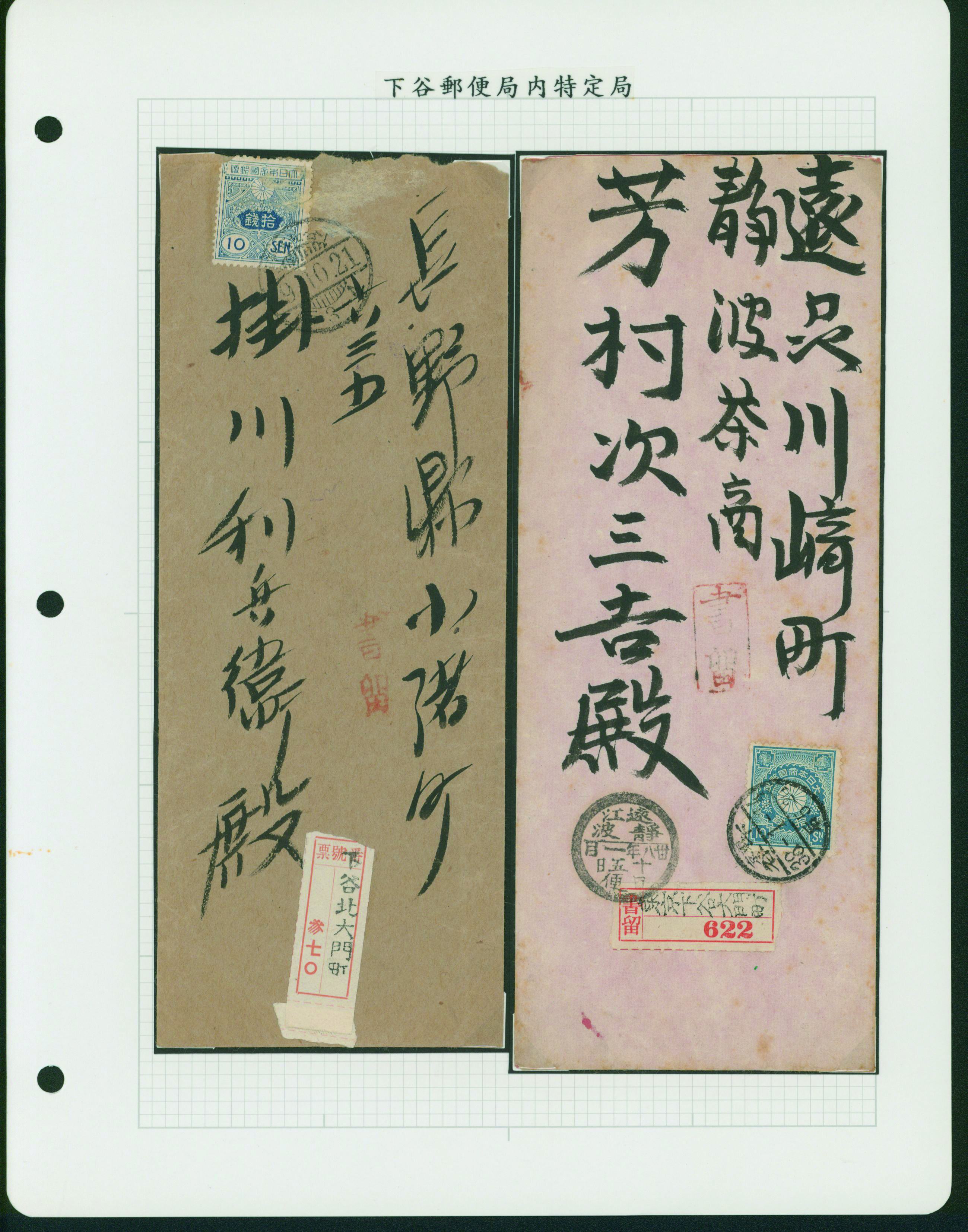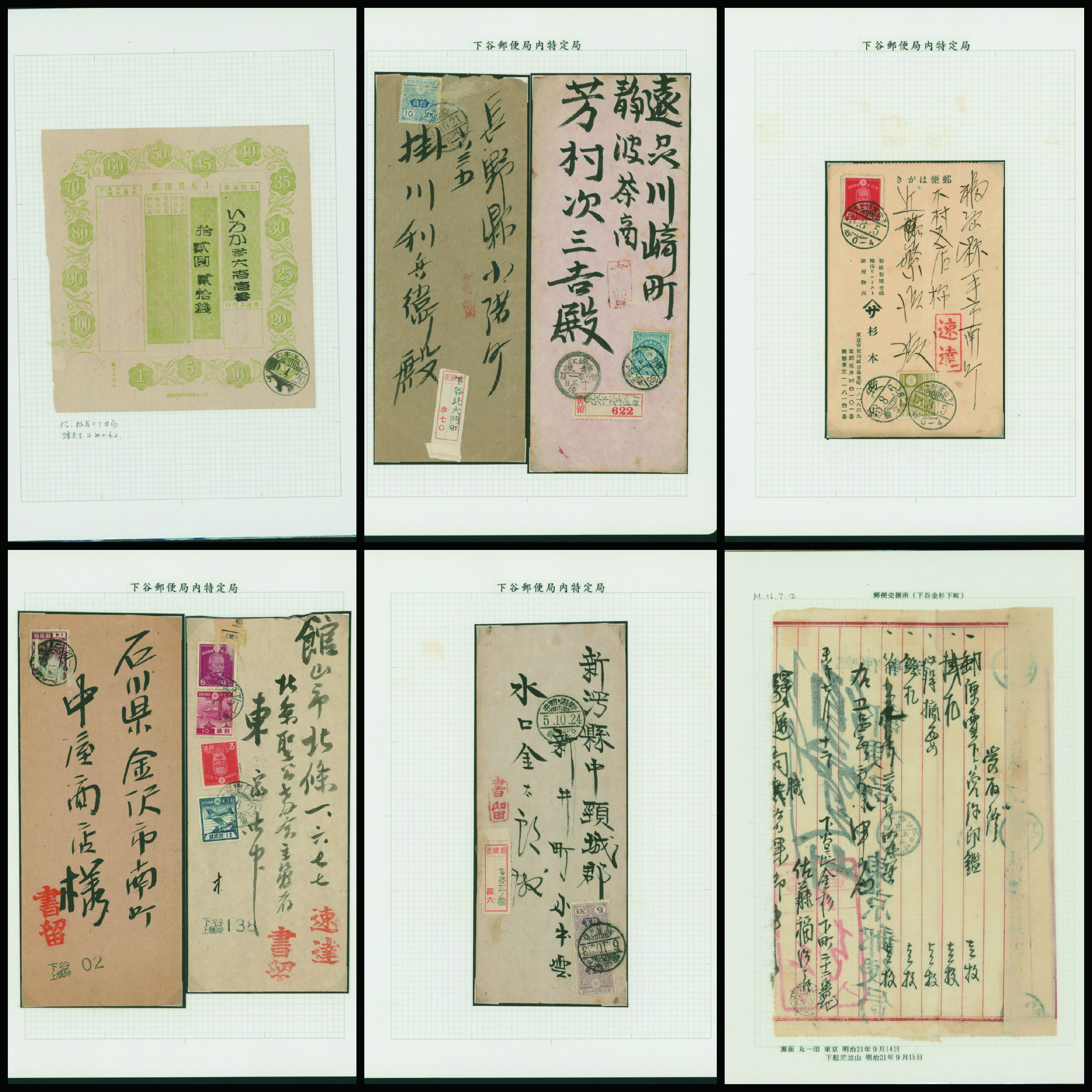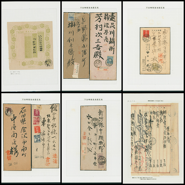 [Accumulation] 台東区郵便史。下谷郵便局 下谷金杉下町、下谷三ノ輪などの管内特定局を含む 19世紀後半〜 28リーフ 明治時代からのカバー ステショナリーほか各種使用例や郵便局関連品・資料などが集積されている シミ等の難あるものあり