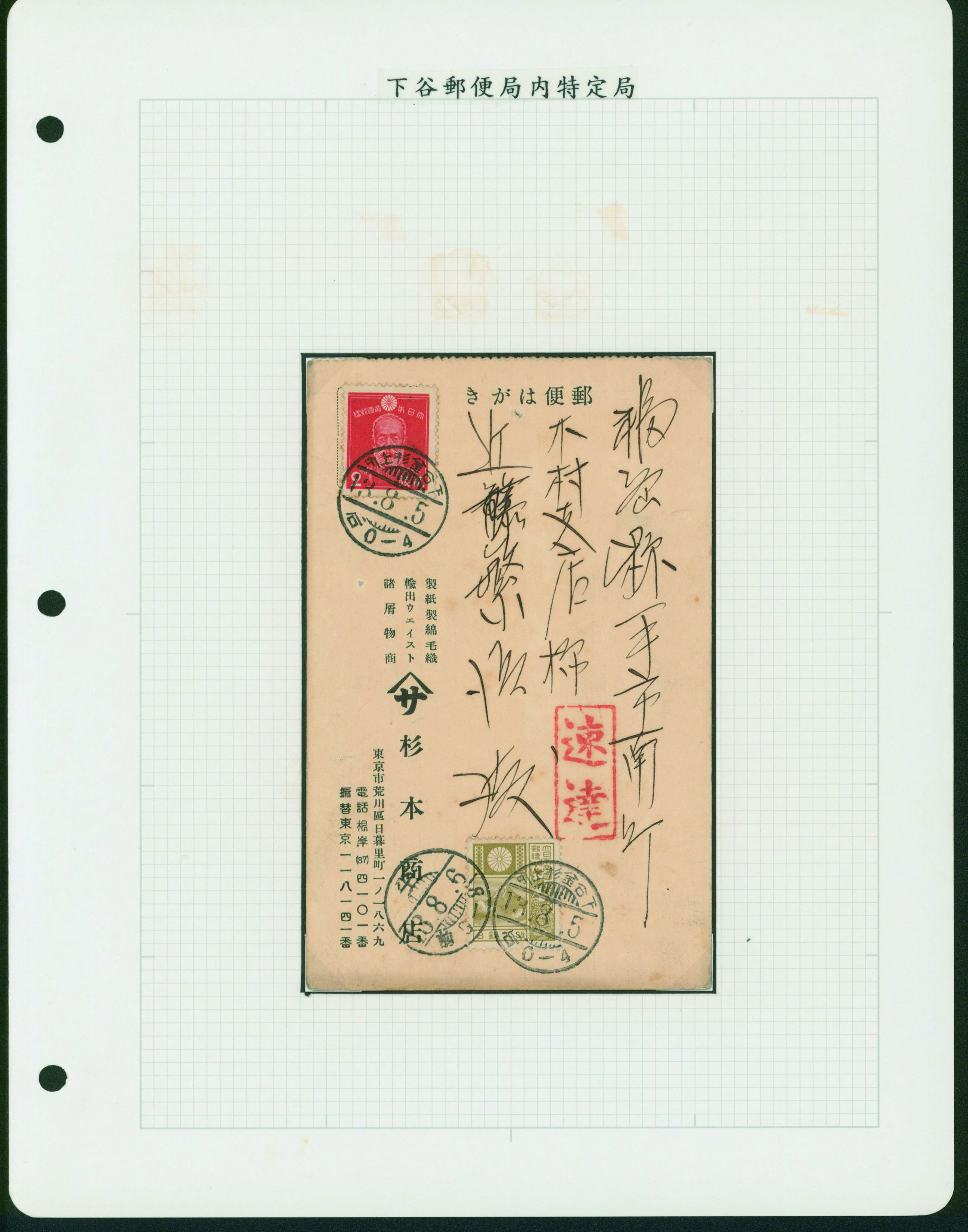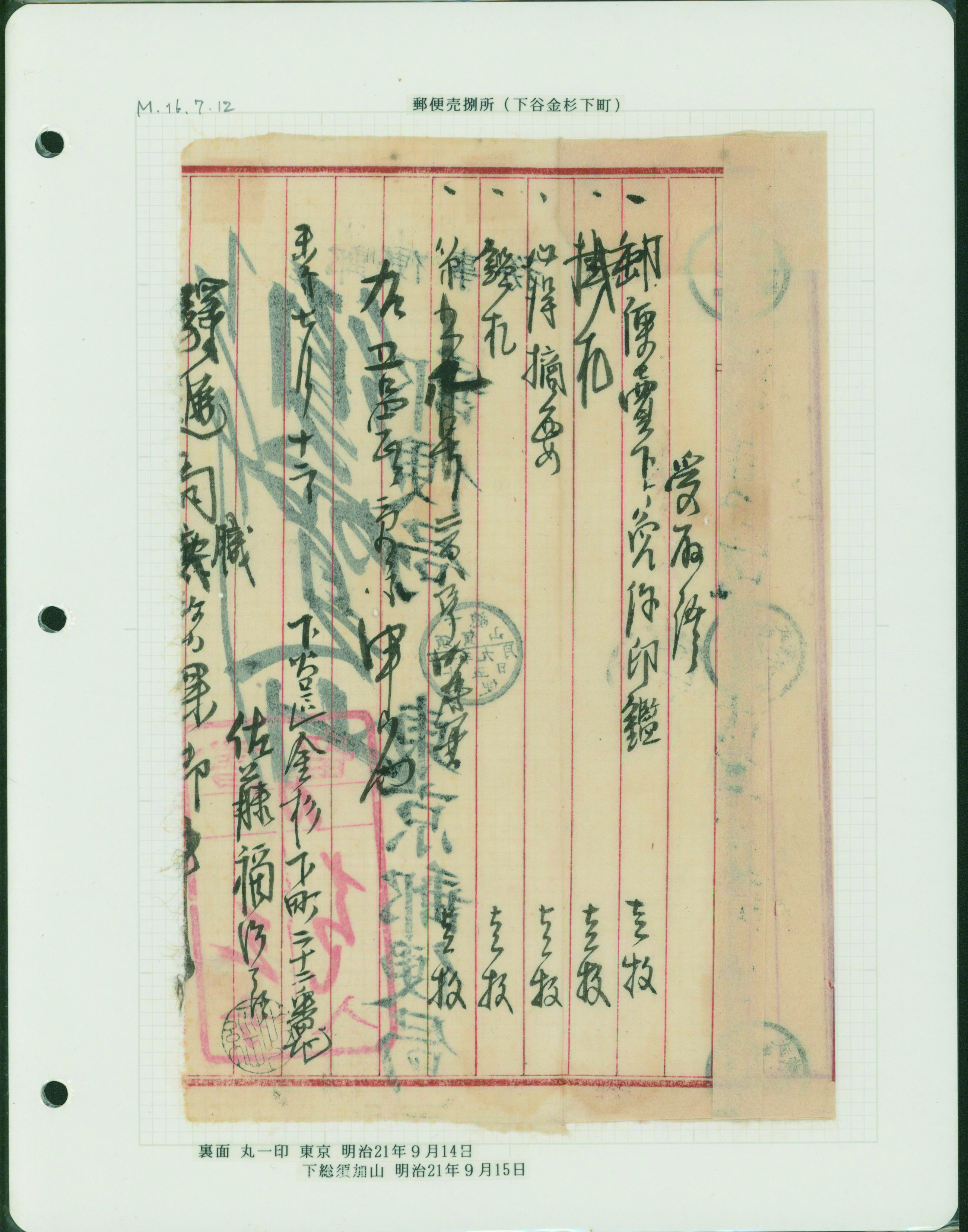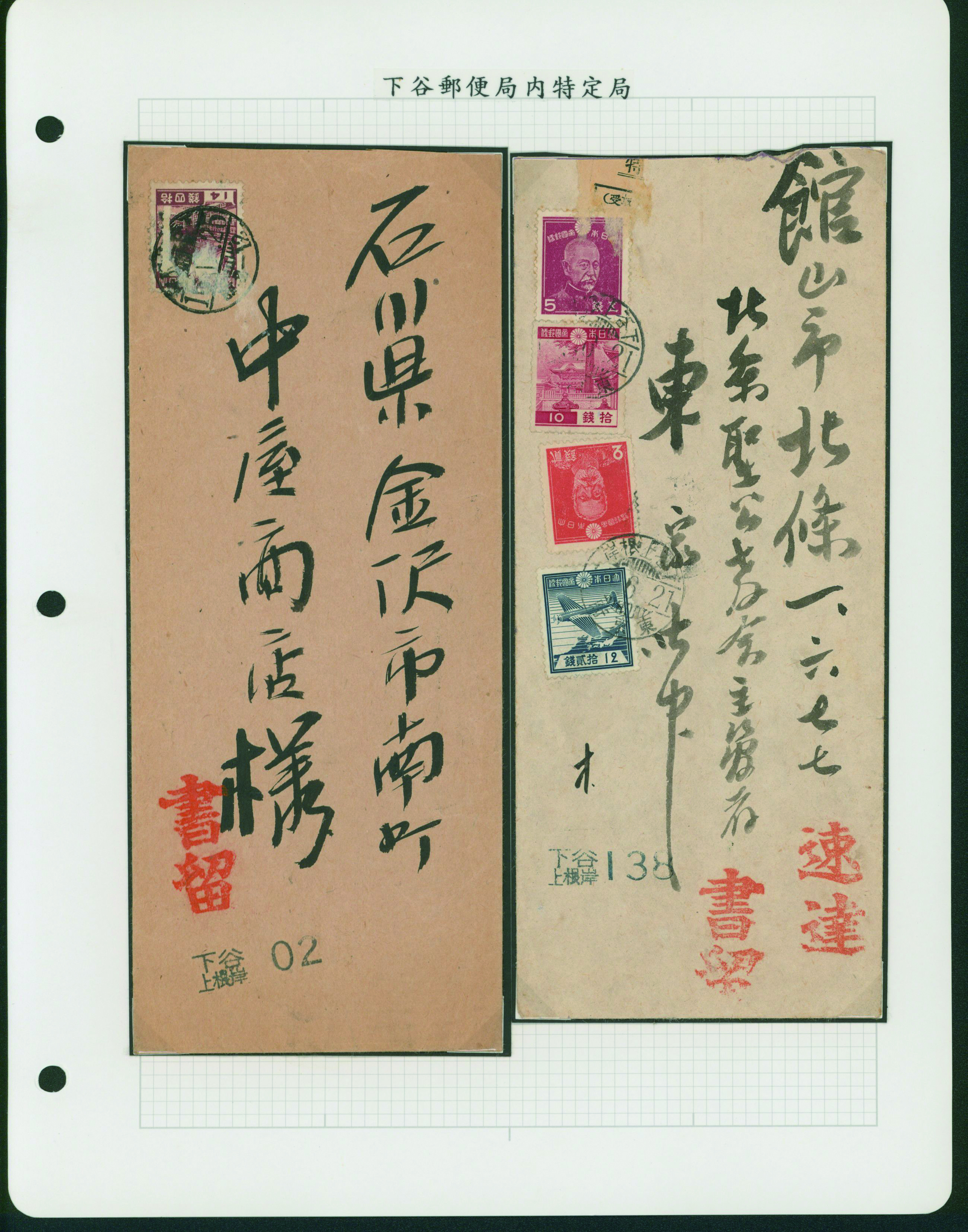 [Accumulation] 台東区郵便史。下谷郵便局 下谷金杉下町、下谷三ノ輪などの管内特定局を含む 19世紀後半〜 28リーフ 明治時代からのカバー ステショナリーほか各種使用例や郵便局関連品・資料などが集積されている シミ等の難あるものあり