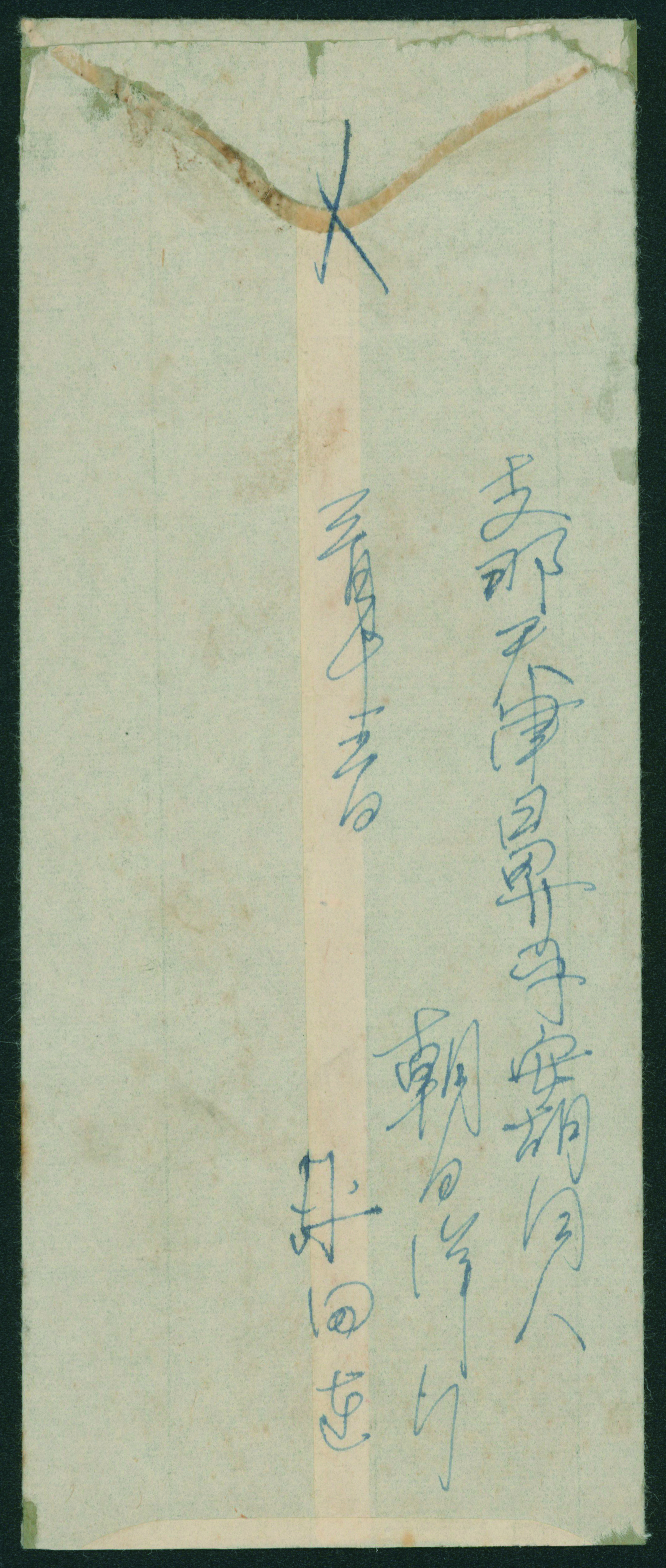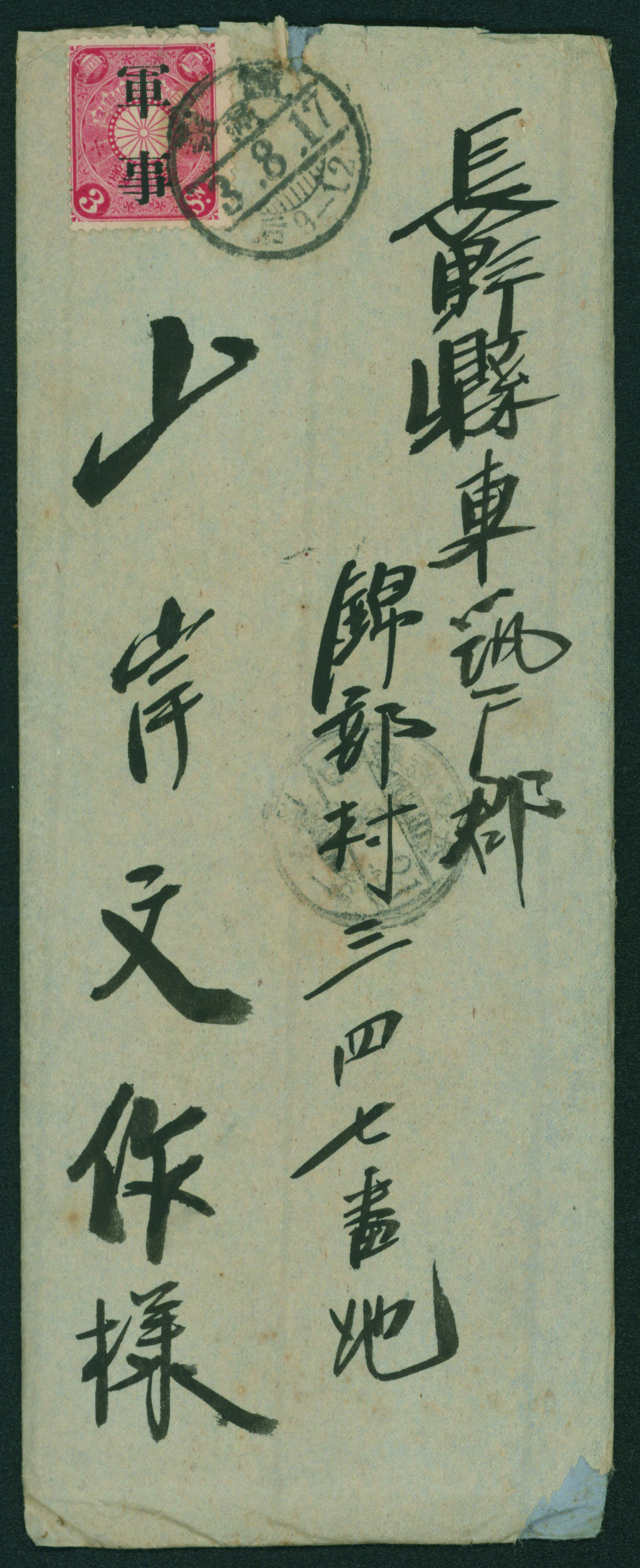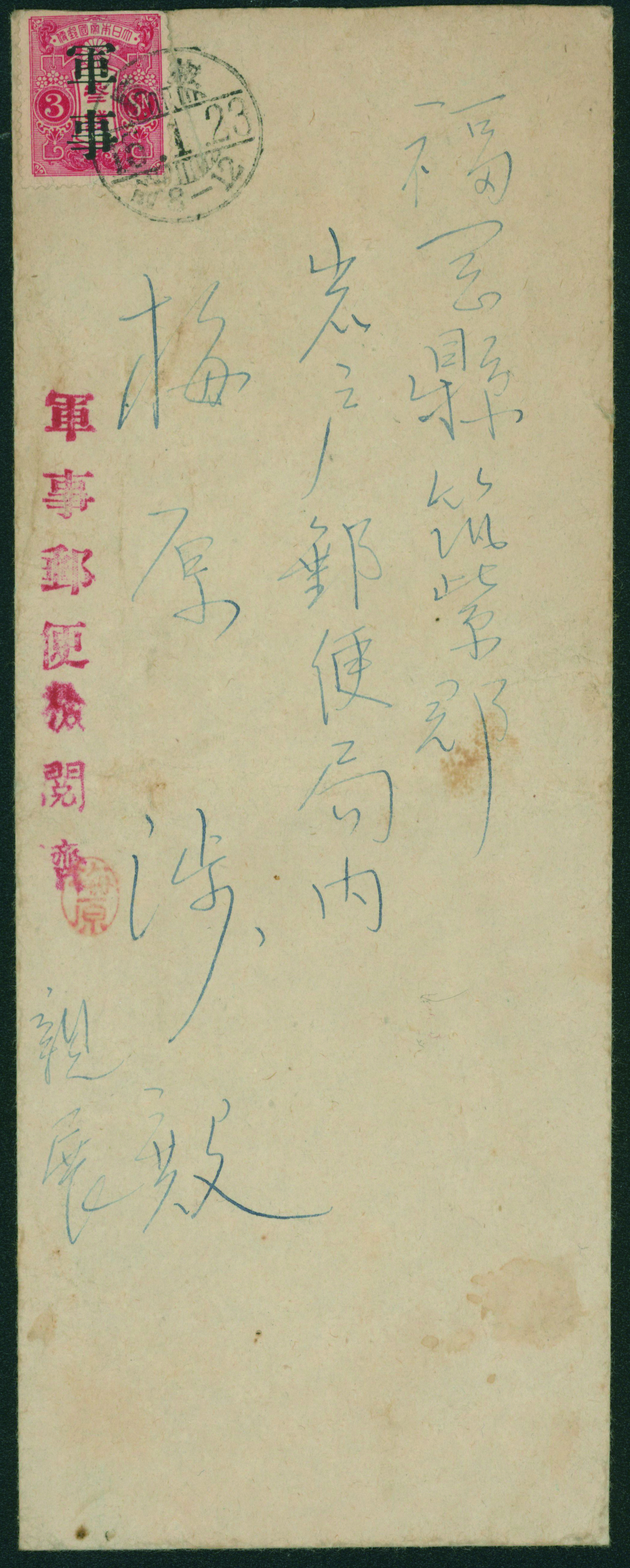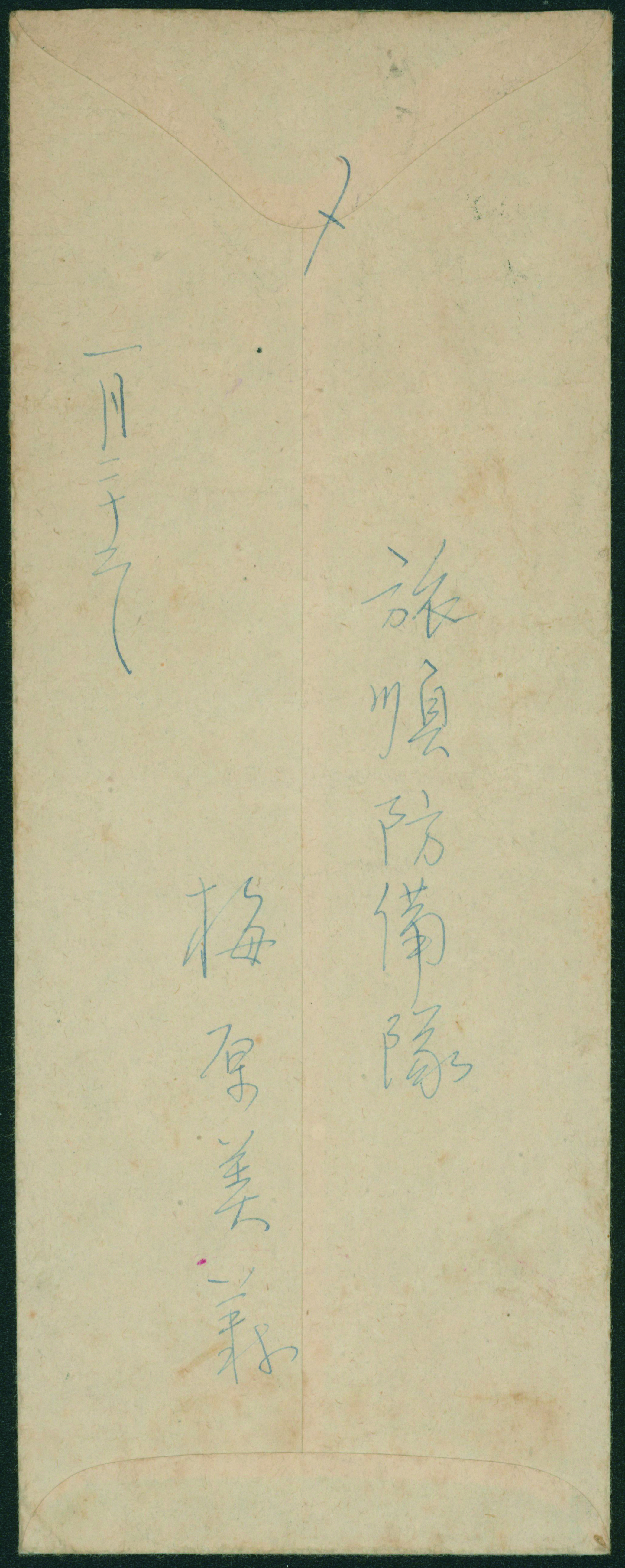[使用例] 軍事新毛輪転版 単貼り シザーカット 櫛型印 昭和15 1 23 旅順 軍事郵便 書状 カバーまばらなシミ