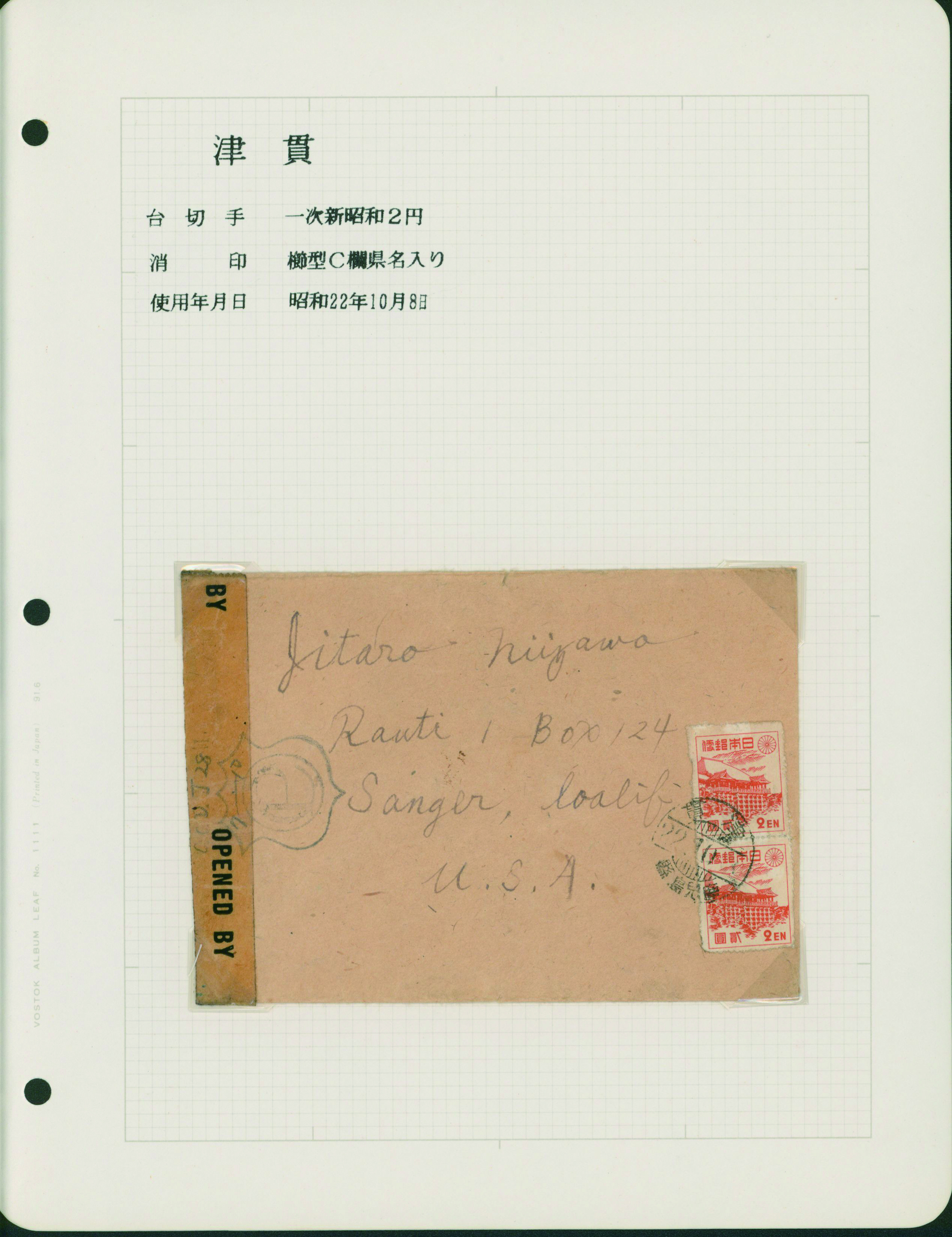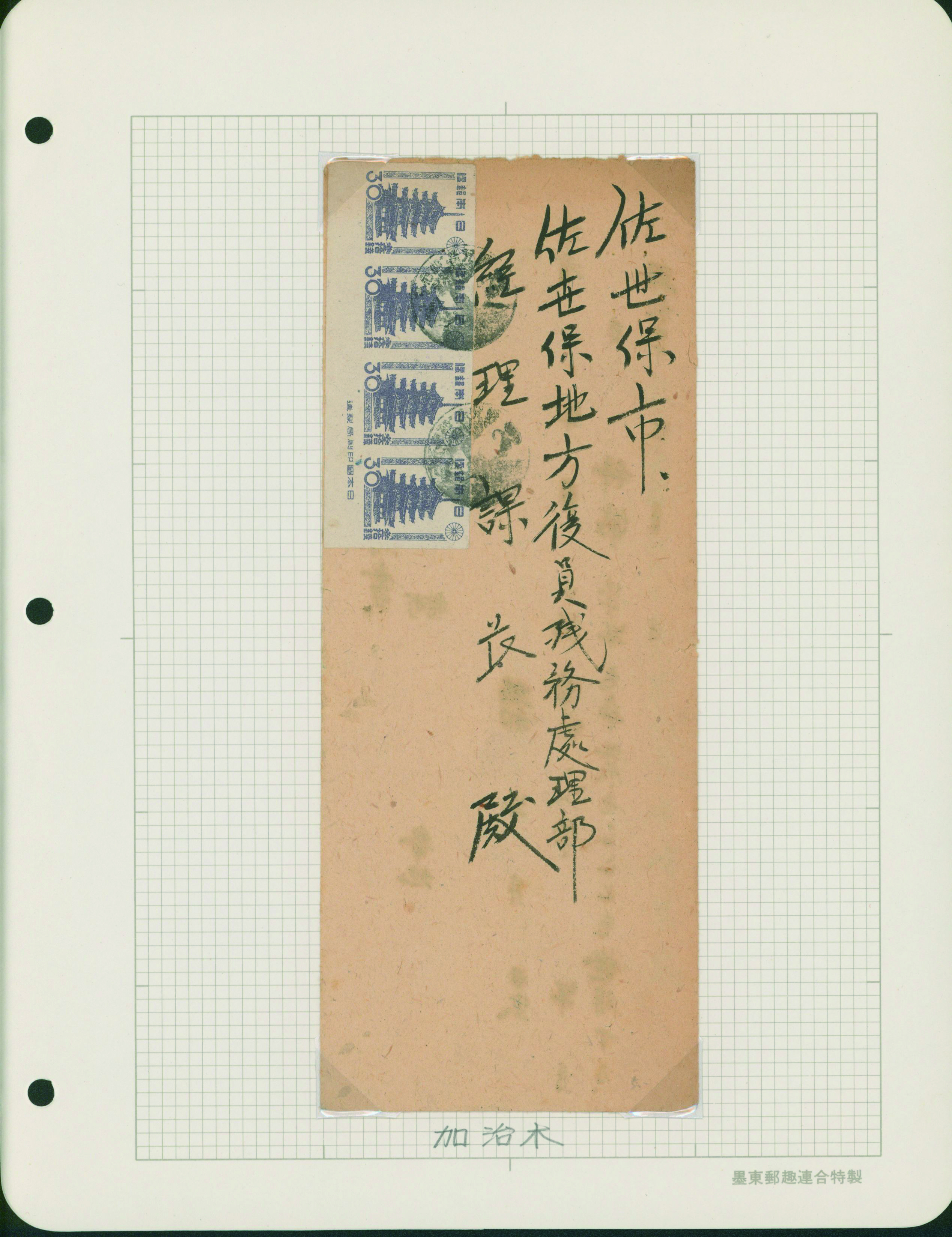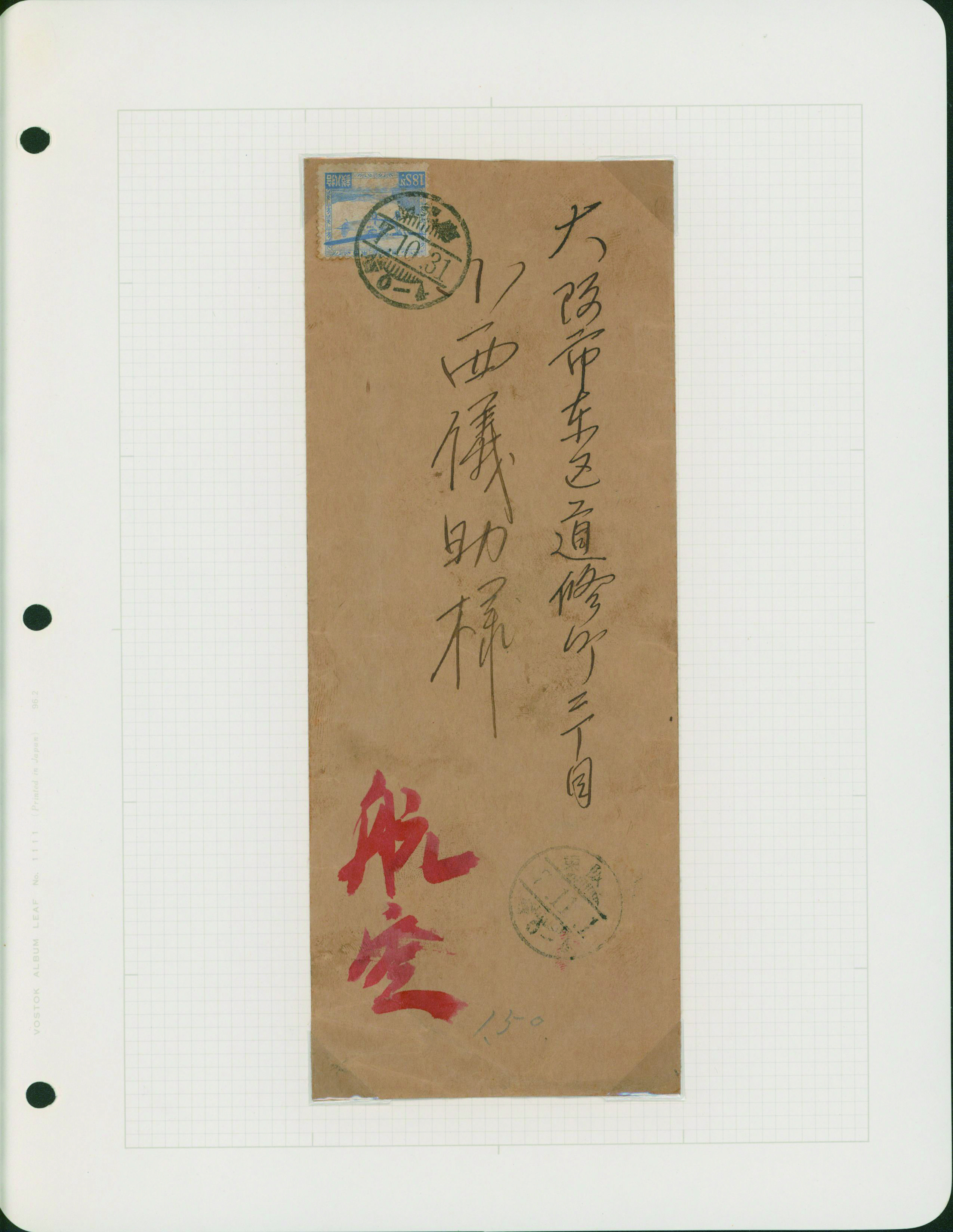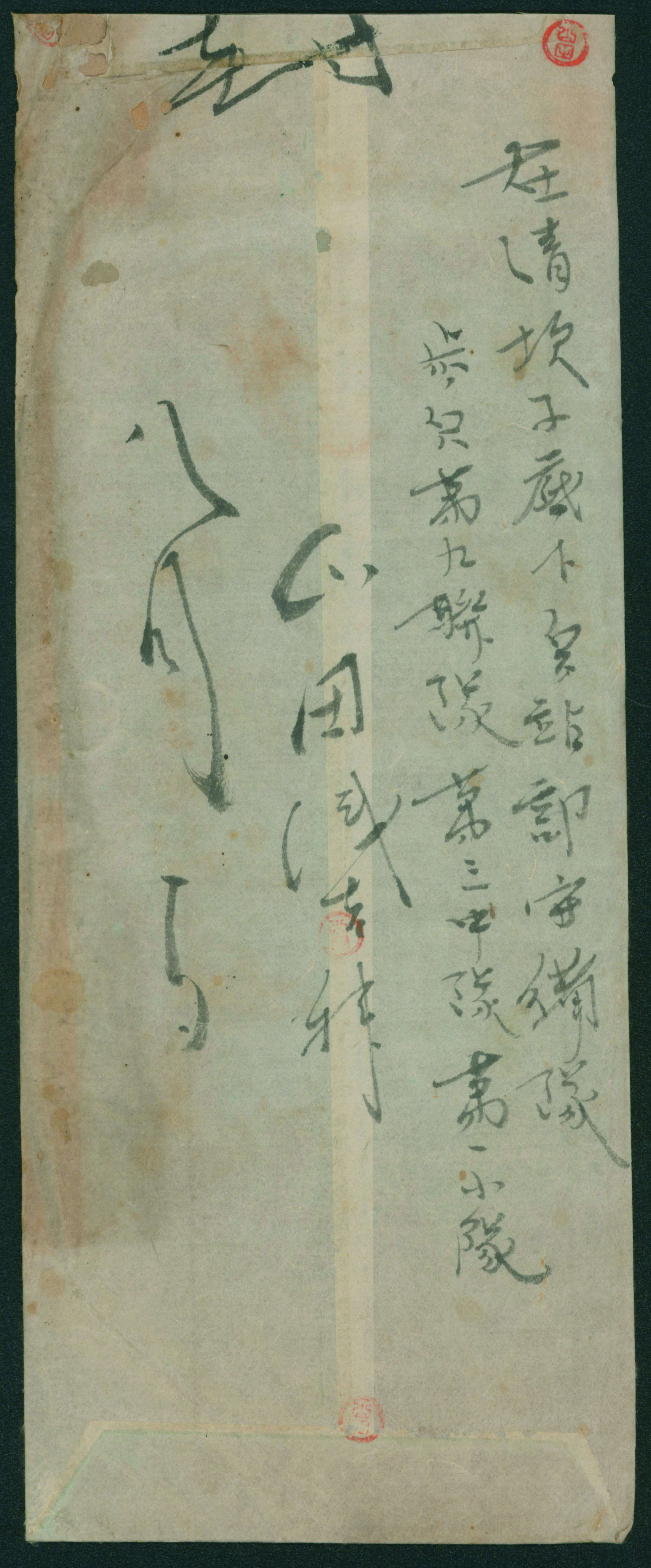 [使用例] 軍事新毛輪転版 単貼り シザーカット 櫛型印 昭和15 1 23 旅順 軍事郵便 書状 カバーまばらなシミ