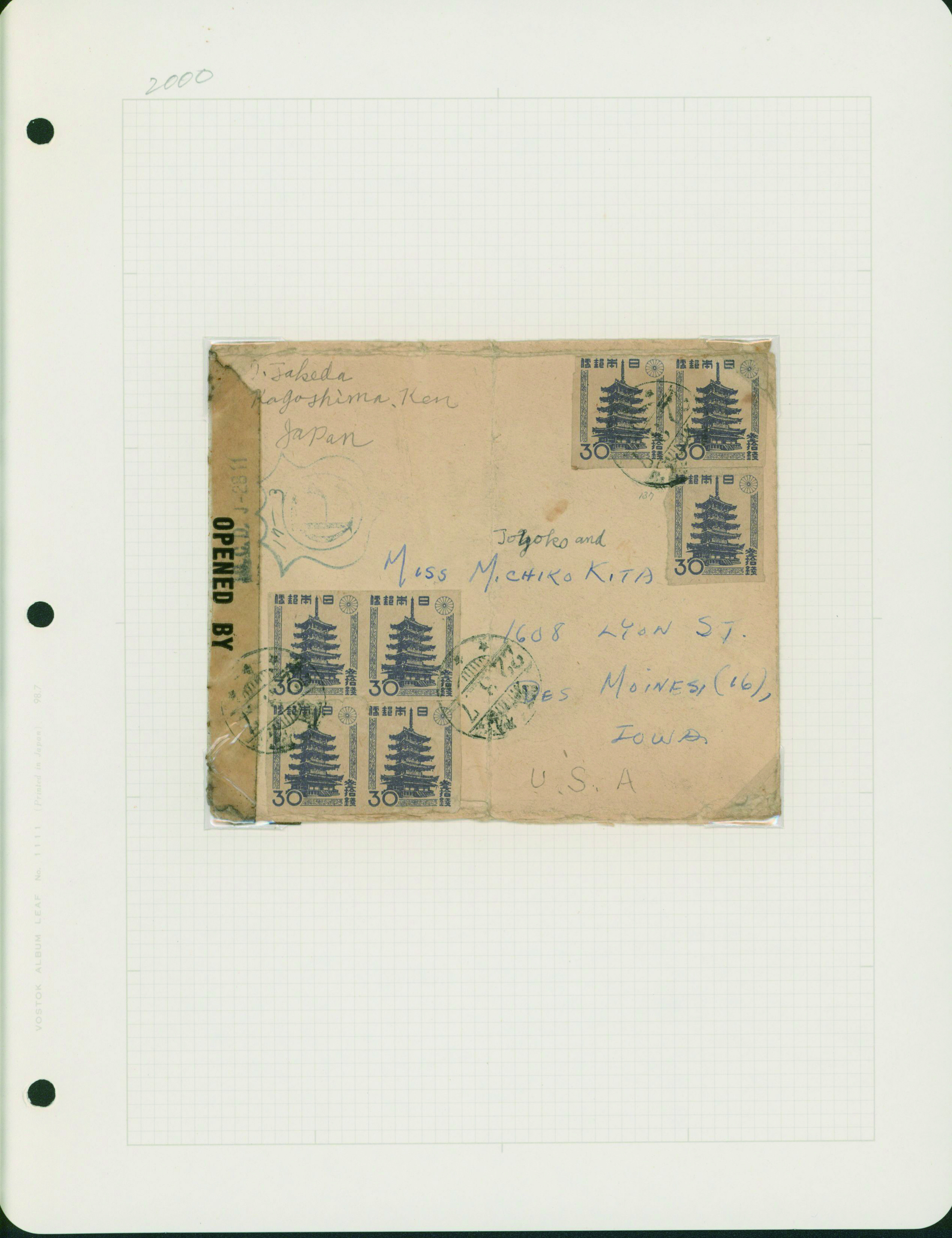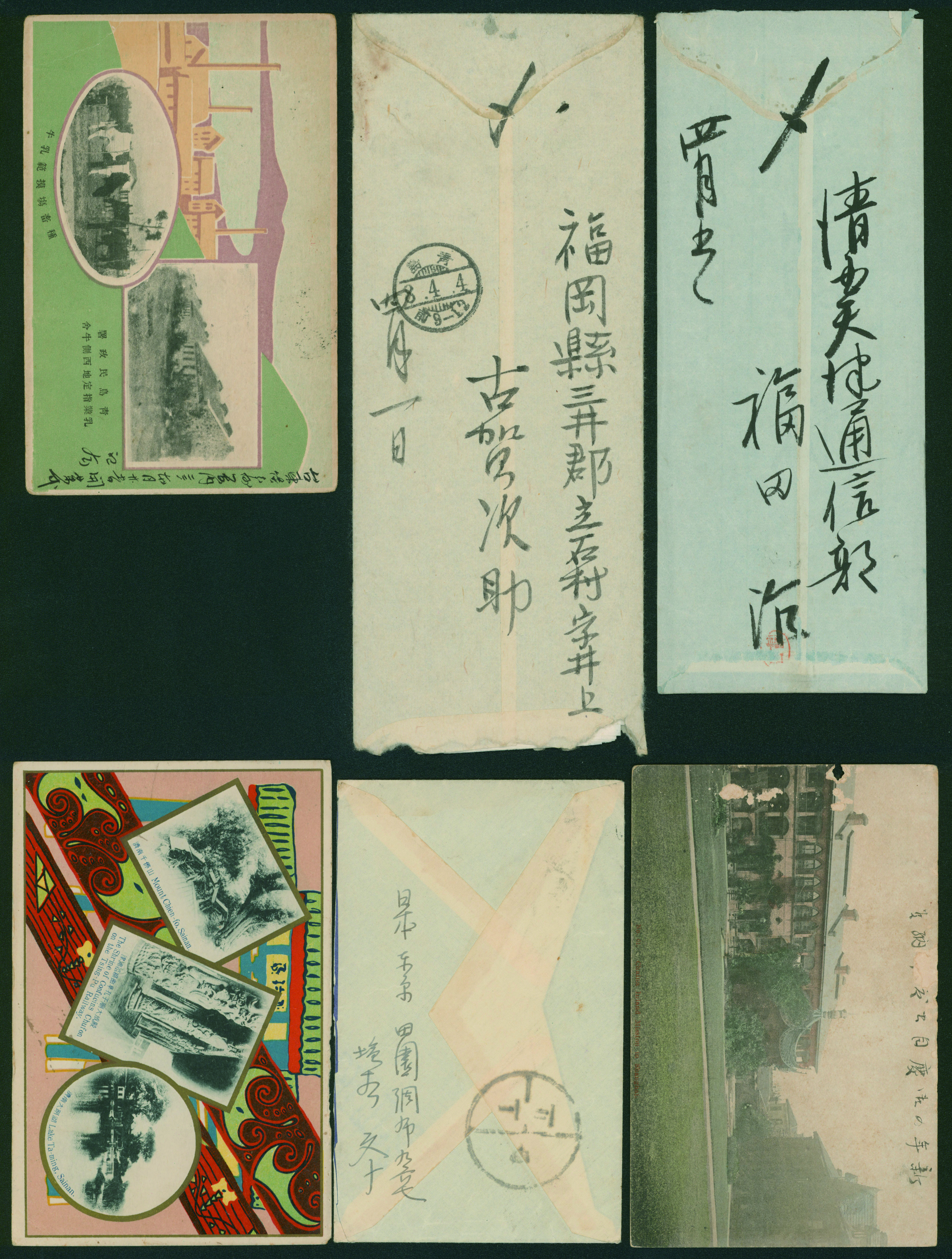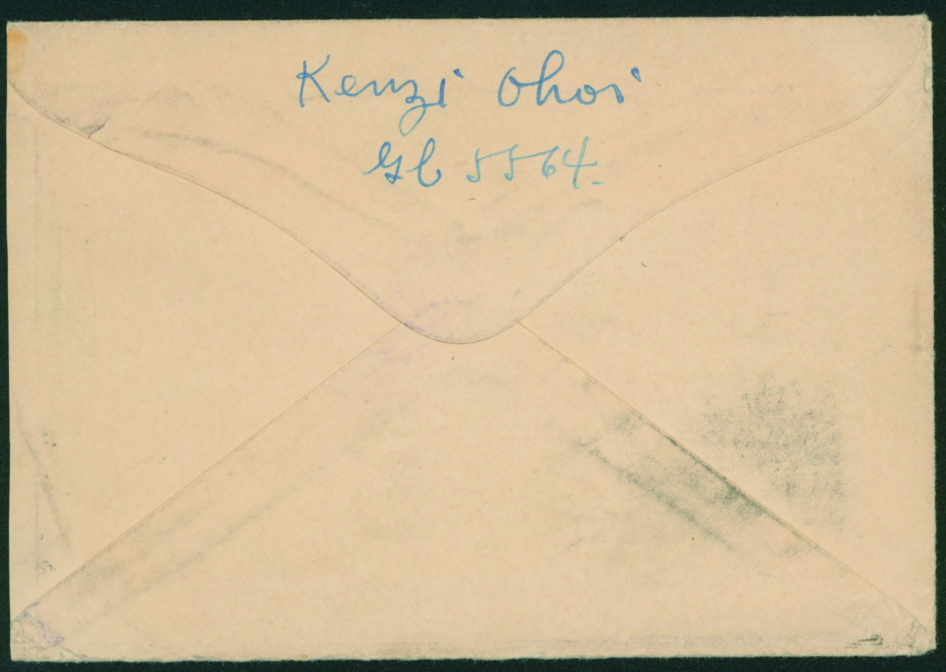 [使用例] 鹿児島使用例 カバー2通 葉書1枚 芦ノ湖18銭, 航空兵15銭, 戦傷病者葉書2銭 櫛型印 カバー薄汚れ