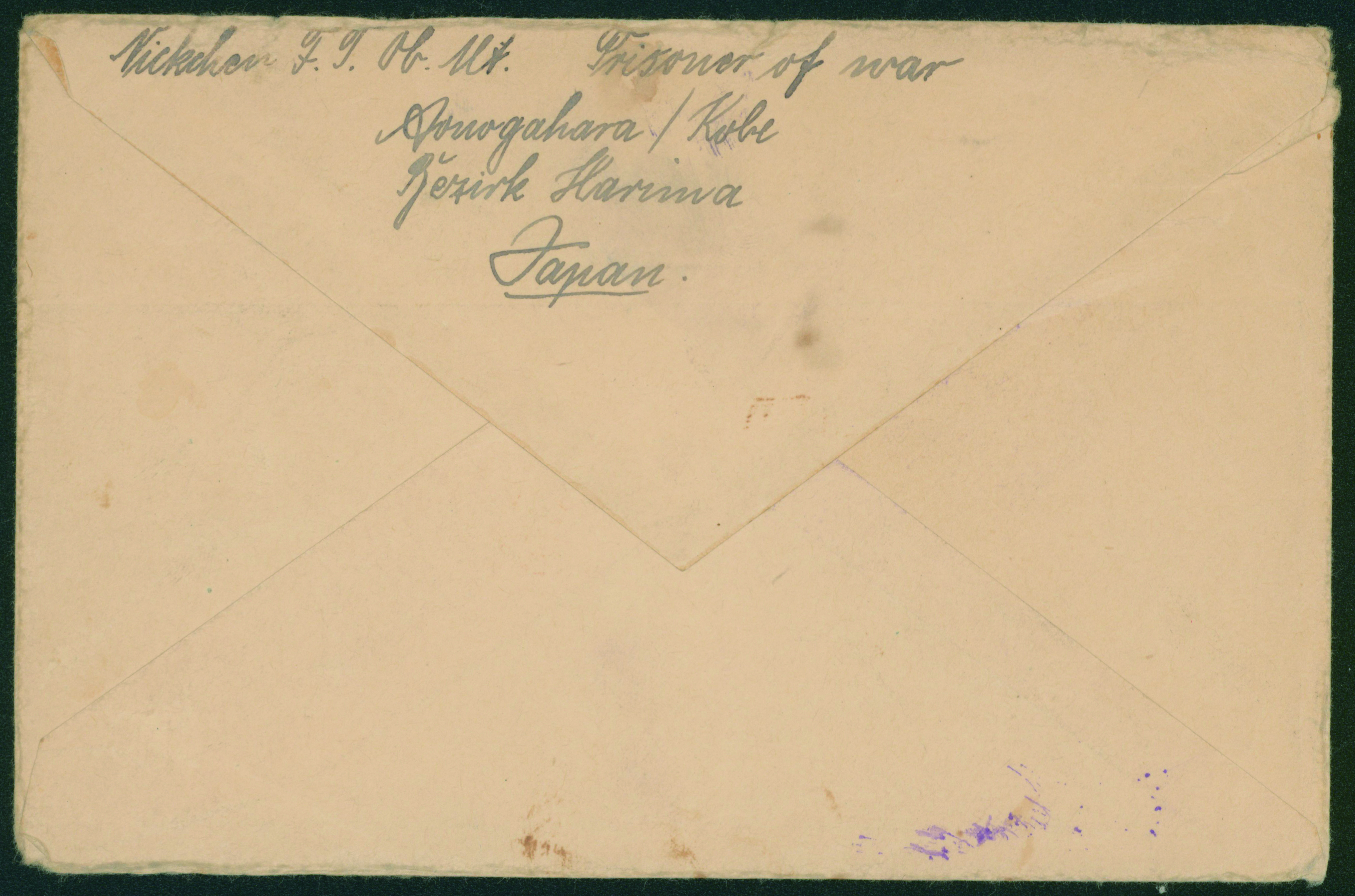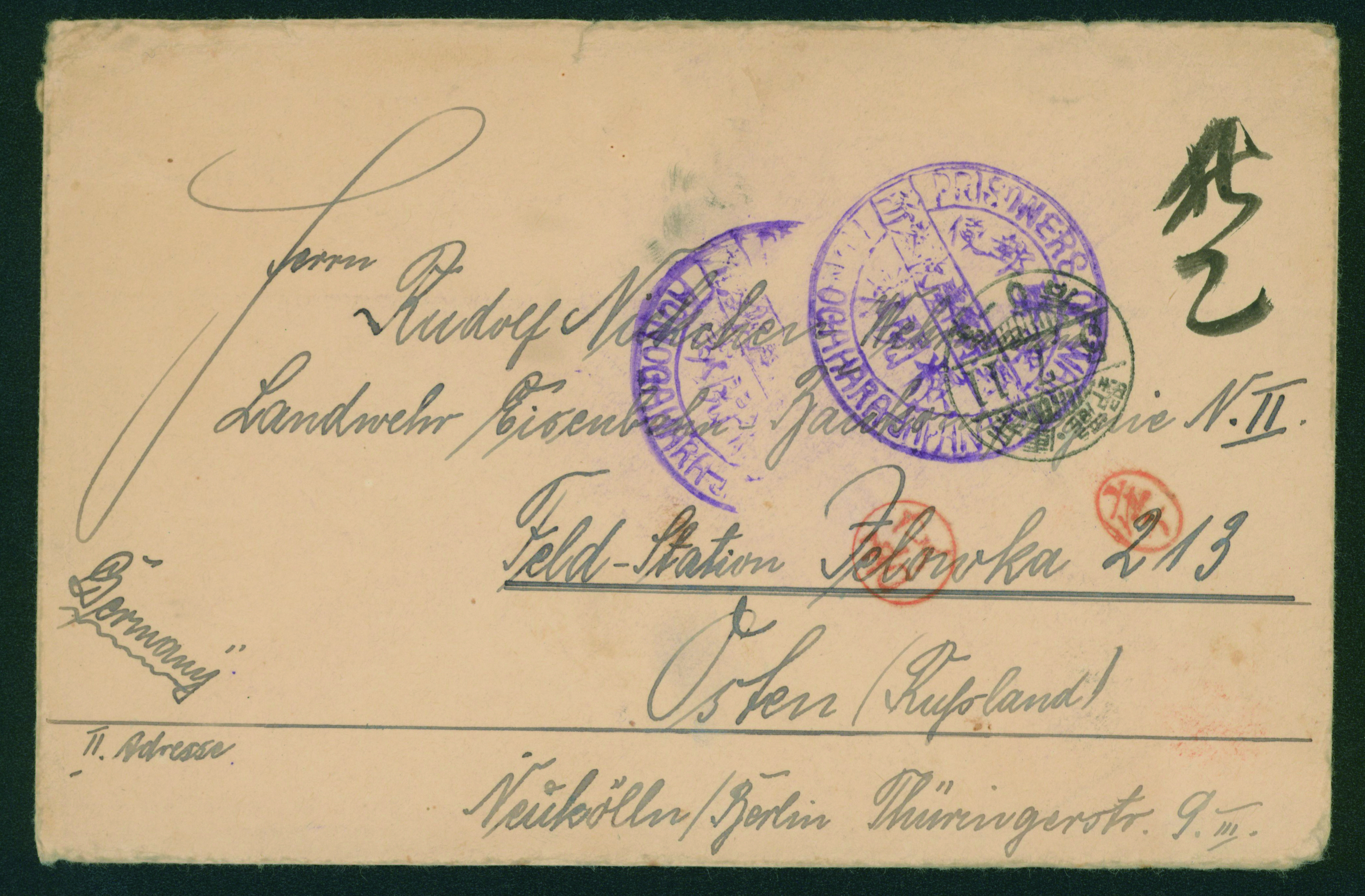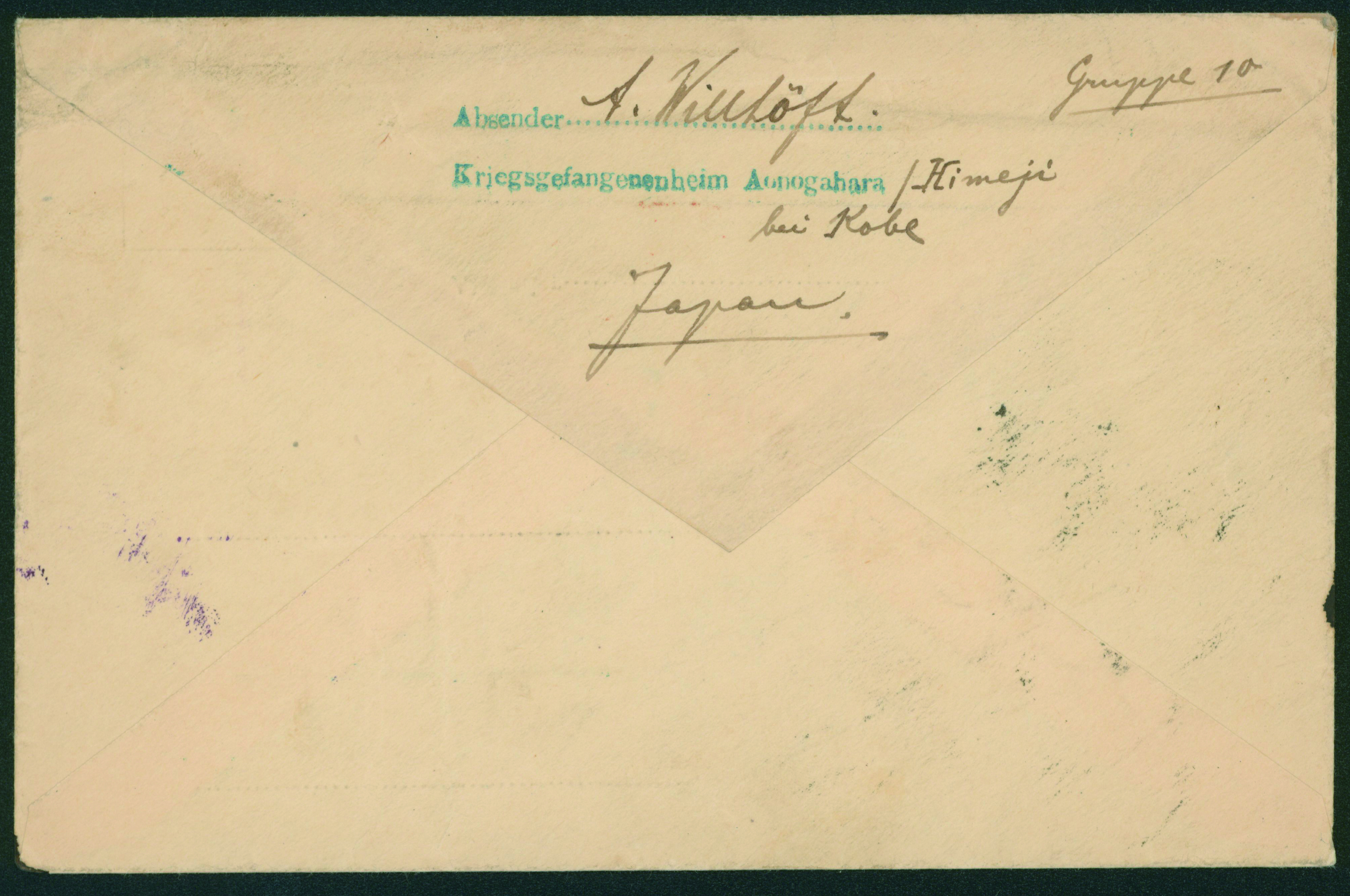 [使用例] 第一次世界大戦 俘虜郵便 櫛型印 大正5 7 11 龍野(兵庫県)→ドイツ 青野原収容所 検閲あり 書状