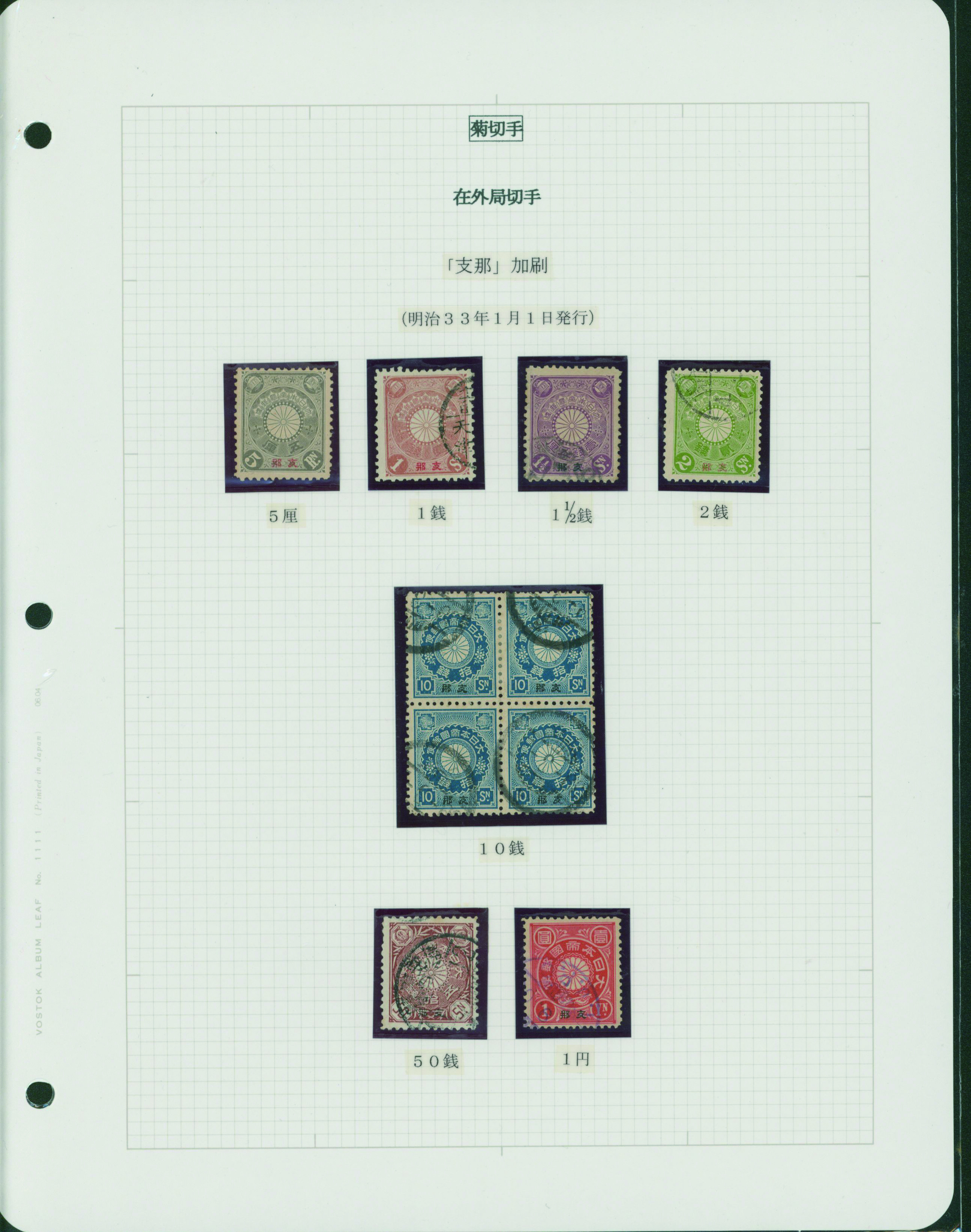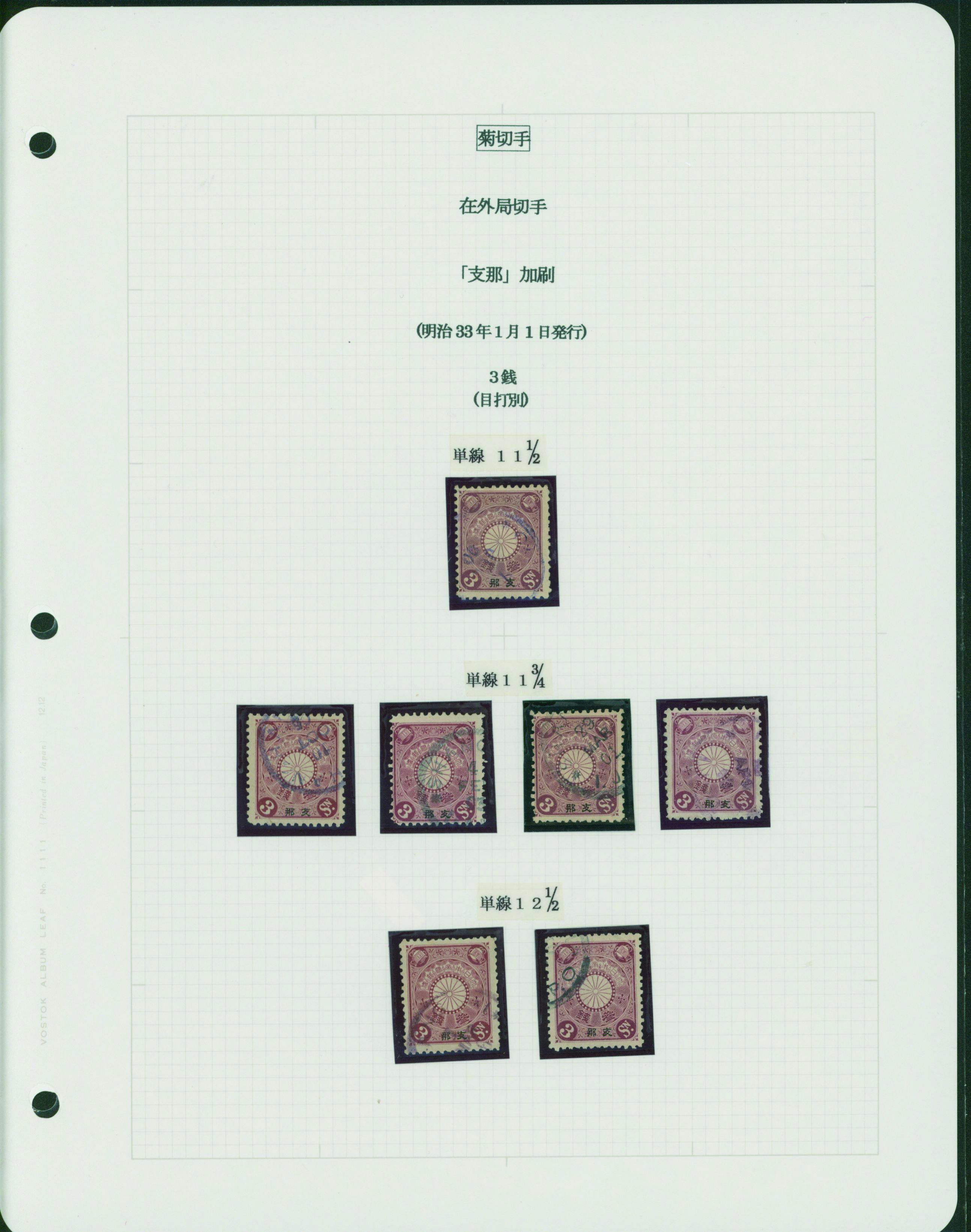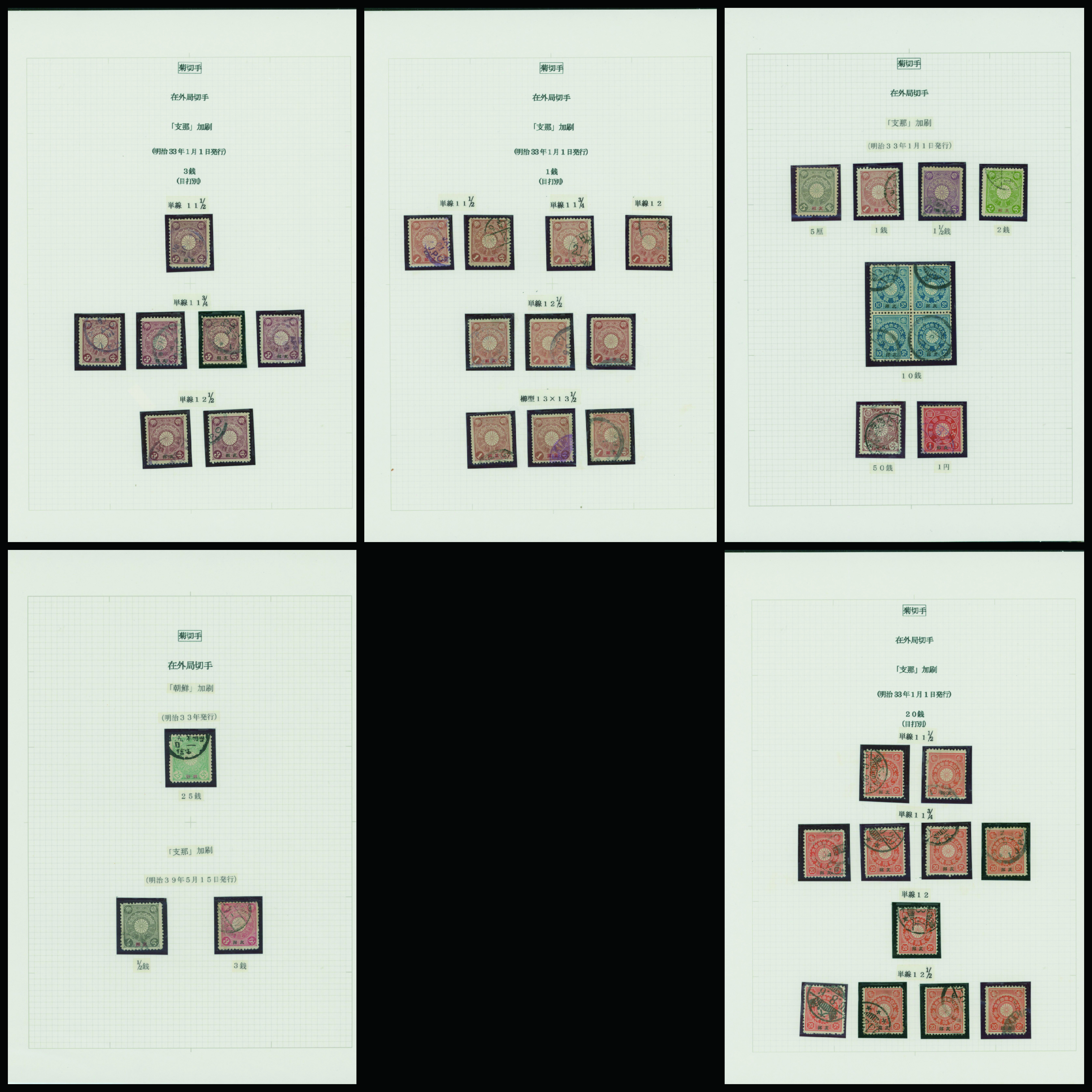 [Collection] 菊支那字入切手コレクション 5リーフ 切手40枚 主に使用済 出品者による目打分類付き