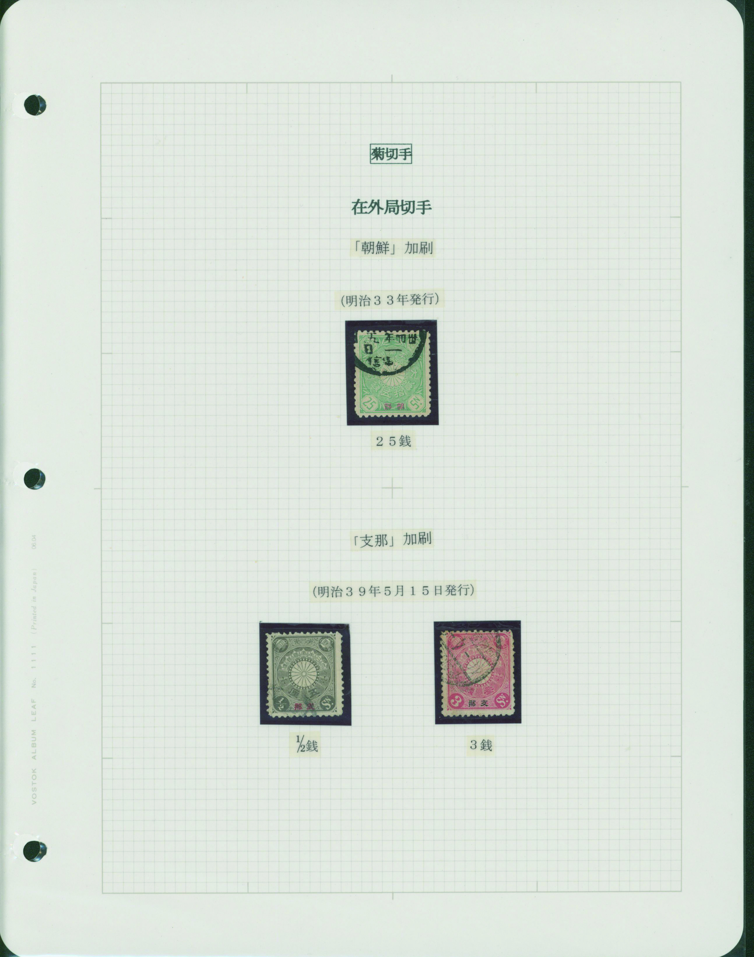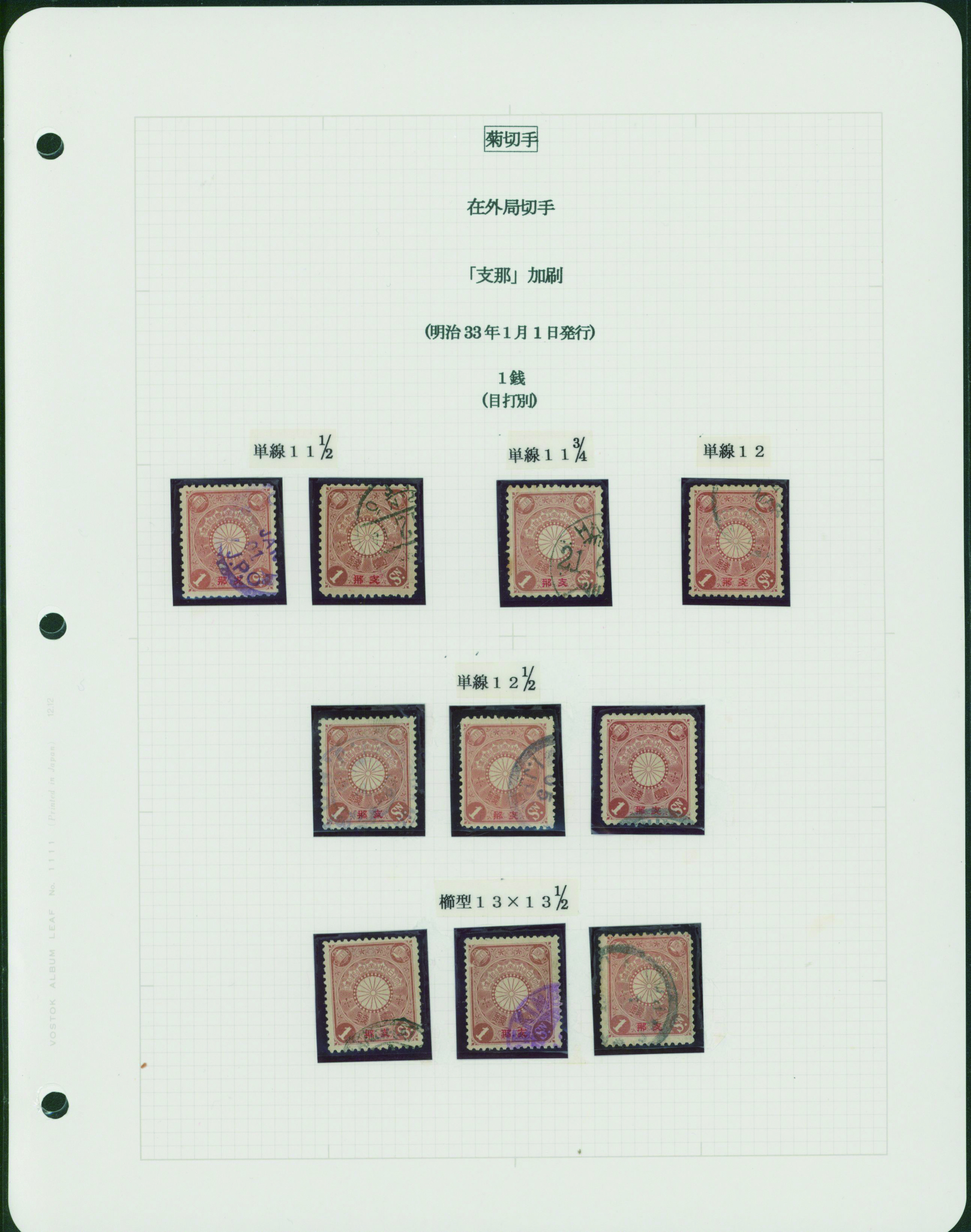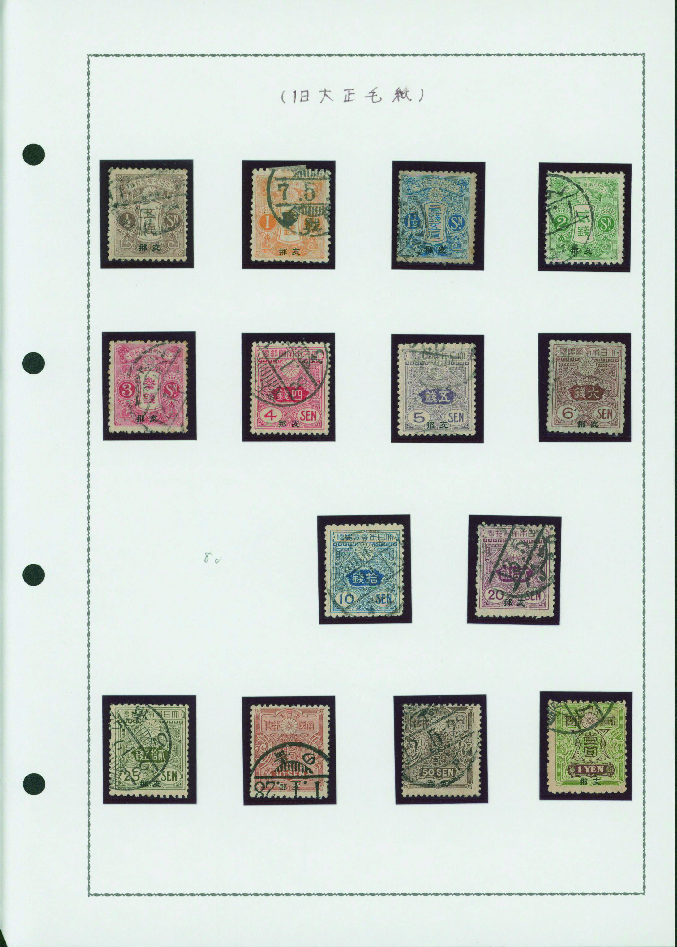 [Collection] 菊支那字入切手コレクション 5リーフ 切手40枚 主に使用済 出品者による目打分類付き