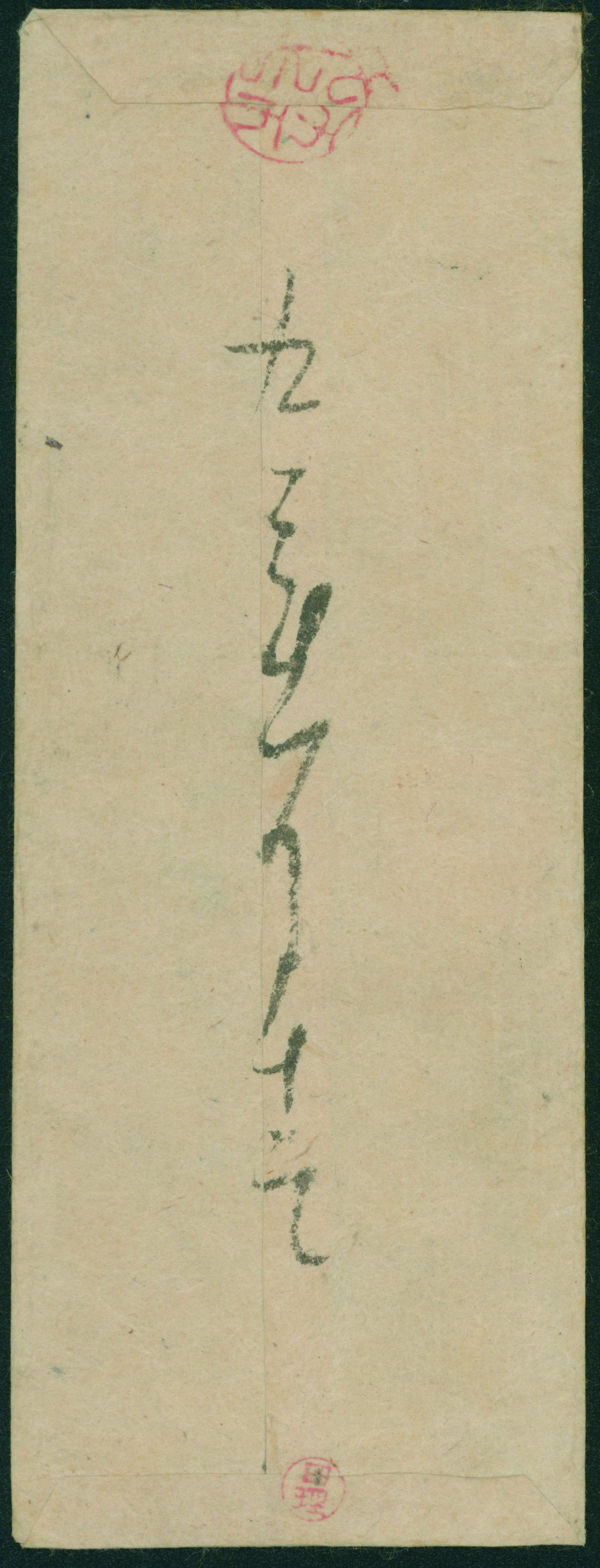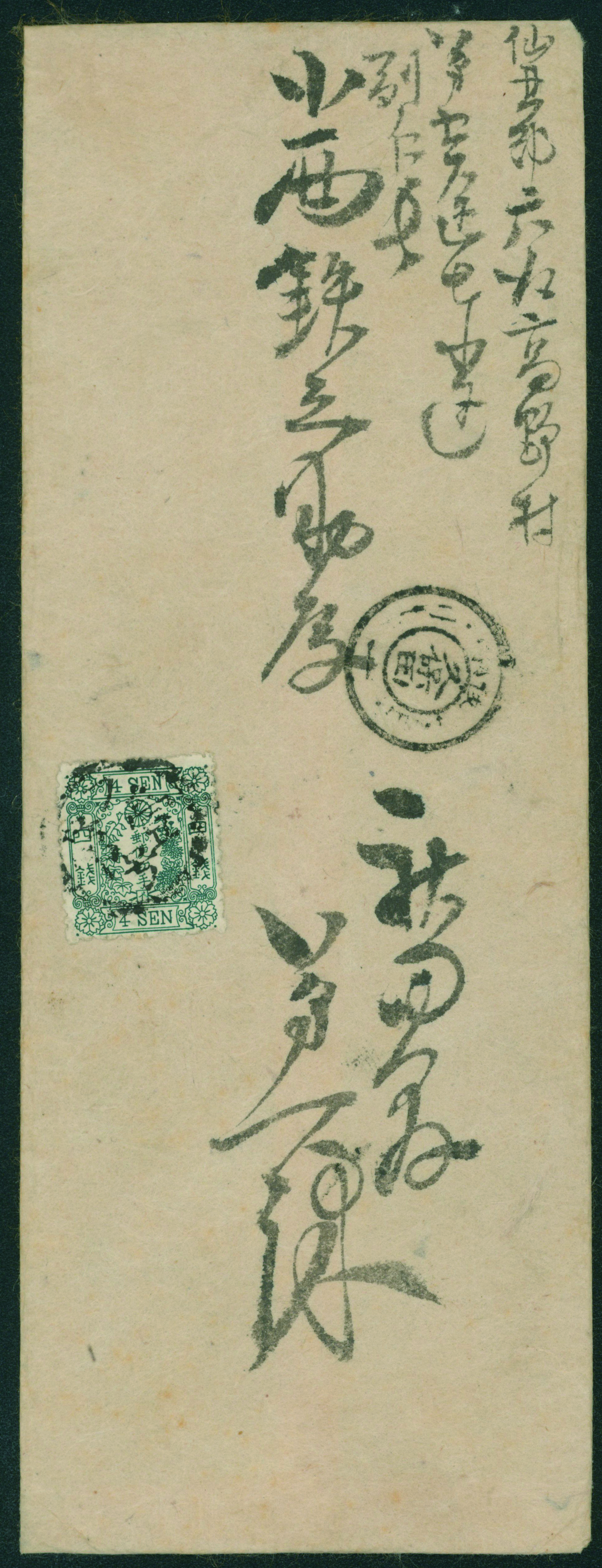 [使用例] 改色桜4銭緑カナ イ 記番印(フ第壱号) 1/12 久保田 書状