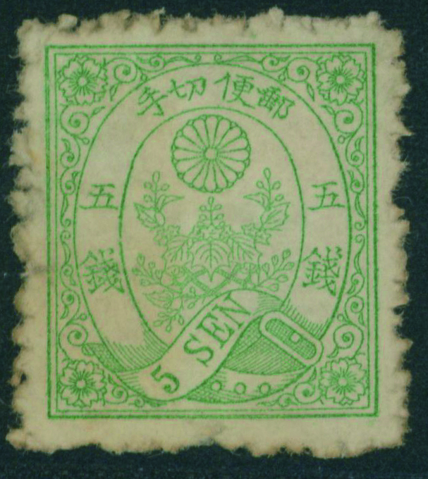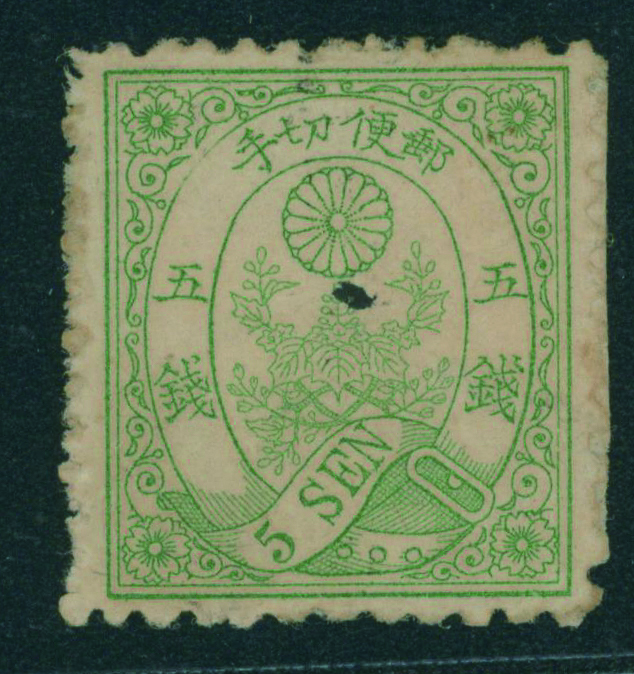 [SP] ネギ5銭 見本 墨点 裏に紙付着