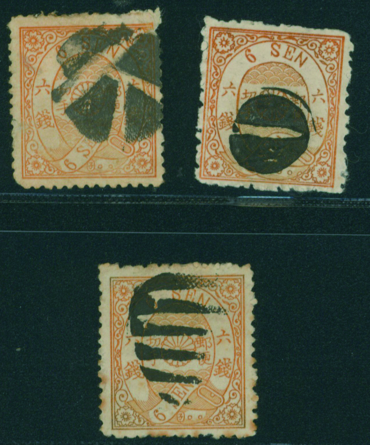 [済] 改色桜6銭橙カナ, 6銭橙カナ 済 3枚