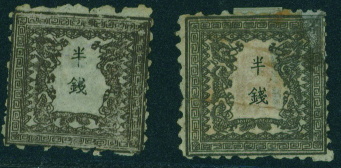 [未] 竜半銭 2枚 未使用 ヒンジ跡あり 切手補修