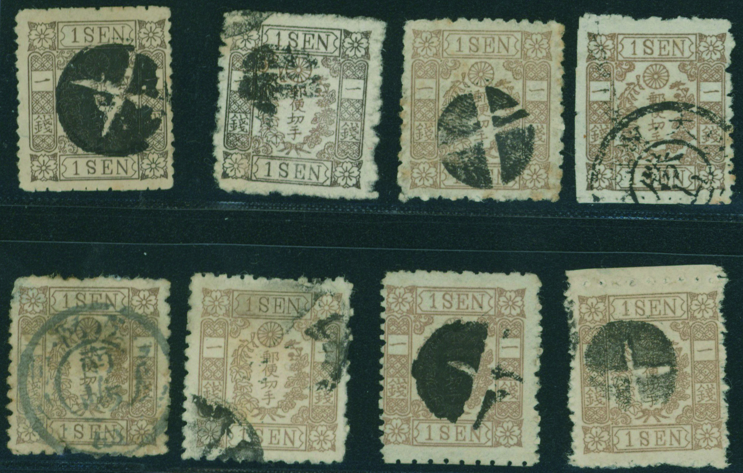 [済] 改色桜1銭茶カナ, 房1銭7枚 済 抹消印 二重丸印