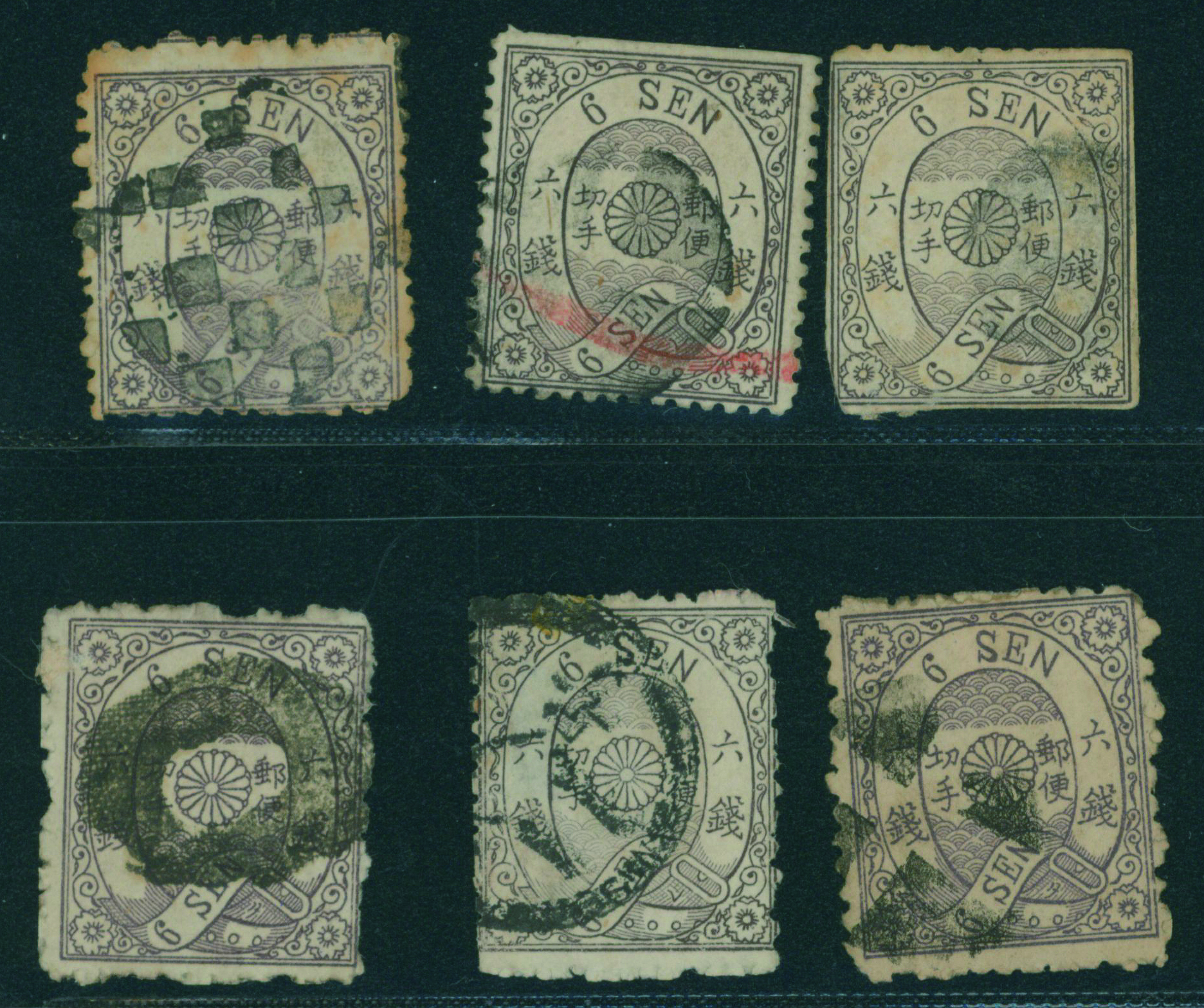 [済] 洋桜6銭灰カナ 6枚 済 抹消印 記番印 ボタ印 状態様々