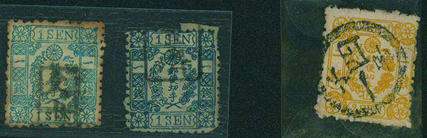 [済] 和桜2銭黄 および1銭2枚 済