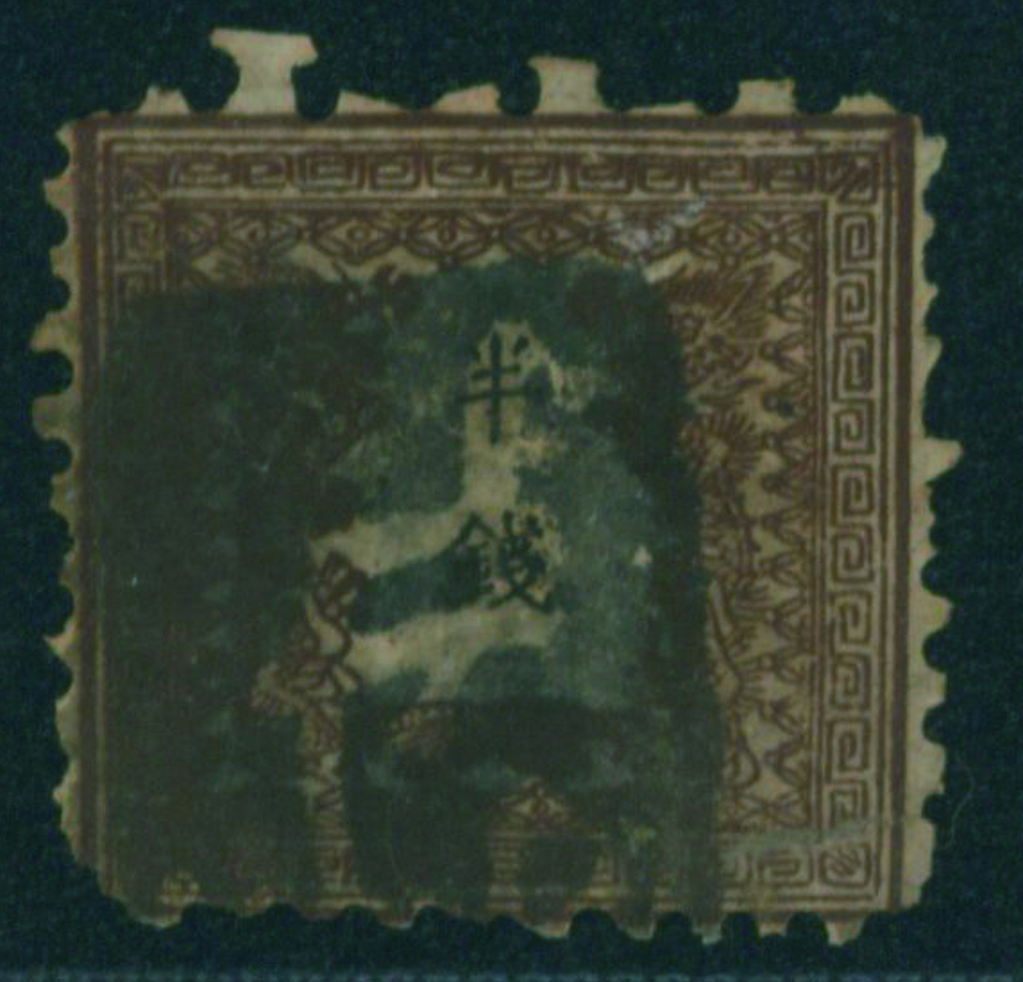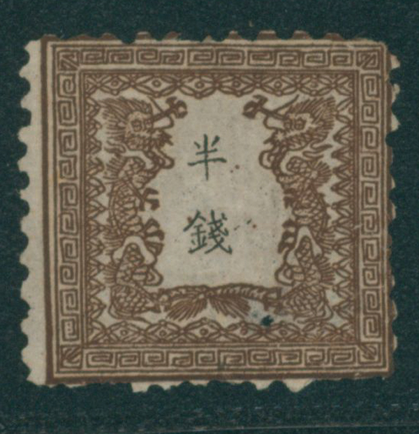 [未] 竜半銭 2版 pos.11 印面変種 左竜尾一部欠け 未使用 目打甘い 淡いシミ