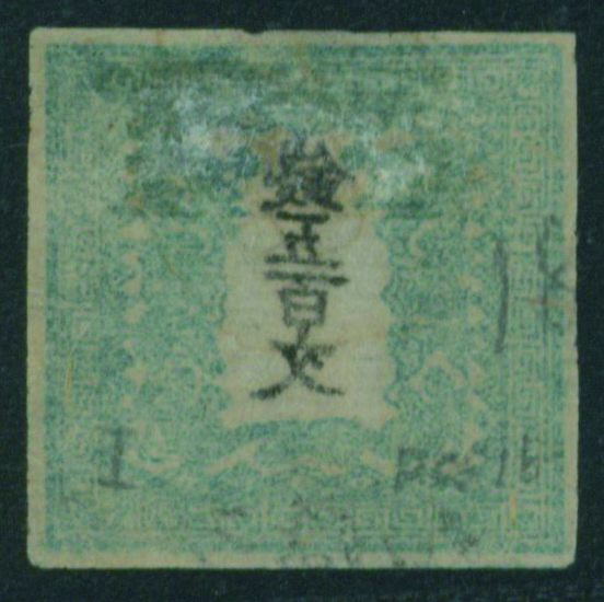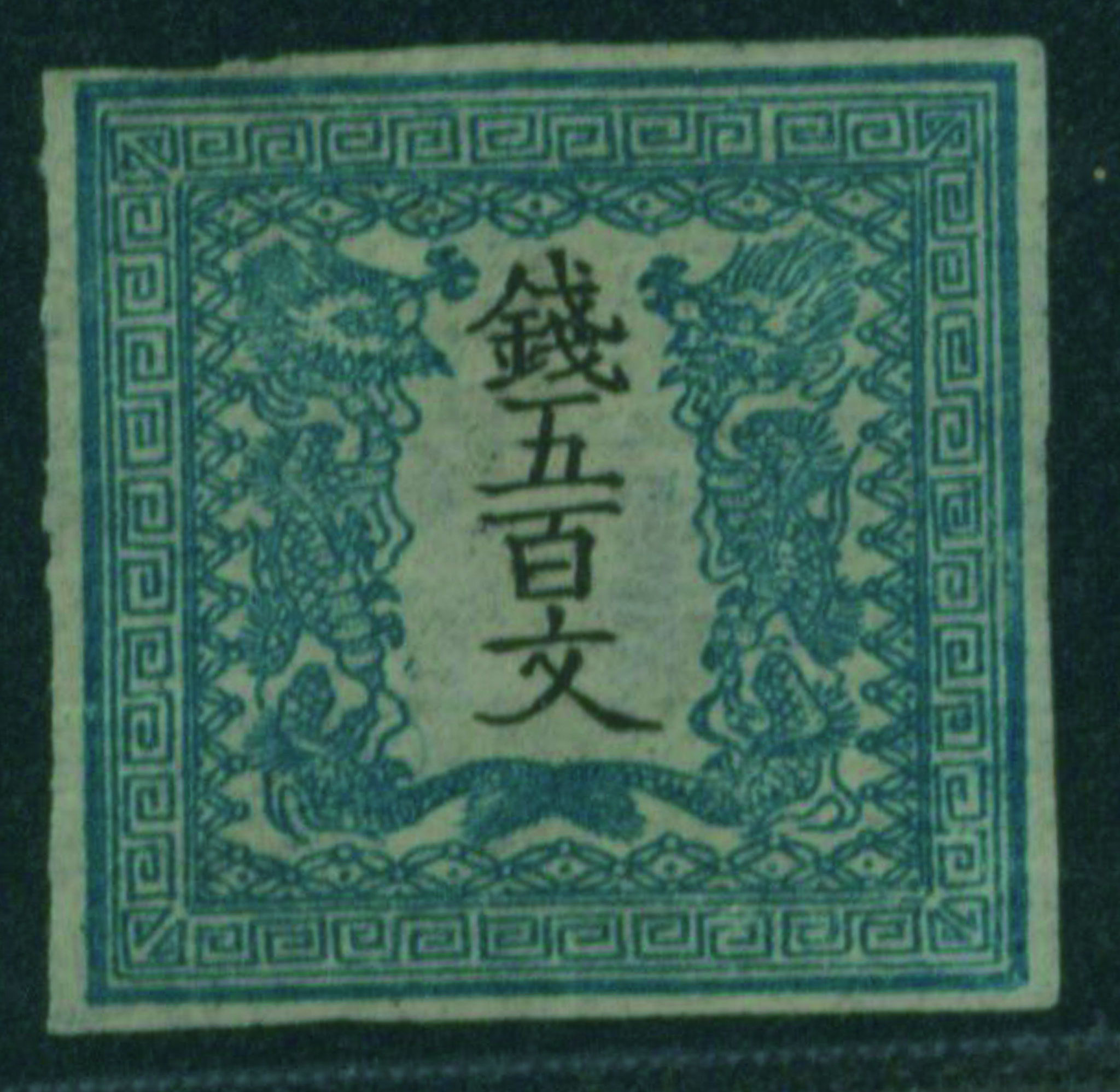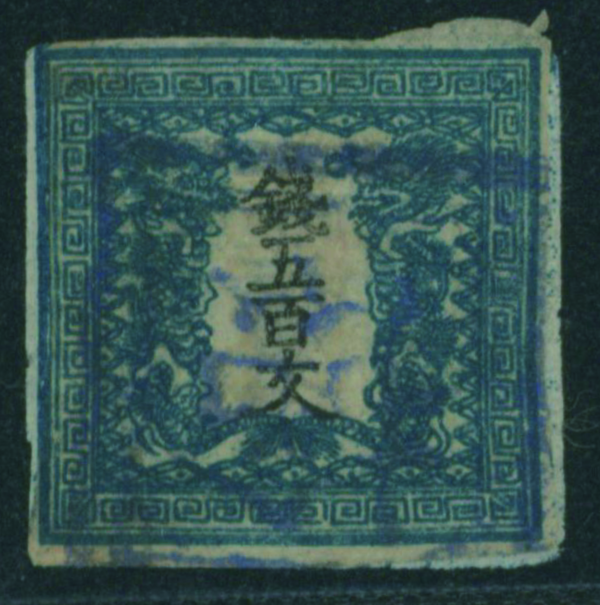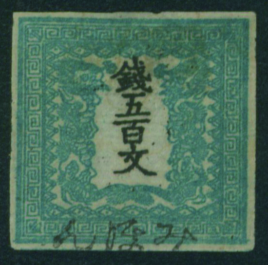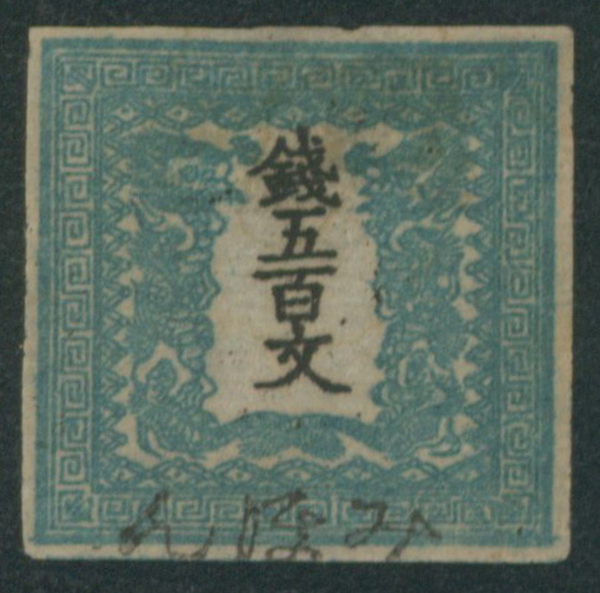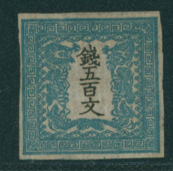 [済] 竜500文 2版 pos.31 済 ほぼ4マージン 不統一印(青, 角検) 東京 印影良好 小シミ 紙付着