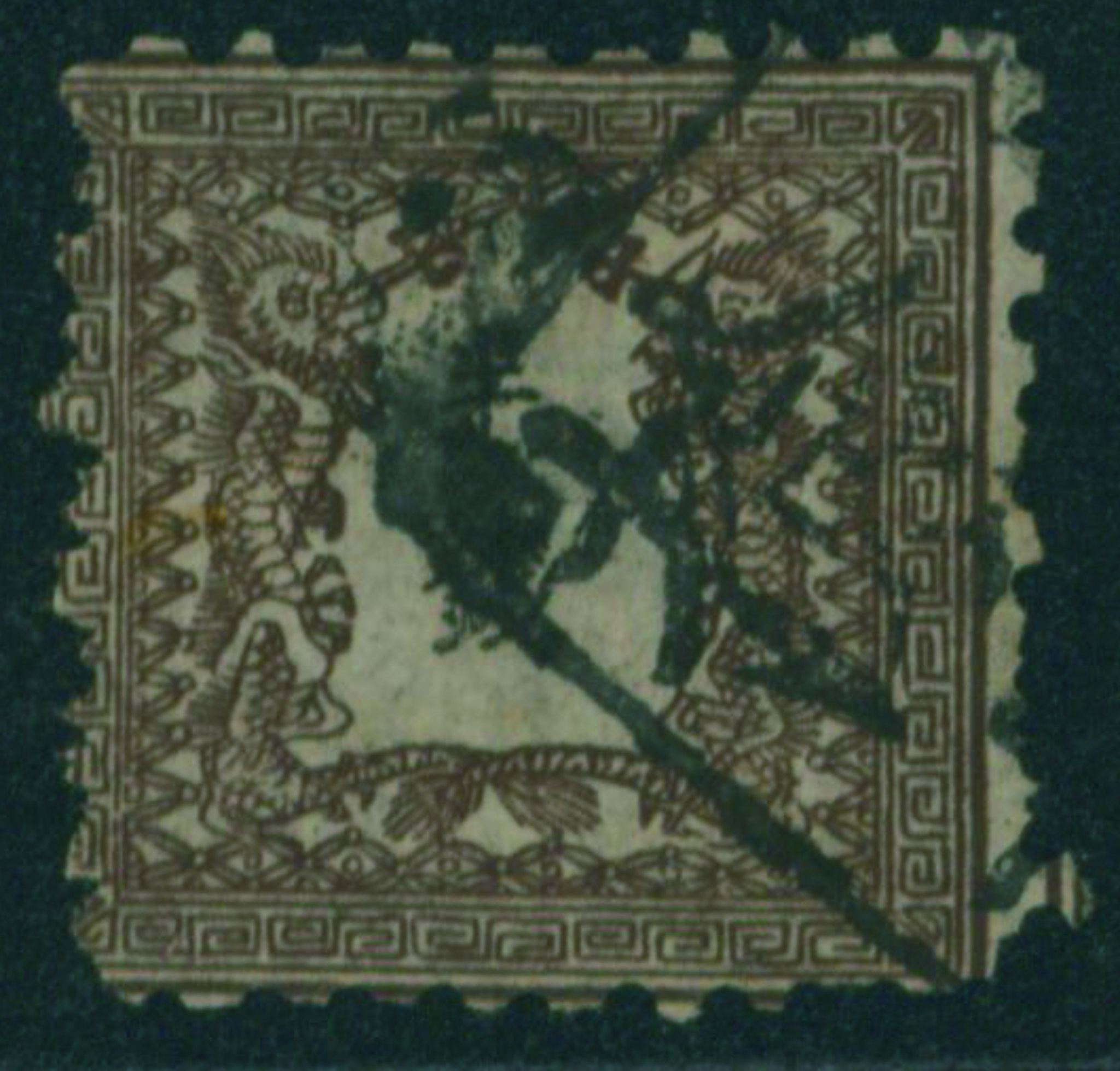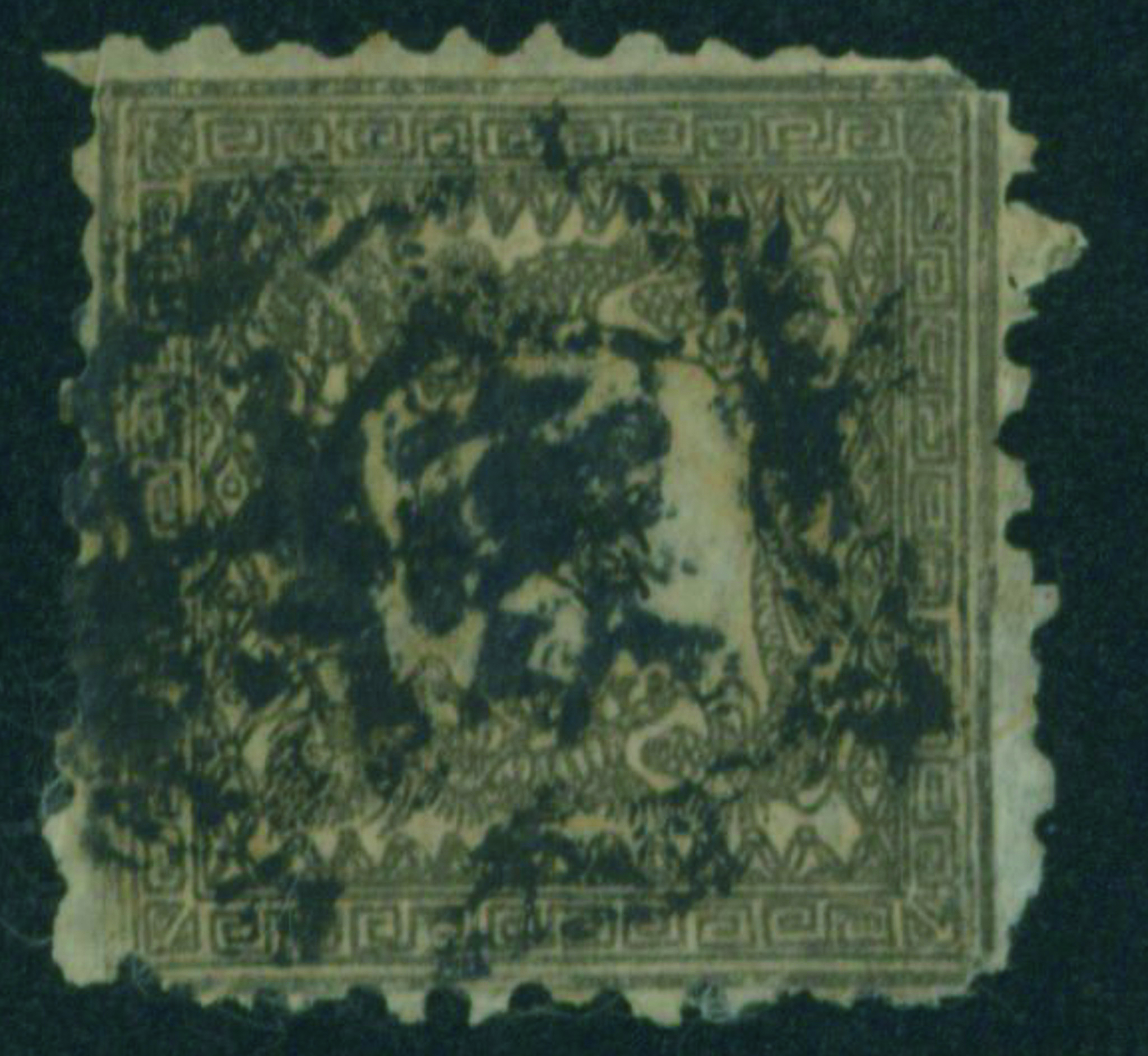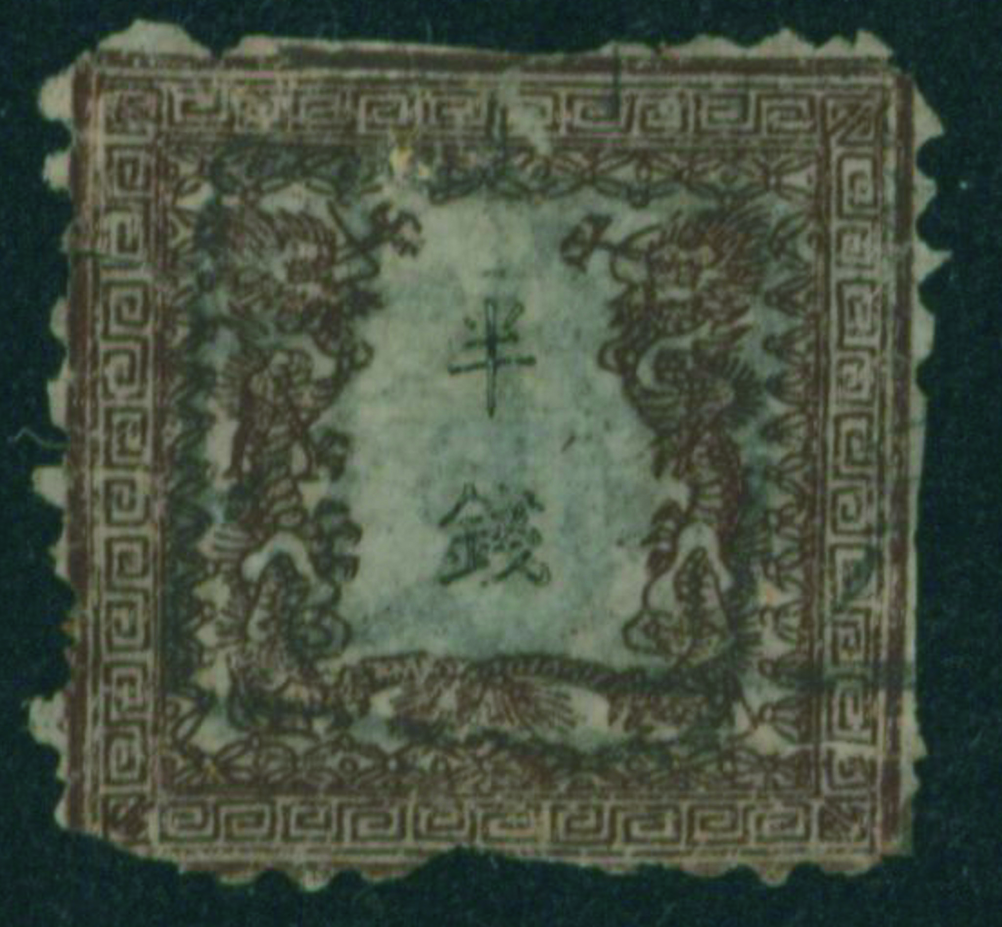 [済] 竜半銭 1版 pos.25 済 一部欠け 目打甘い 上辺の一部欠けは裏打ち補修 不統一印(▢検)