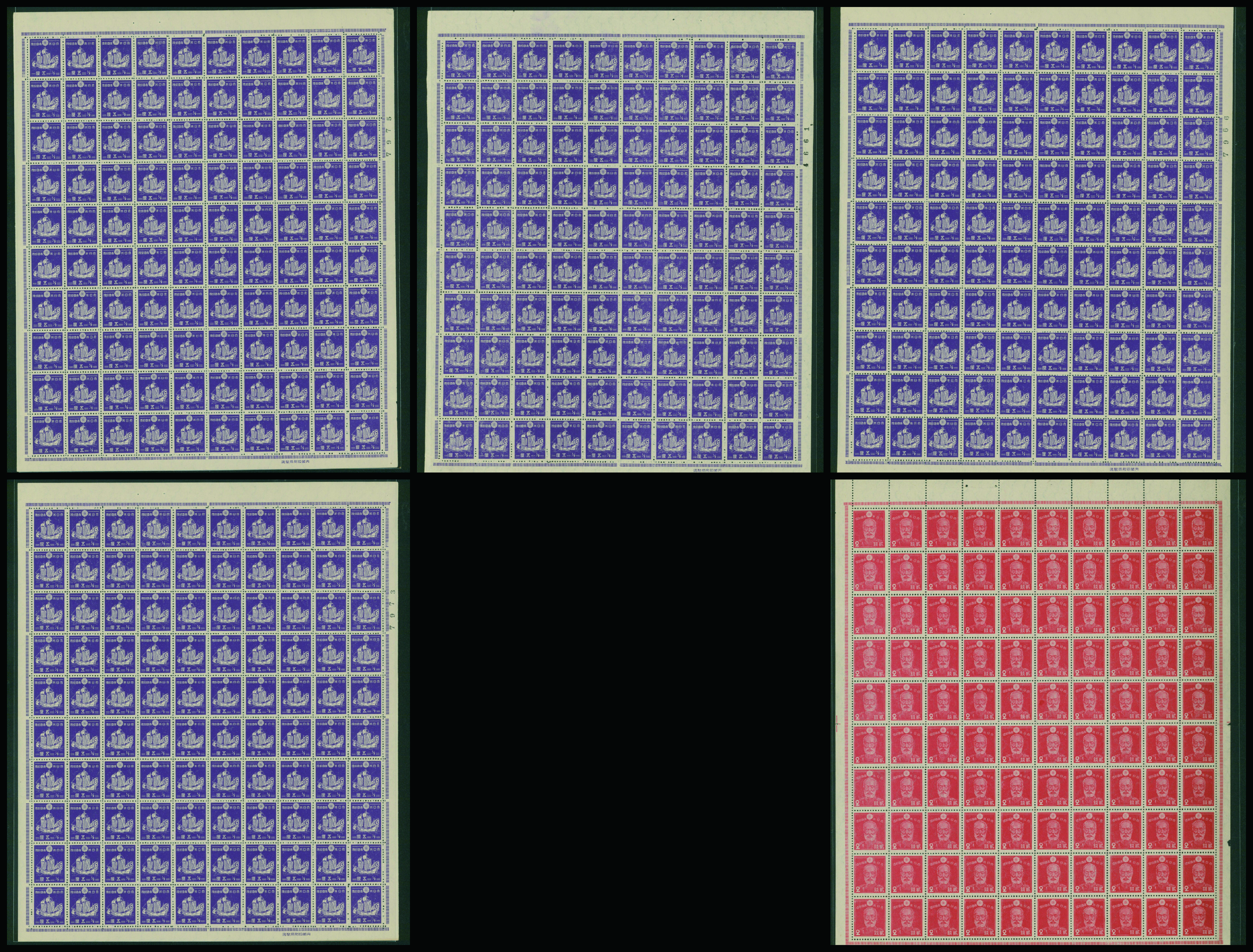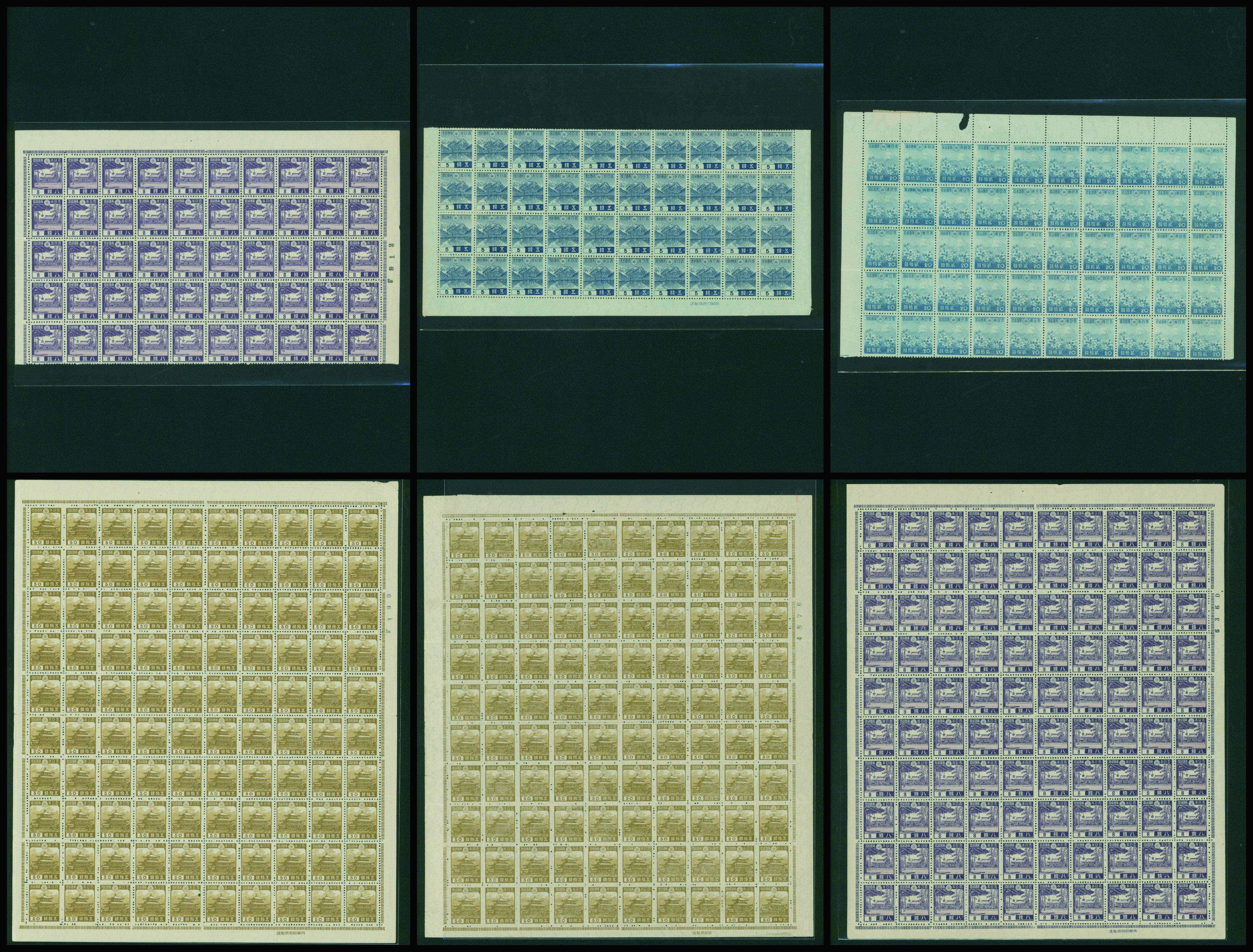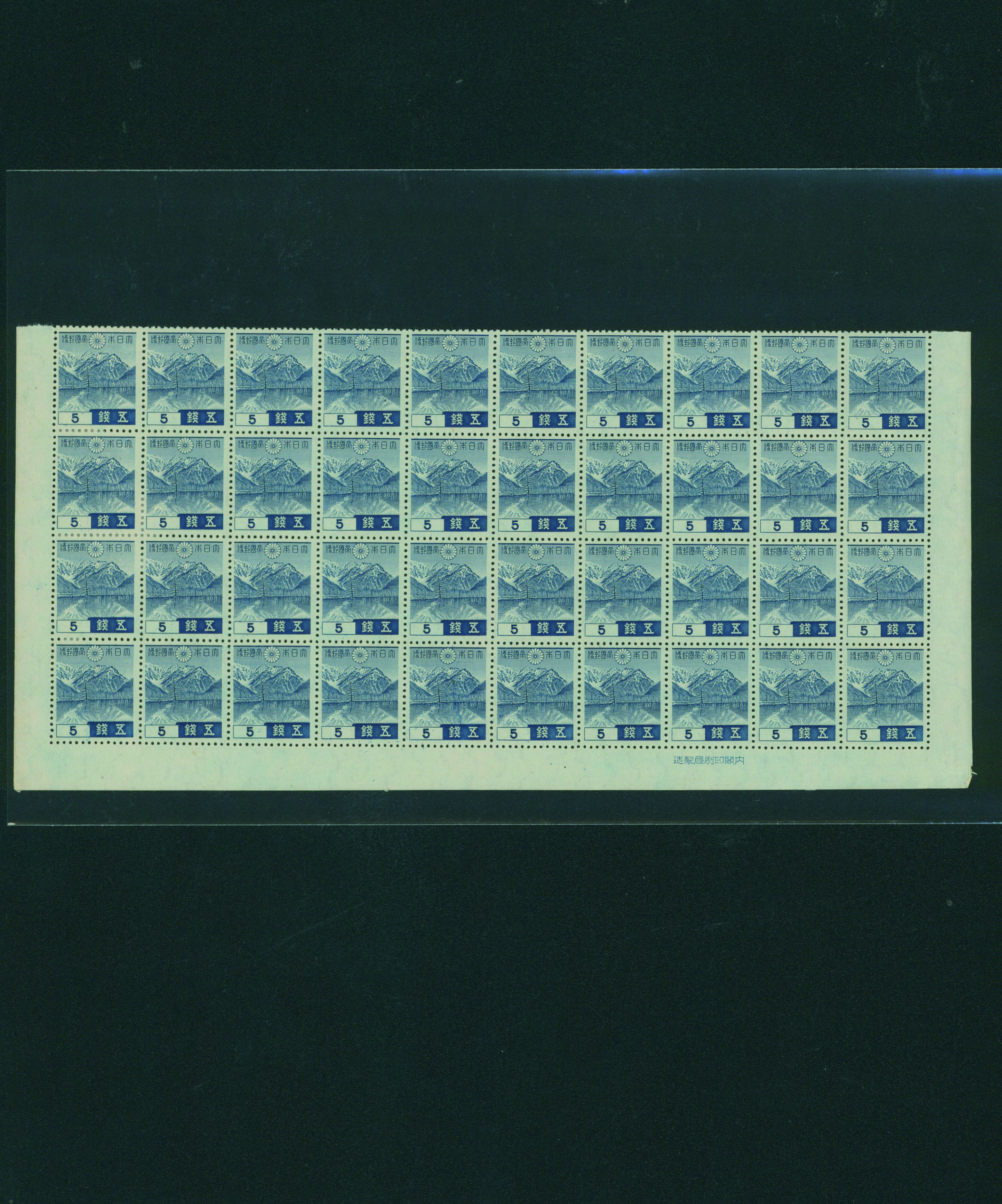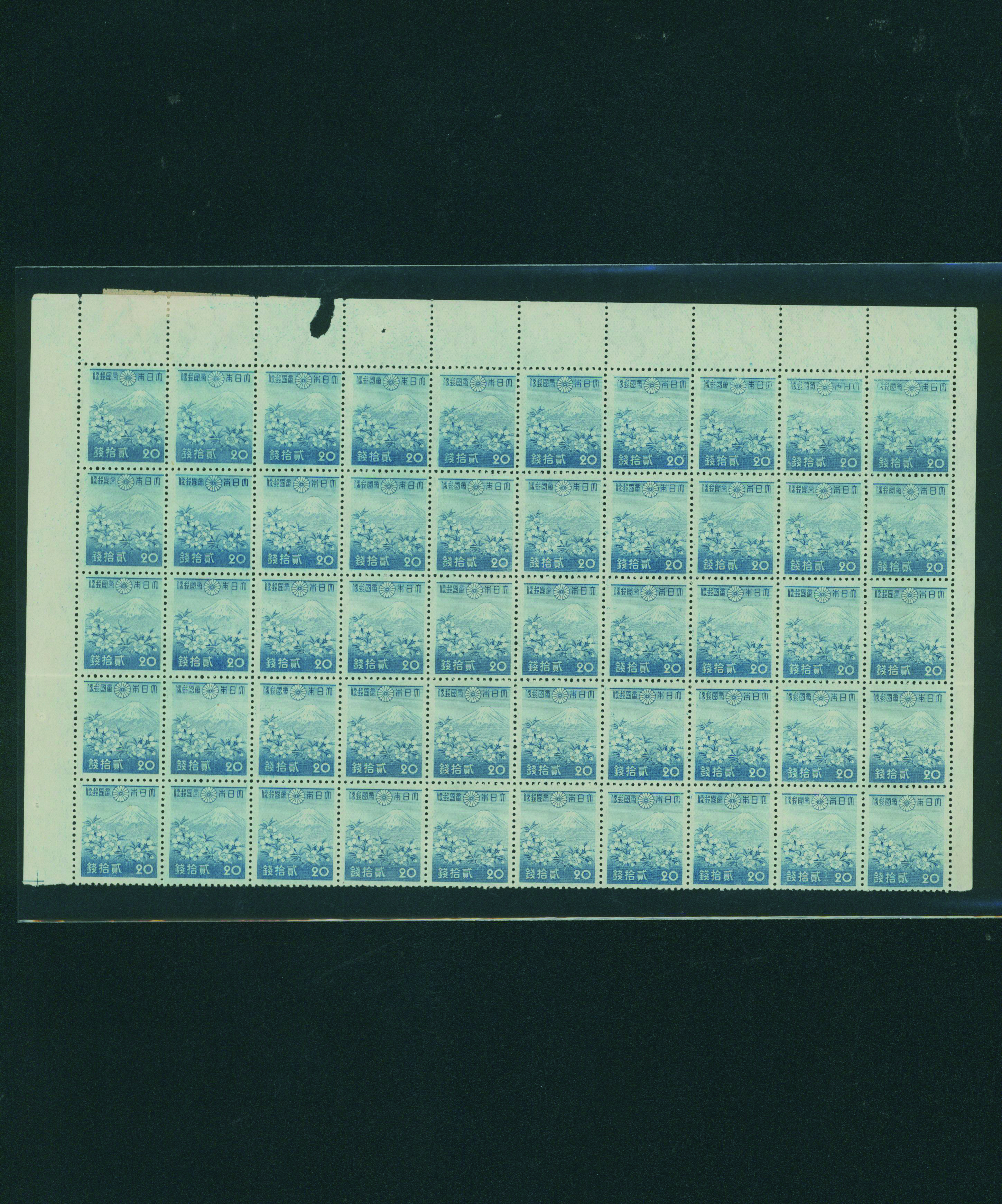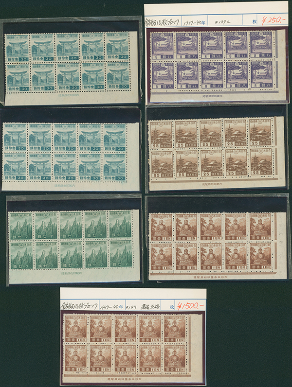カテゴリー:1次・2次昭和(シートロット) wartime issue 3 Sen, 4 Sen, 6 Sen, 15 Sen, 40 Sen engraved mainly unused with some used,最低値: 3,000 円