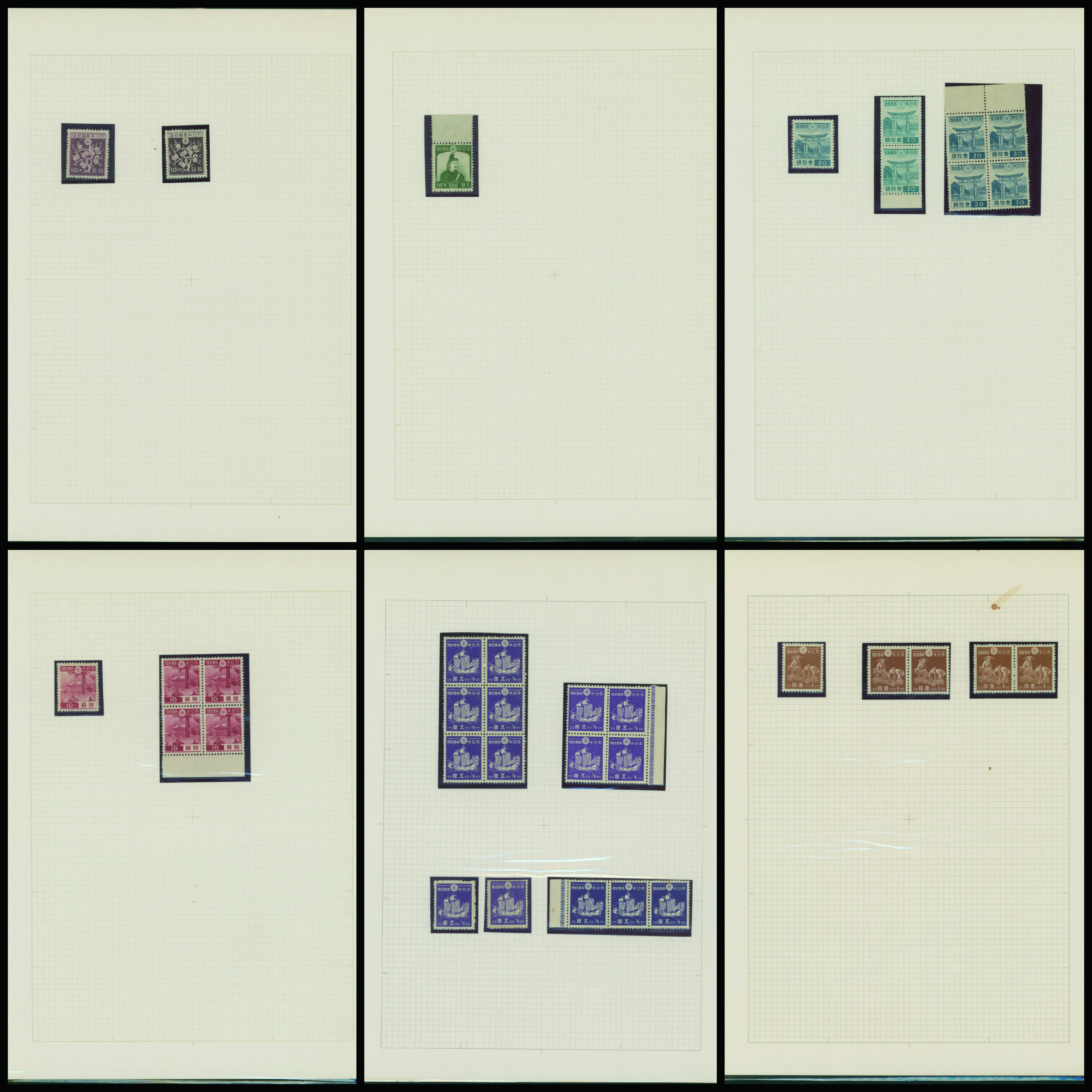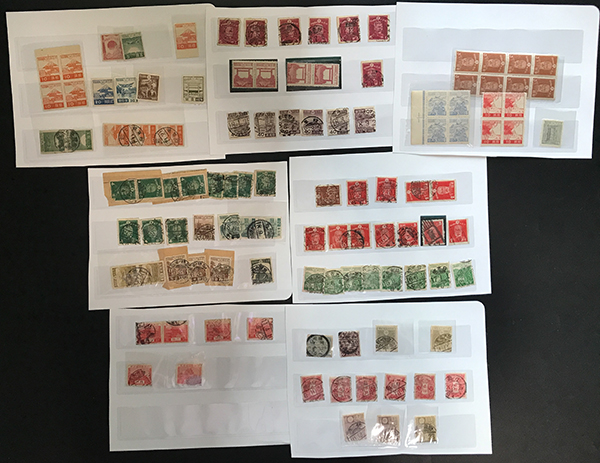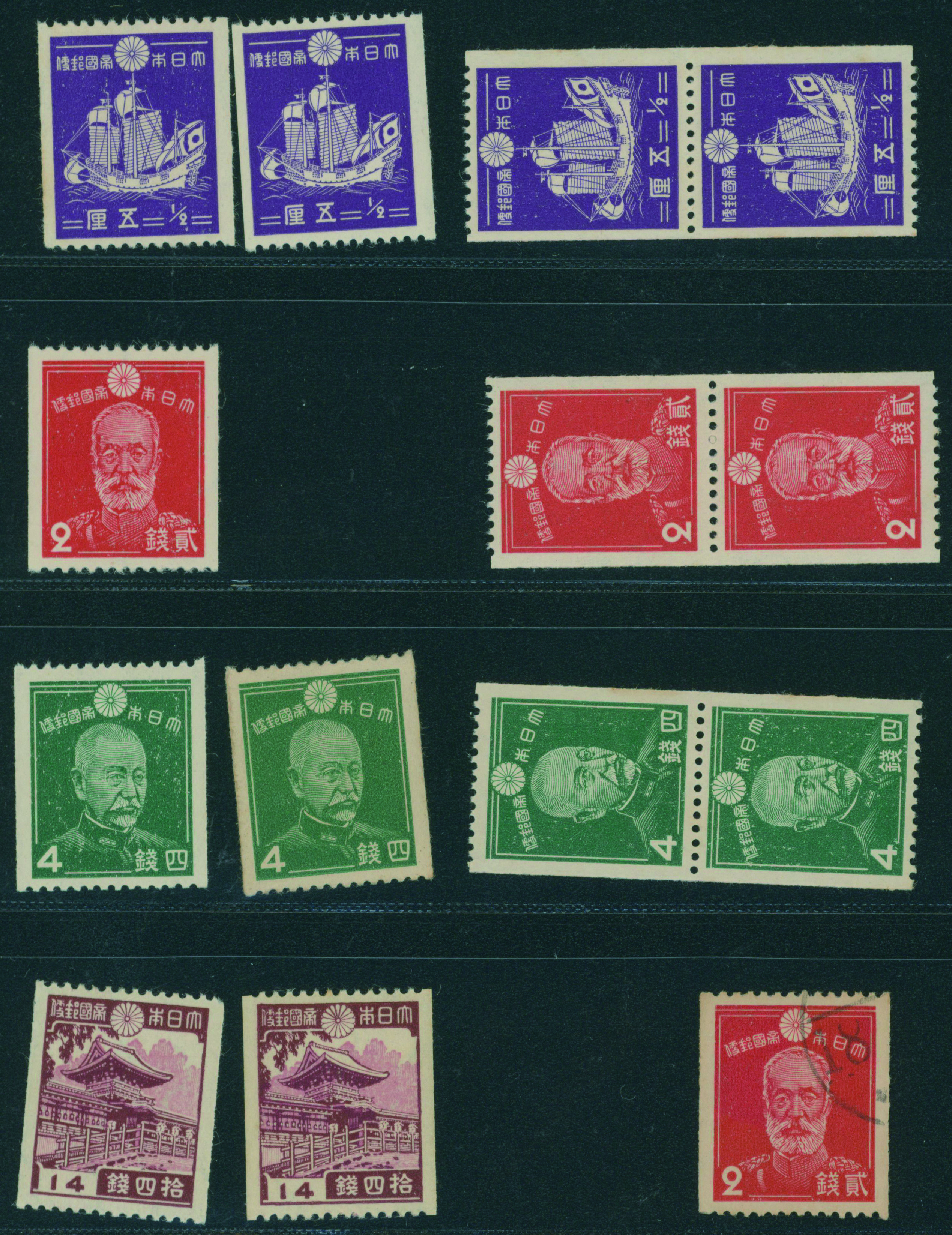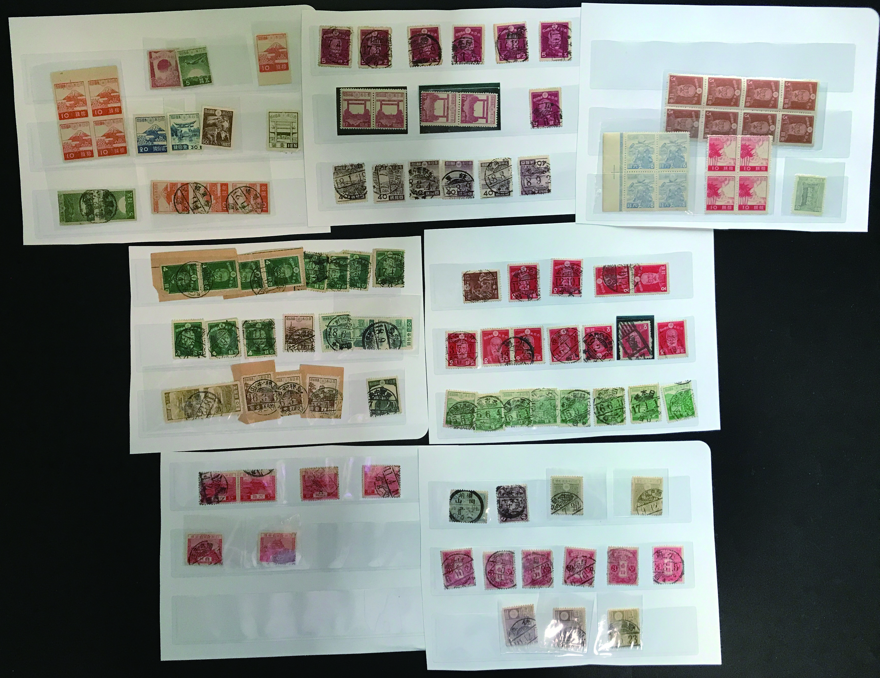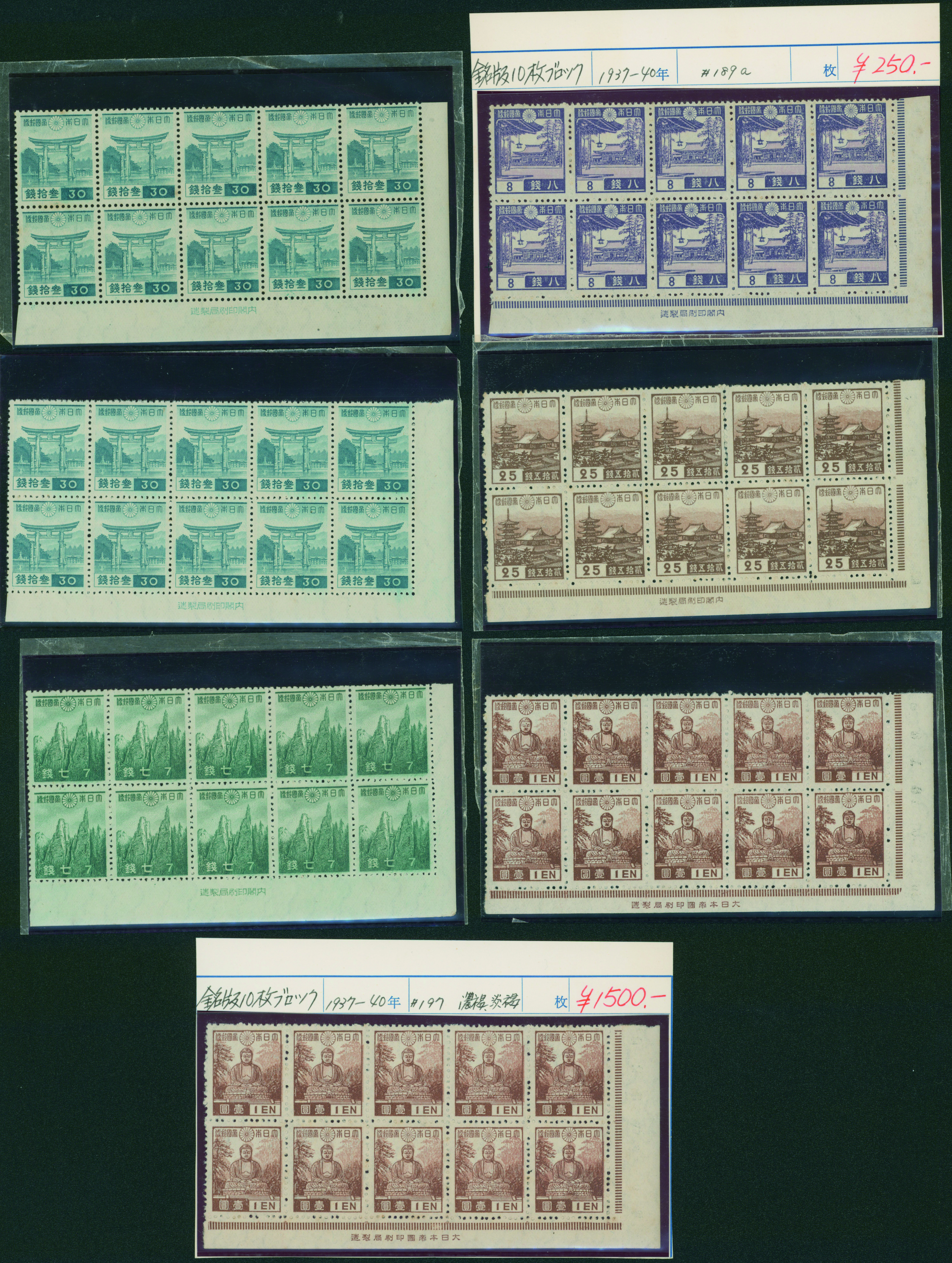 カテゴリー:1次・2次昭和(シートロット) wartime issue 3 Sen, 4 Sen, 6 Sen, 15 Sen, 40 Sen engraved mainly unused with some used,最低値: 3,000 円