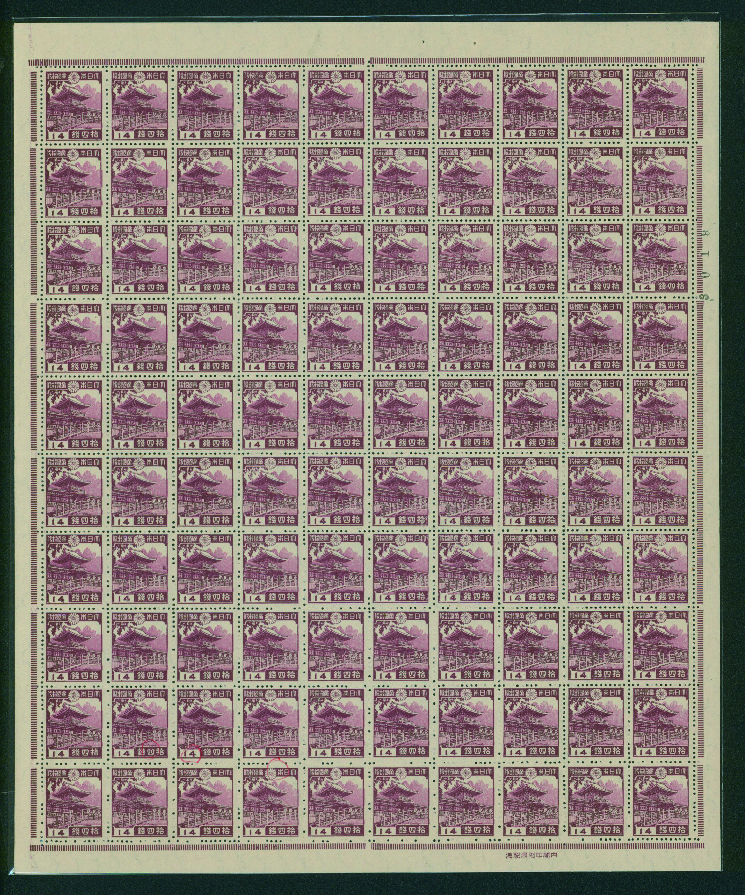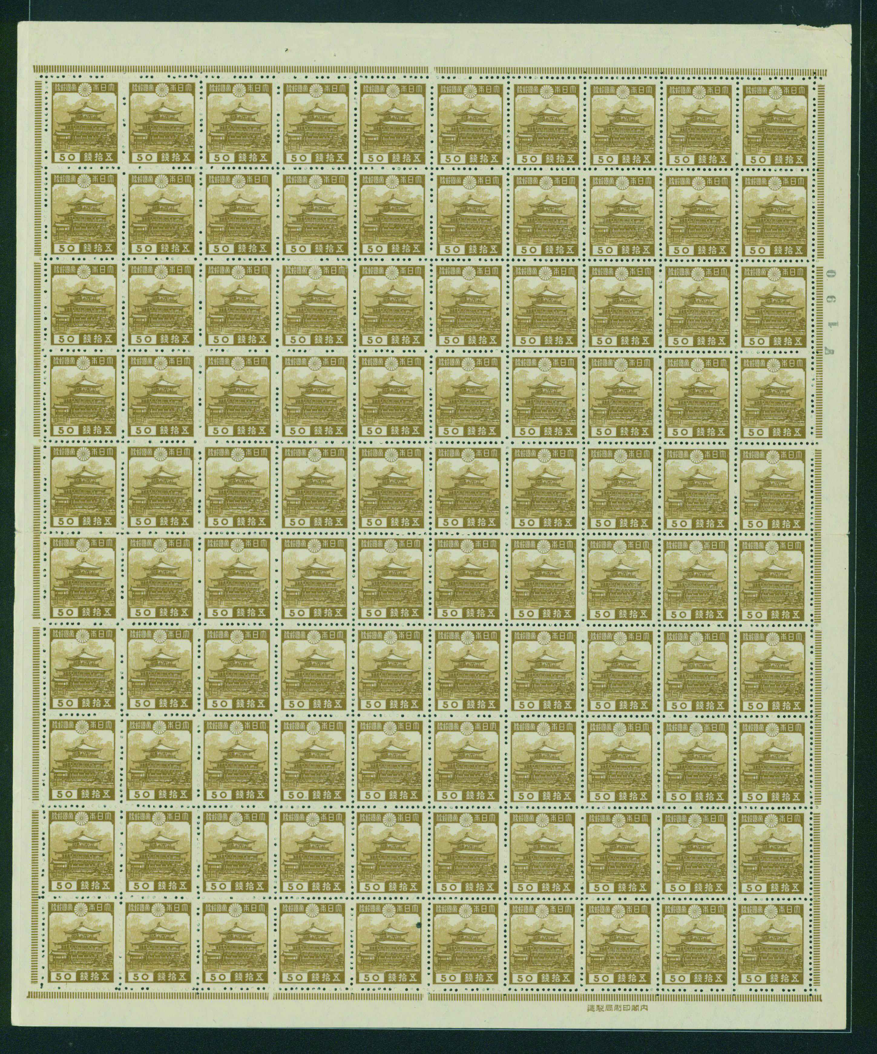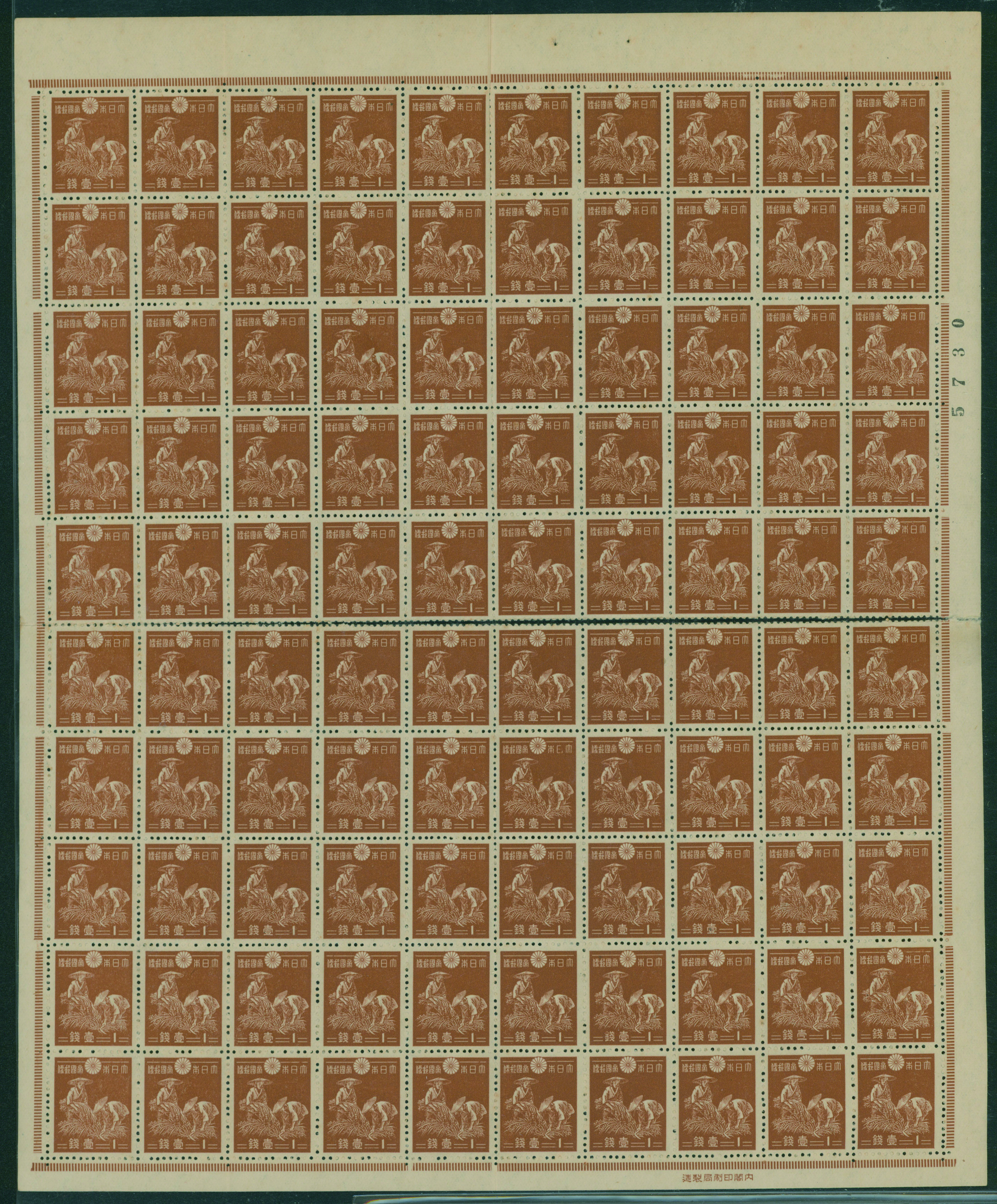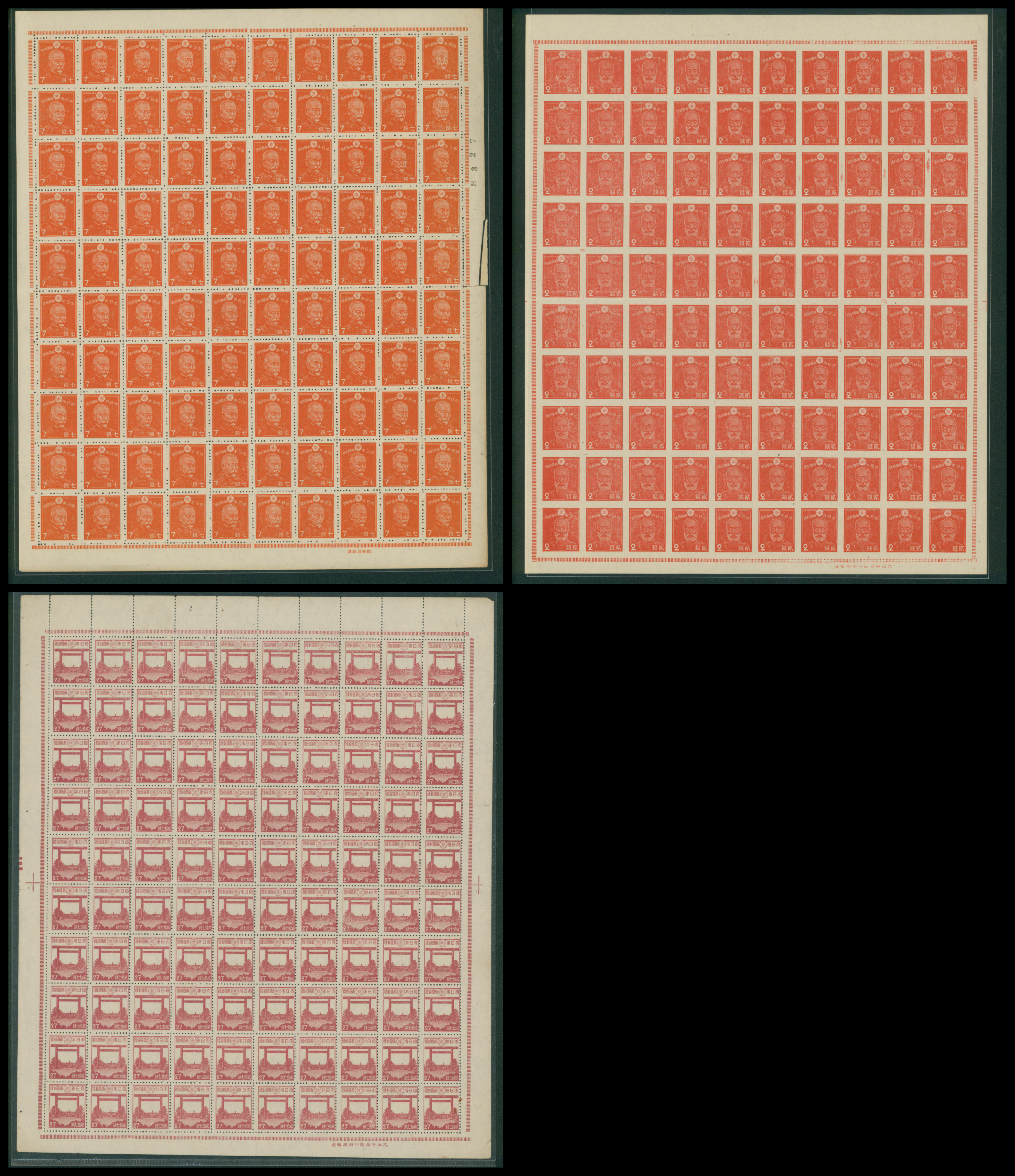 カテゴリー:1次・2次昭和(シートロット) wartime issue 3 Sen, 4 Sen, 6 Sen, 15 Sen, 40 Sen engraved mainly unused with some used,最低値: 3,000 円
