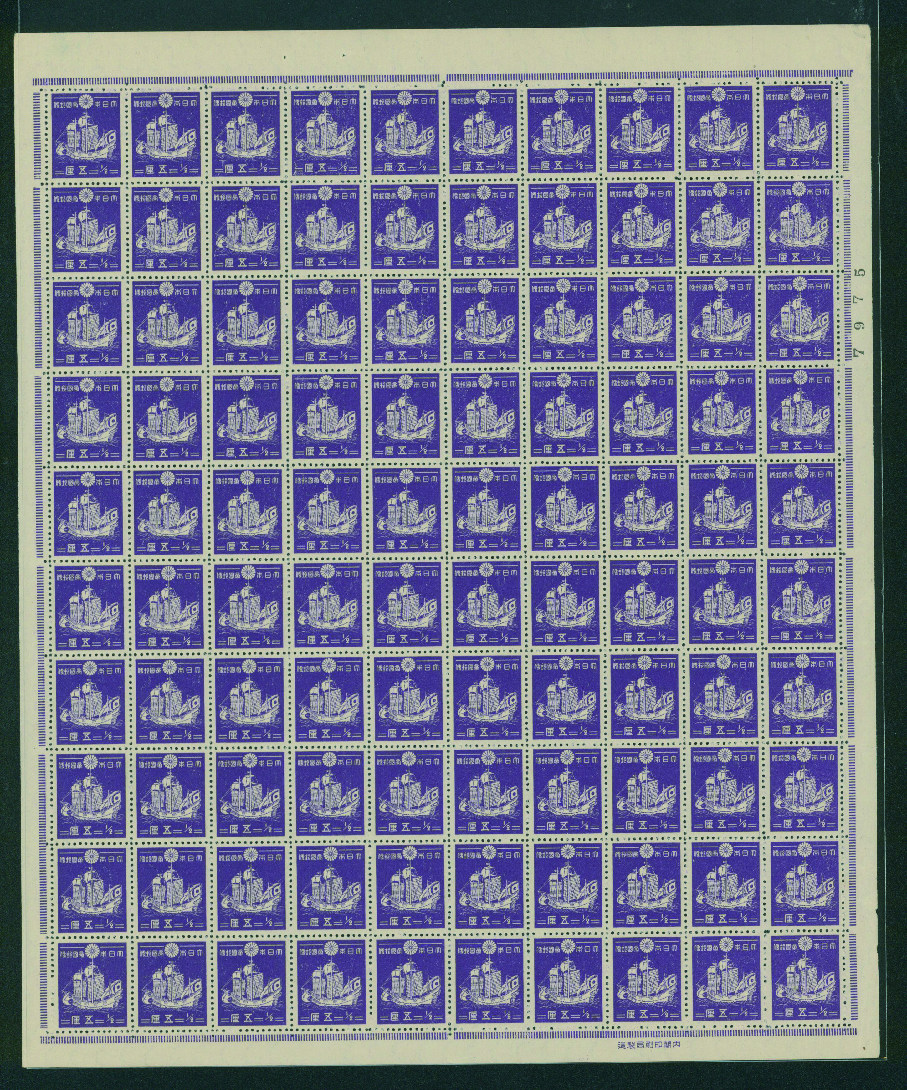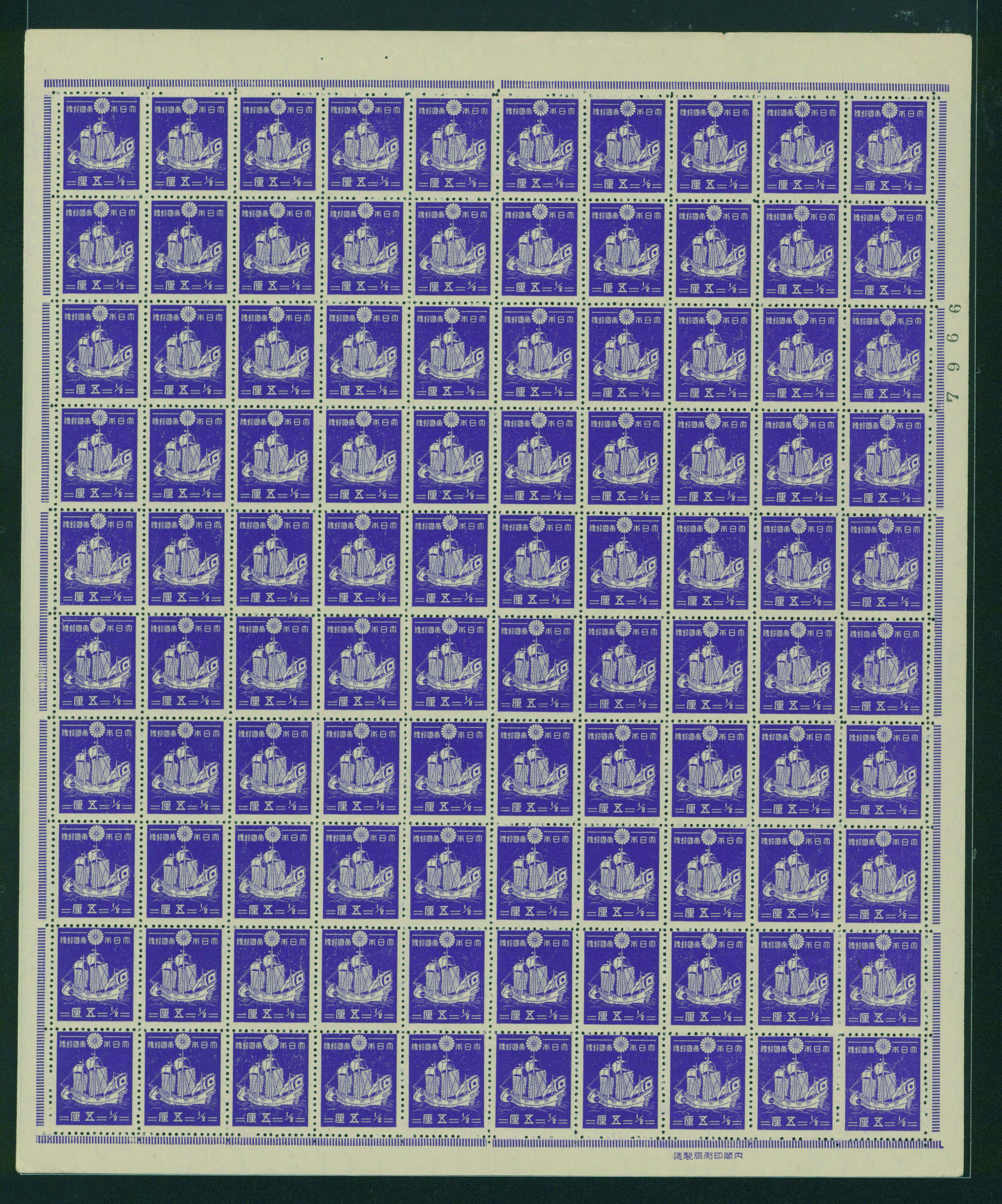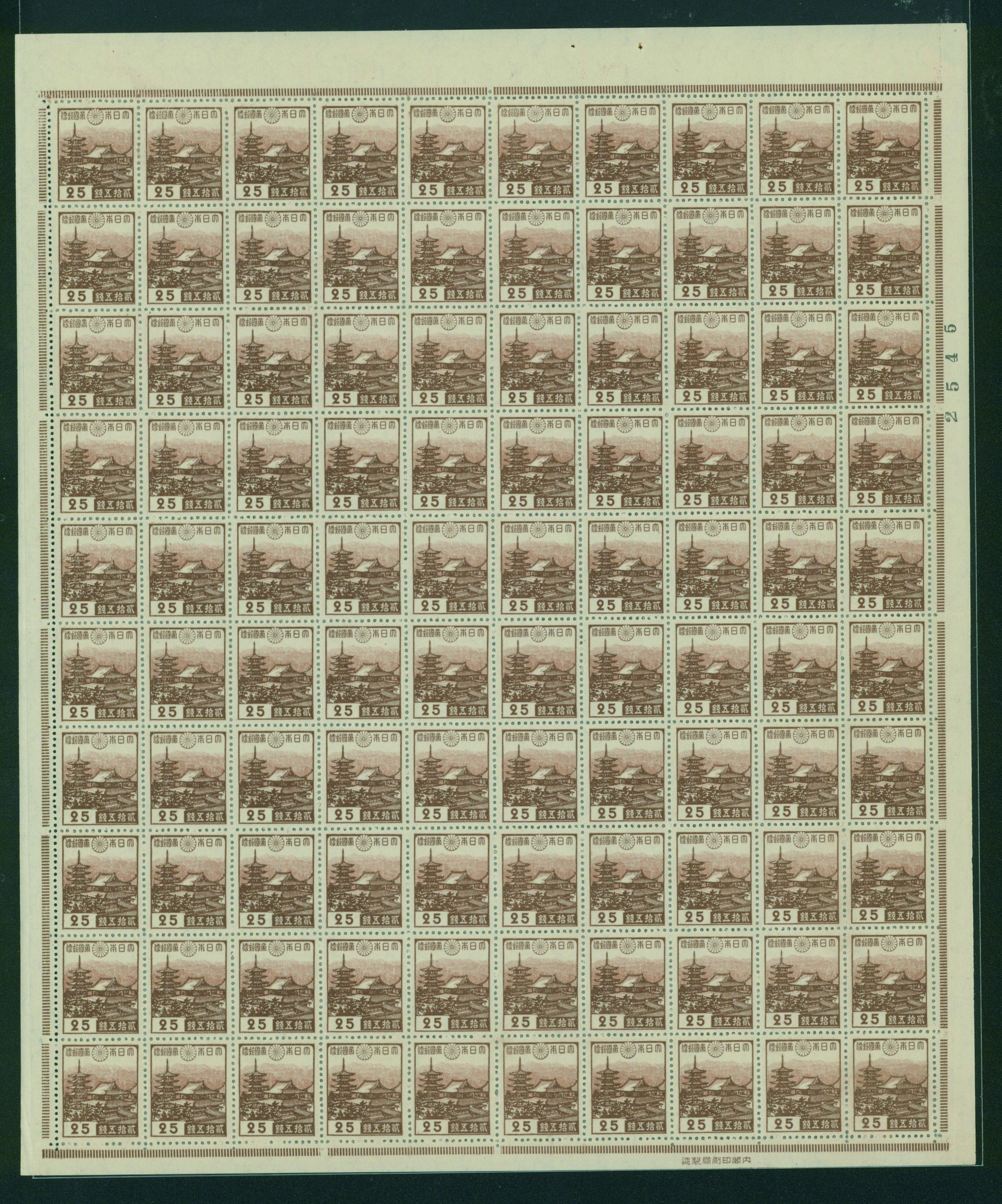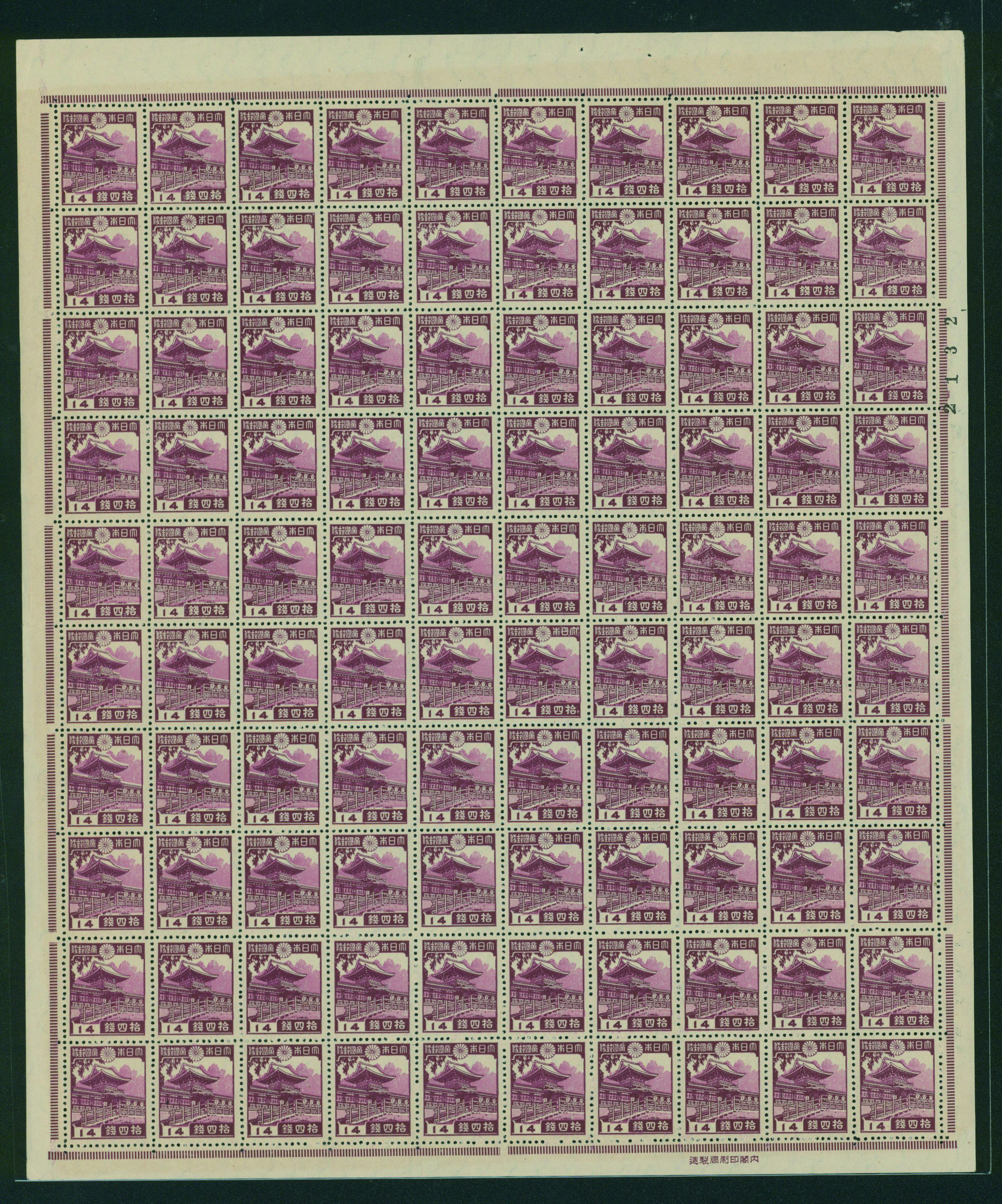 カテゴリー:1次・2次昭和(シートロット) wartime issue 3 Sen, 4 Sen, 6 Sen, 15 Sen, 40 Sen engraved mainly unused with some used,最低値: 3,000 円