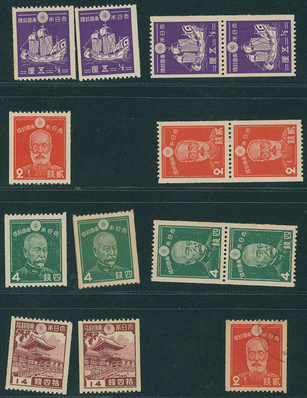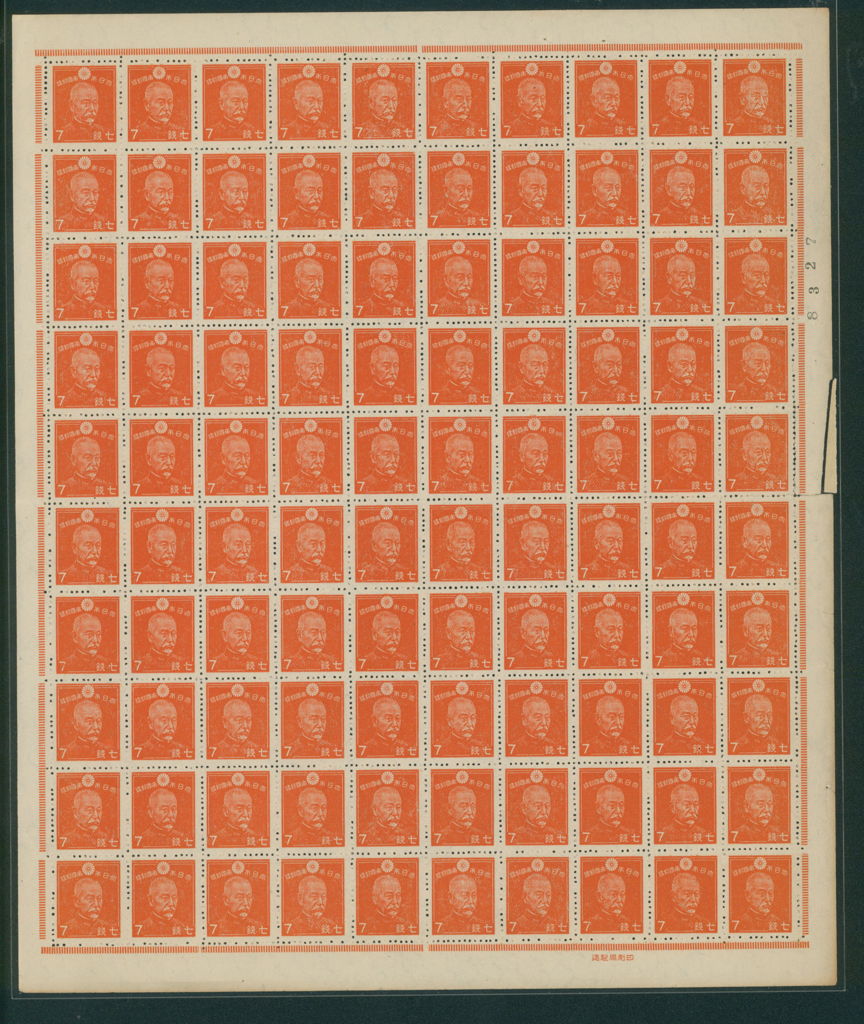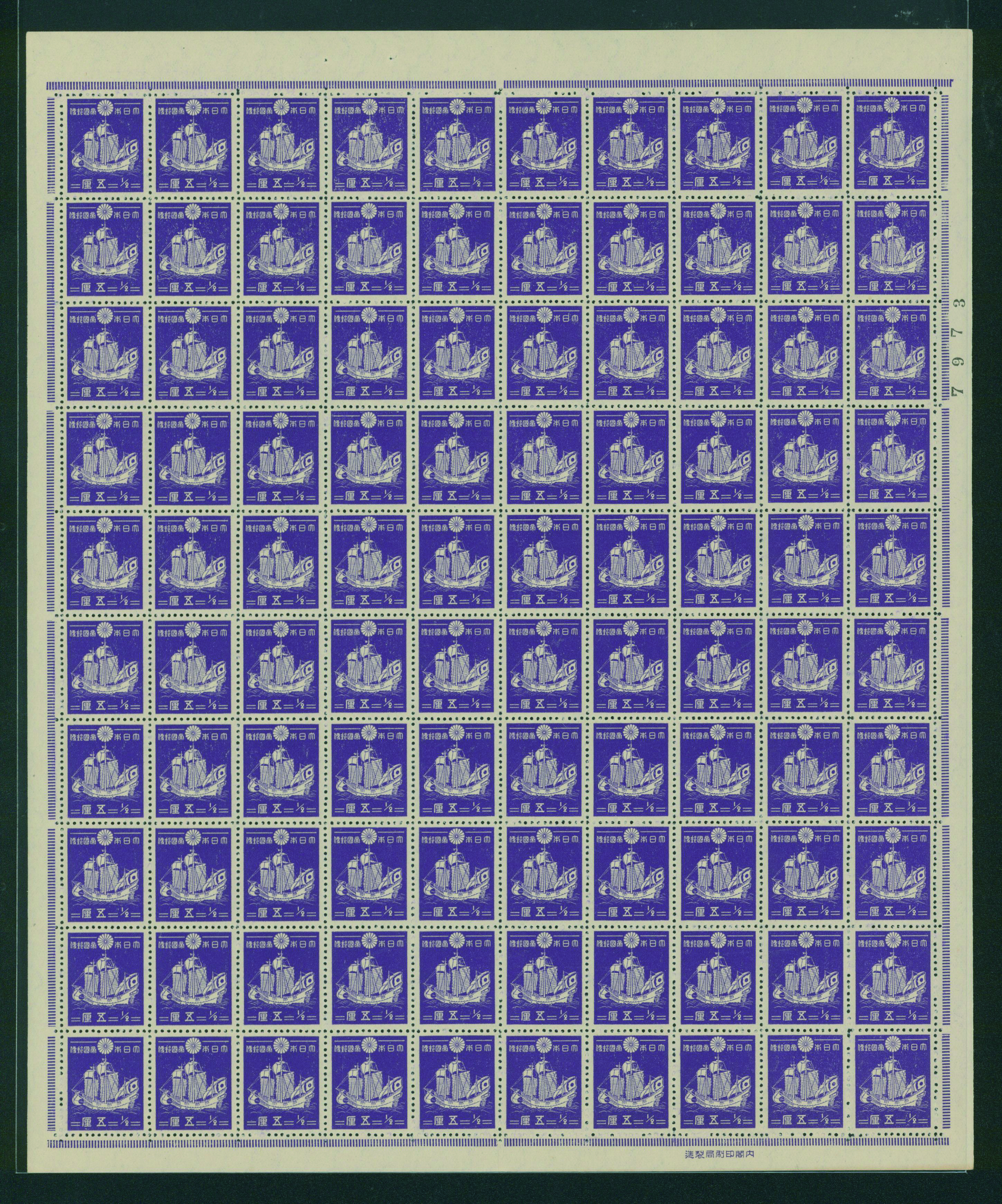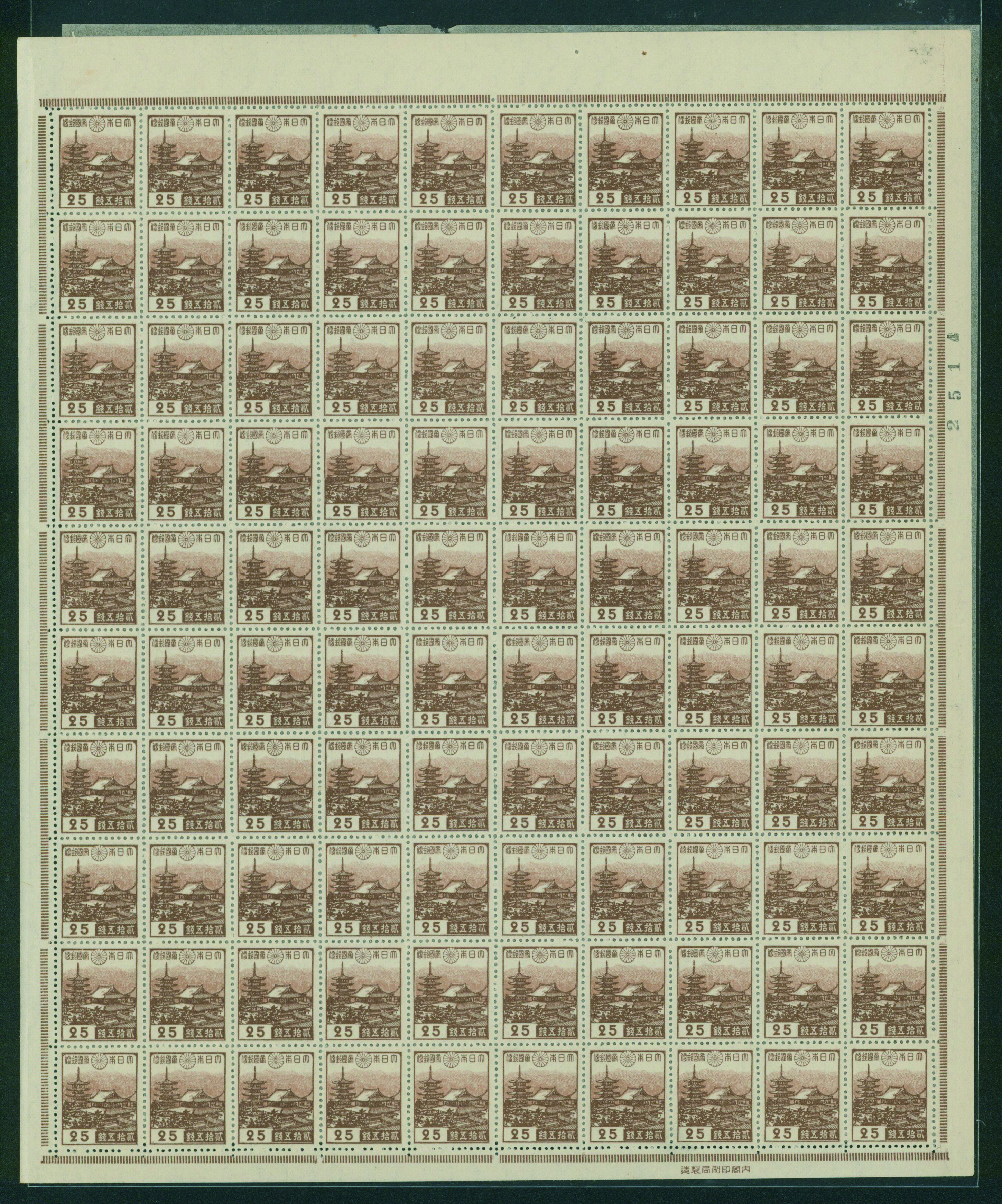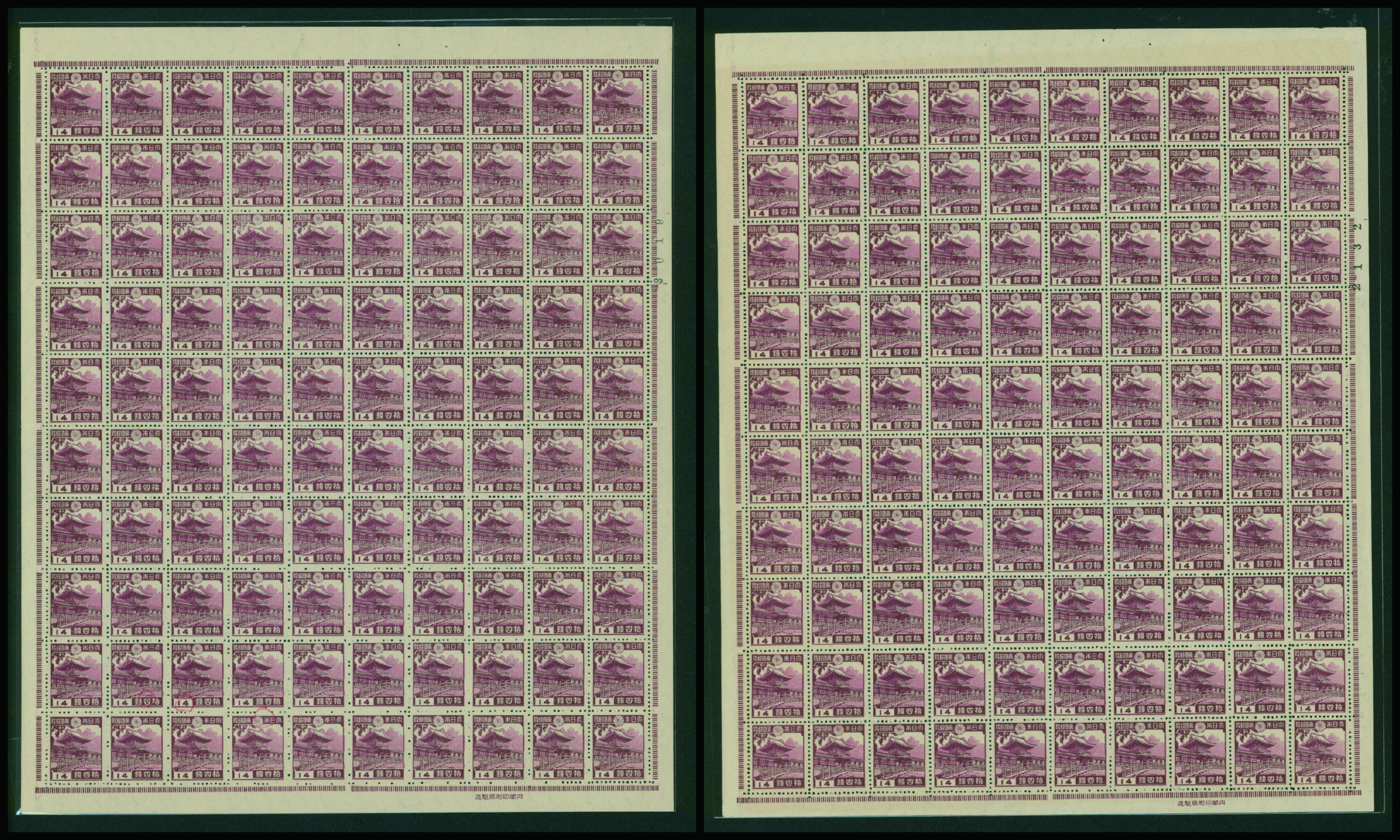 カテゴリー:1次・2次昭和(シートロット) wartime issue 3 Sen, 4 Sen, 6 Sen, 15 Sen, 40 Sen engraved mainly unused with some used,最低値: 3,000 円