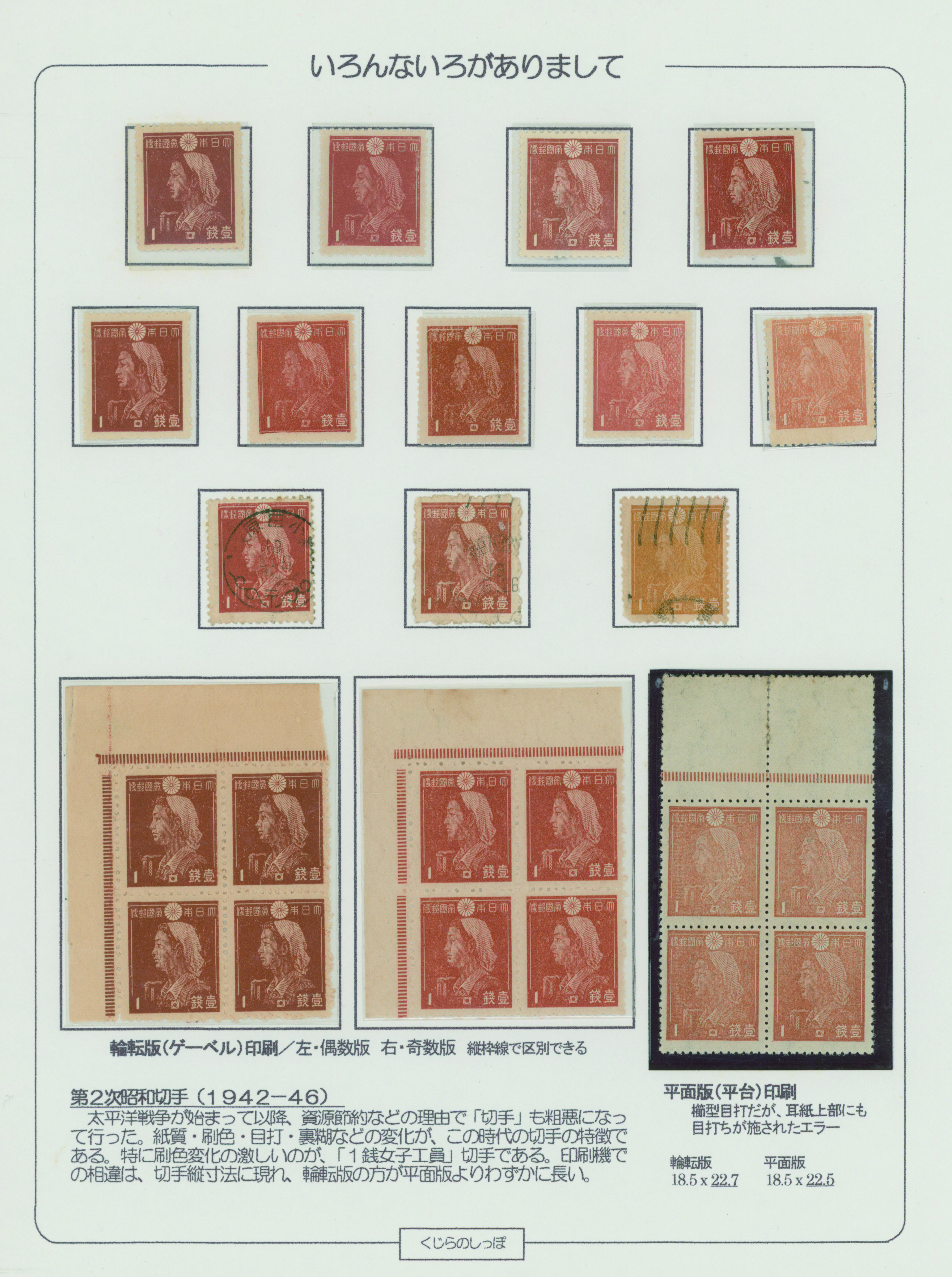 [Collection] シェードヴァラエティ 工員1銭 24枚 耳紙裁断ずれを含む 主に未使用 1ページ