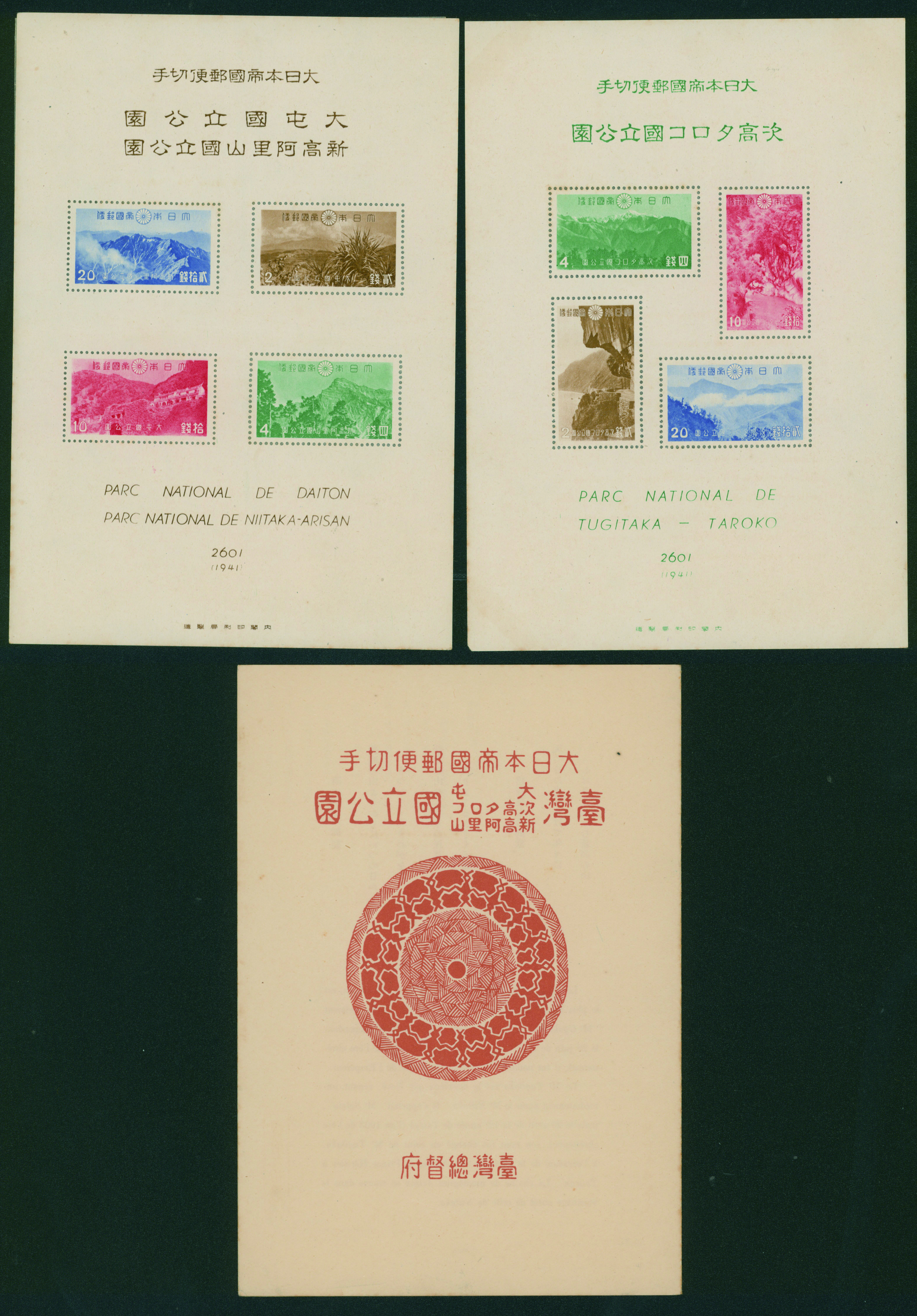 [未] 大屯・新高阿里山小型シート, 次高タロコ小型シート 未使用 ヒンジ跡なし 裏に間紙付着 カタログ価:56,000円 台湾総督府銘版のタトウ付き