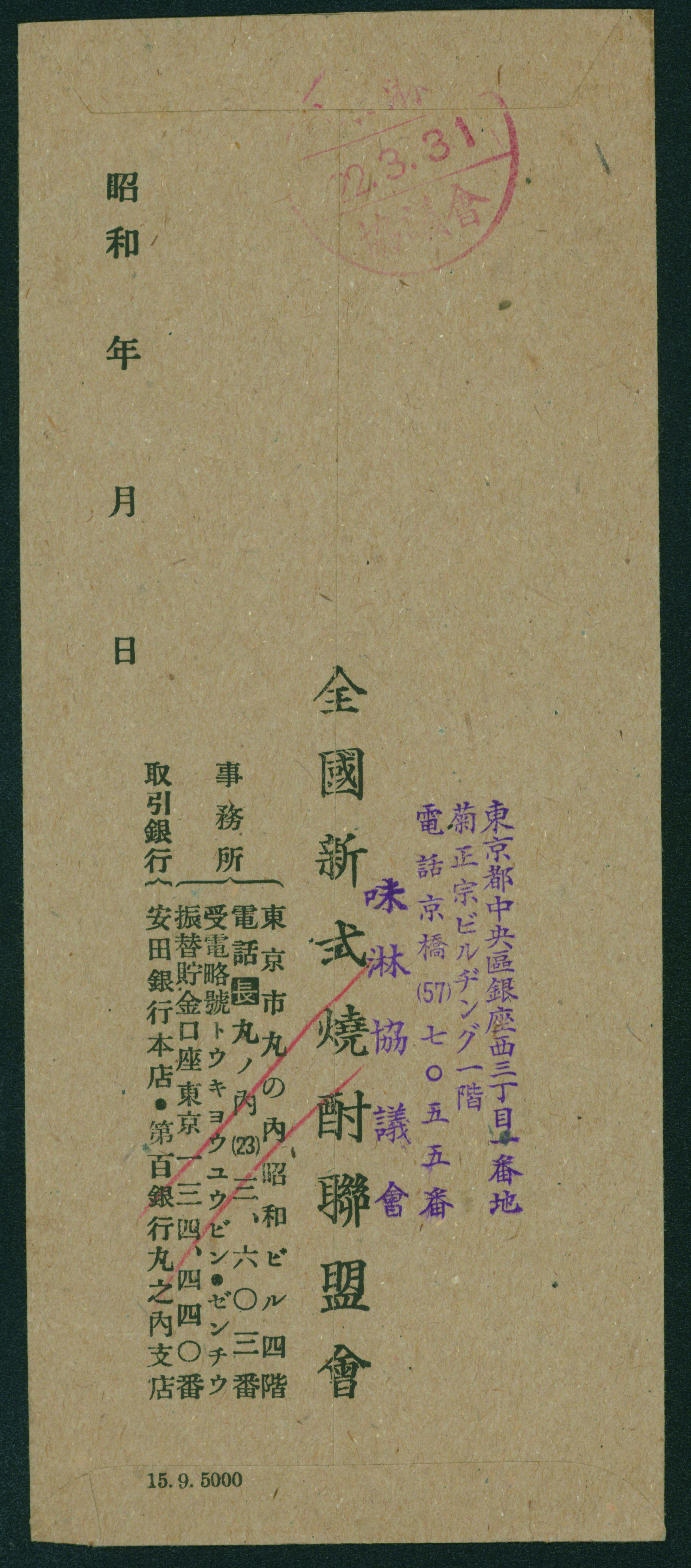 カテゴリー:1次・2次昭和(大ロット) , 6 covers 1937-1940 issue 10 Sen, 14 Sen, 2 Sen and etc cancelled by comb cds最低値: 7,000 円