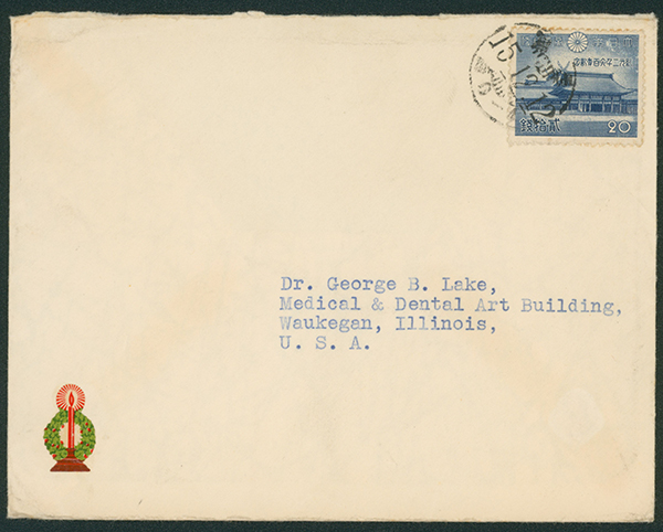 [使用例] 東郷4銭, 陽明門10銭 櫛型印 欧文櫛型印 カバー10通 書状外信書状