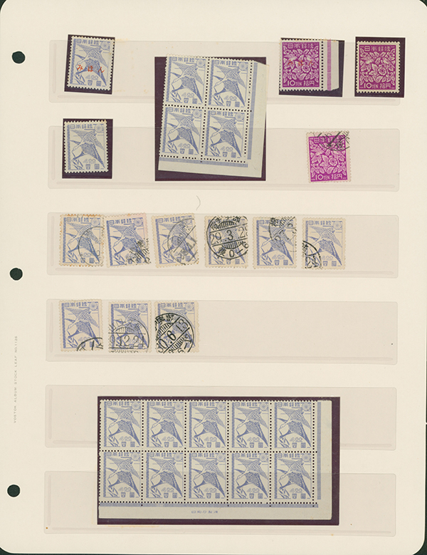 カテゴリー:3次昭和・新昭和(復興時期の切手)リーフ 1946-1948 issue 4 Yen full original gum, mainly unused with some used,