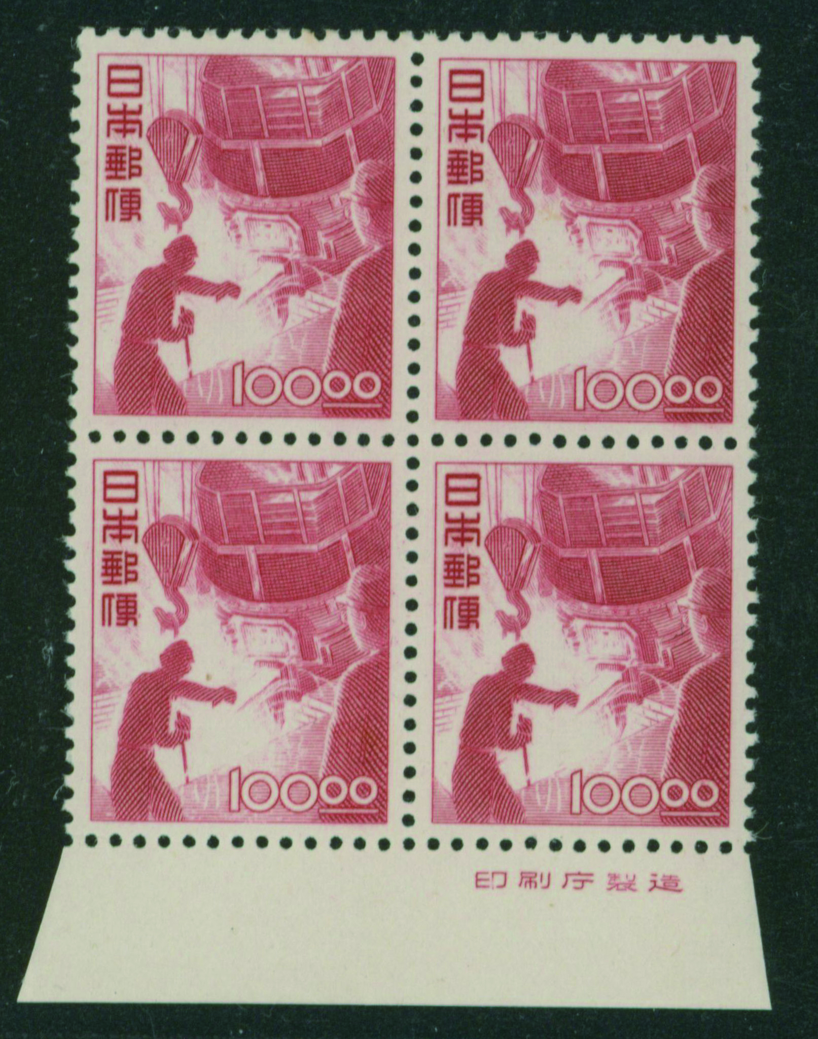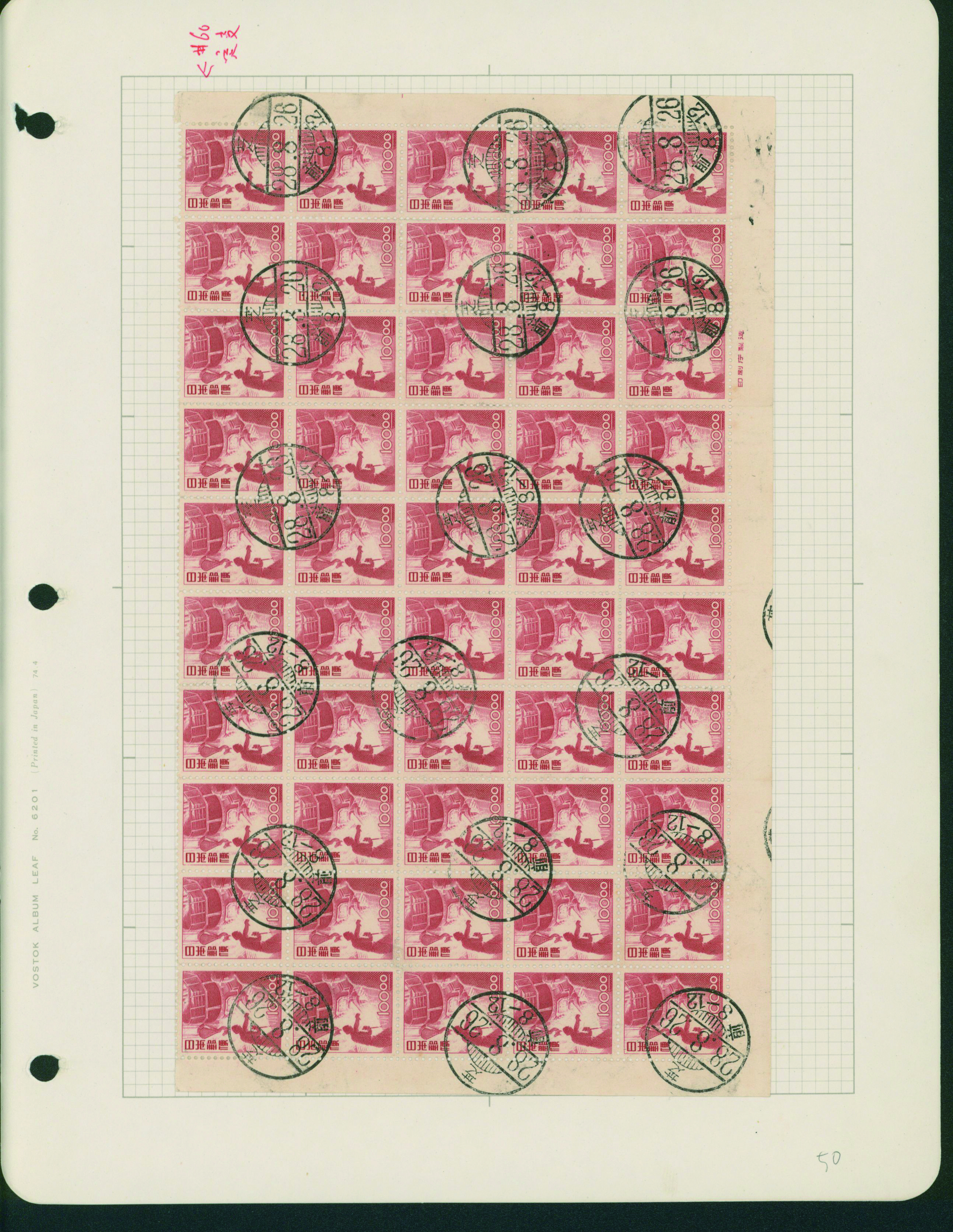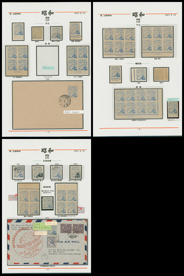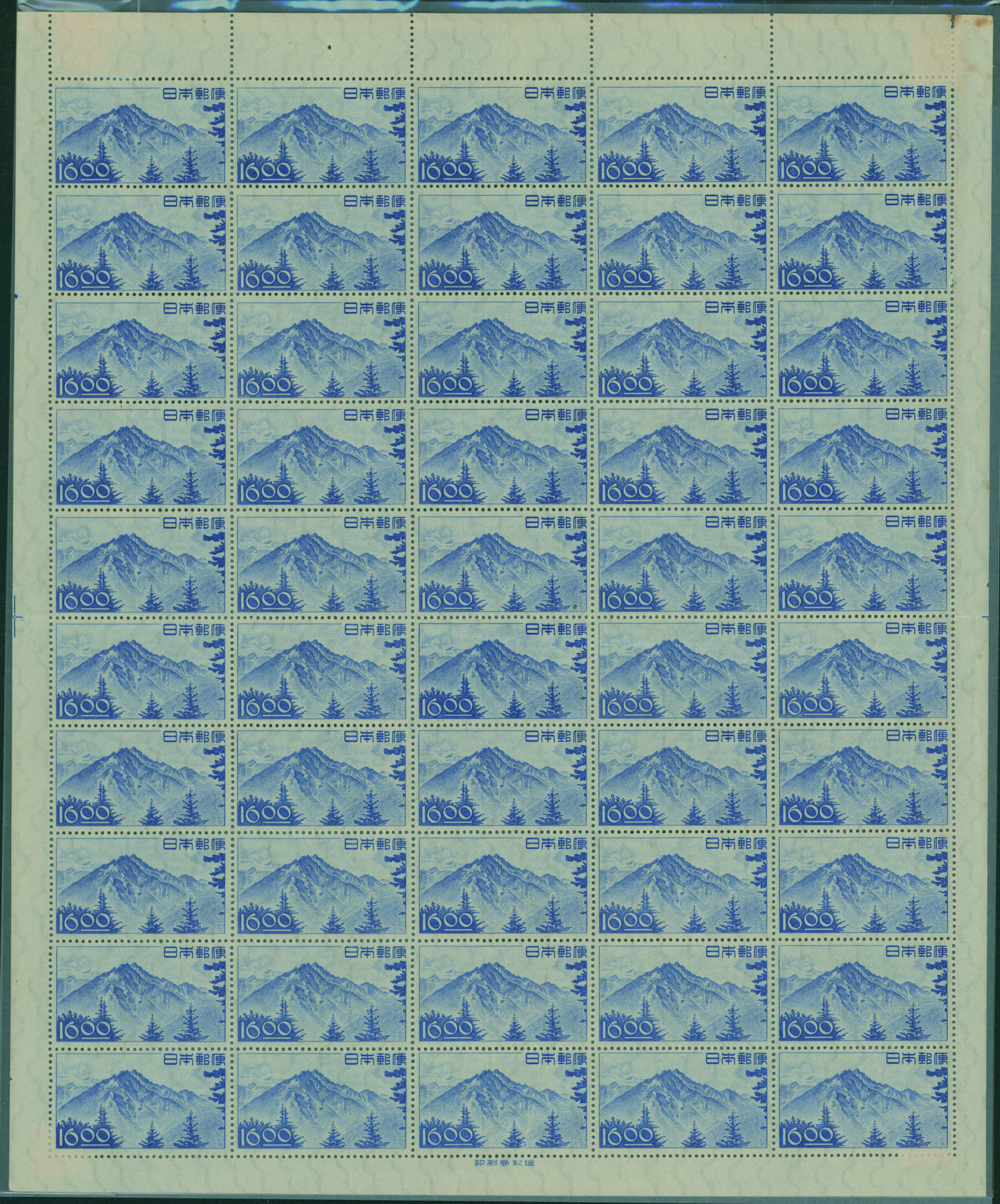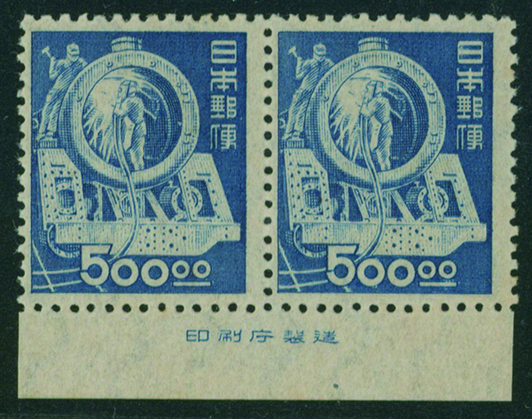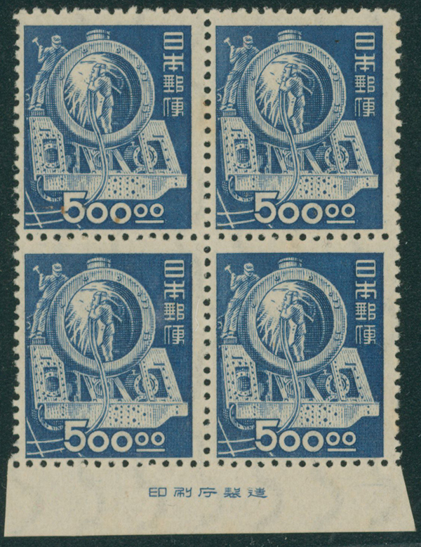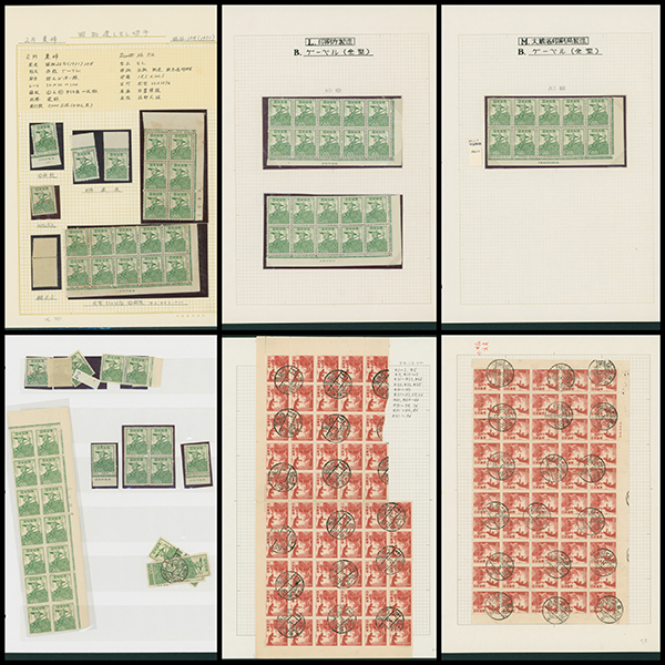 カテゴリー:産業図案・透かし無し(シート) 1948-1949 issue 16 Yen unused sheet(s), PF an extra horizontal blue line at the pos.50最低値: 10,000 円