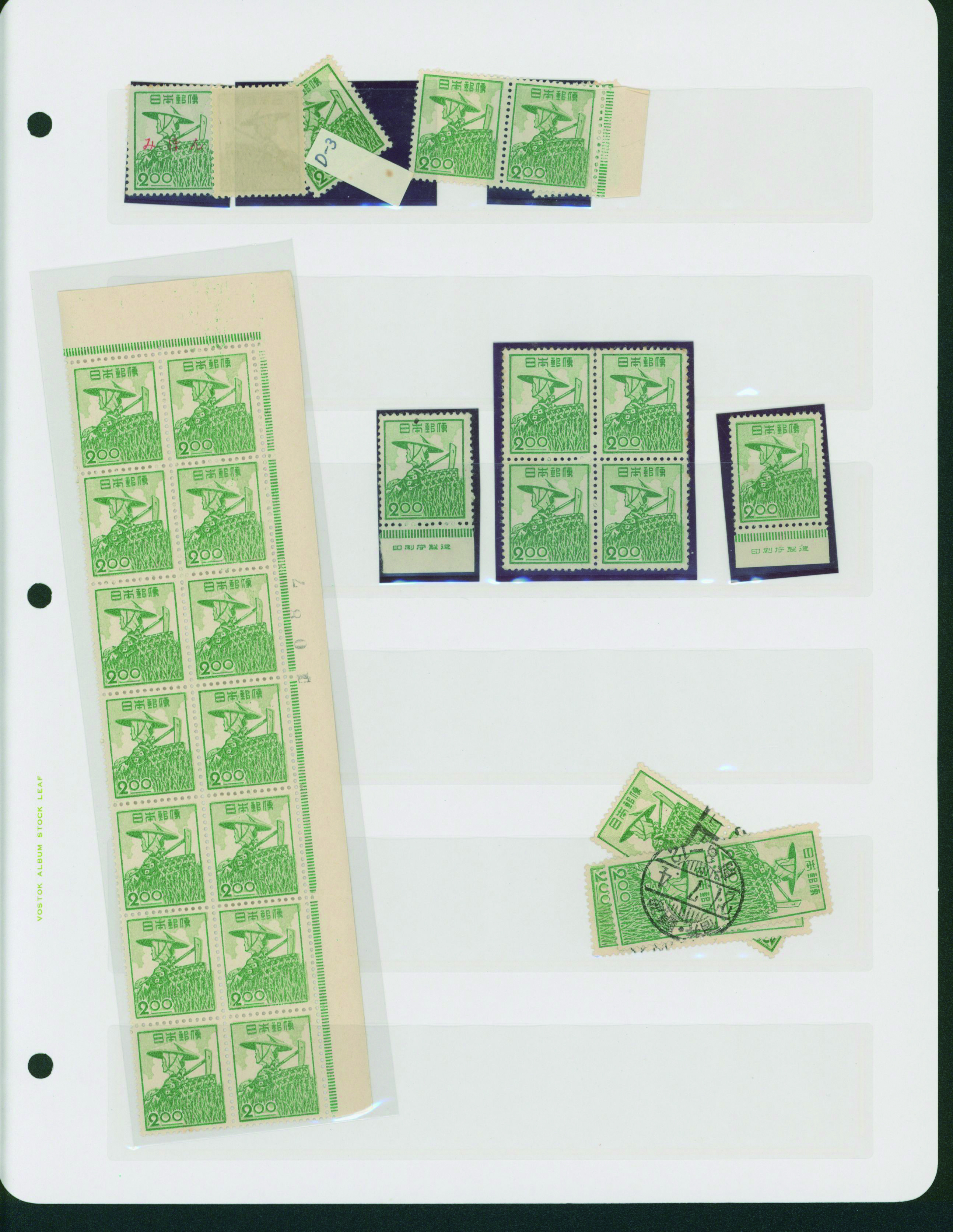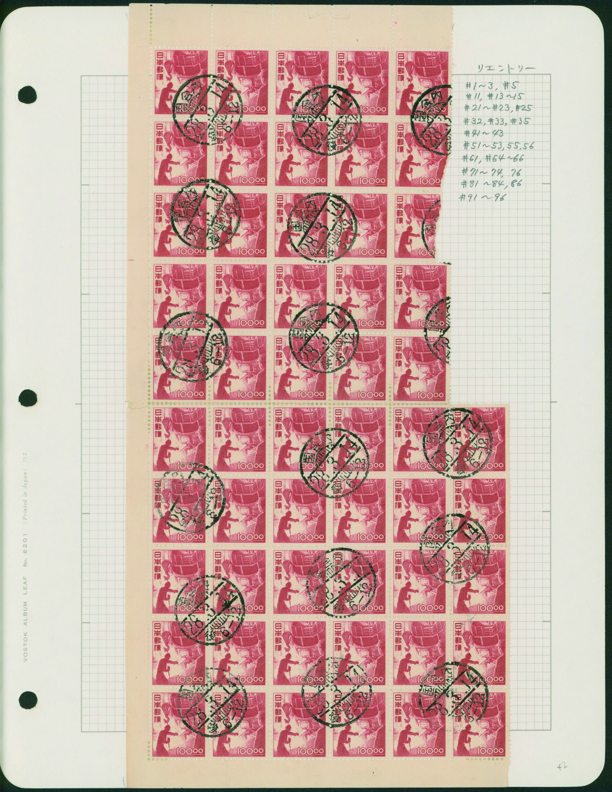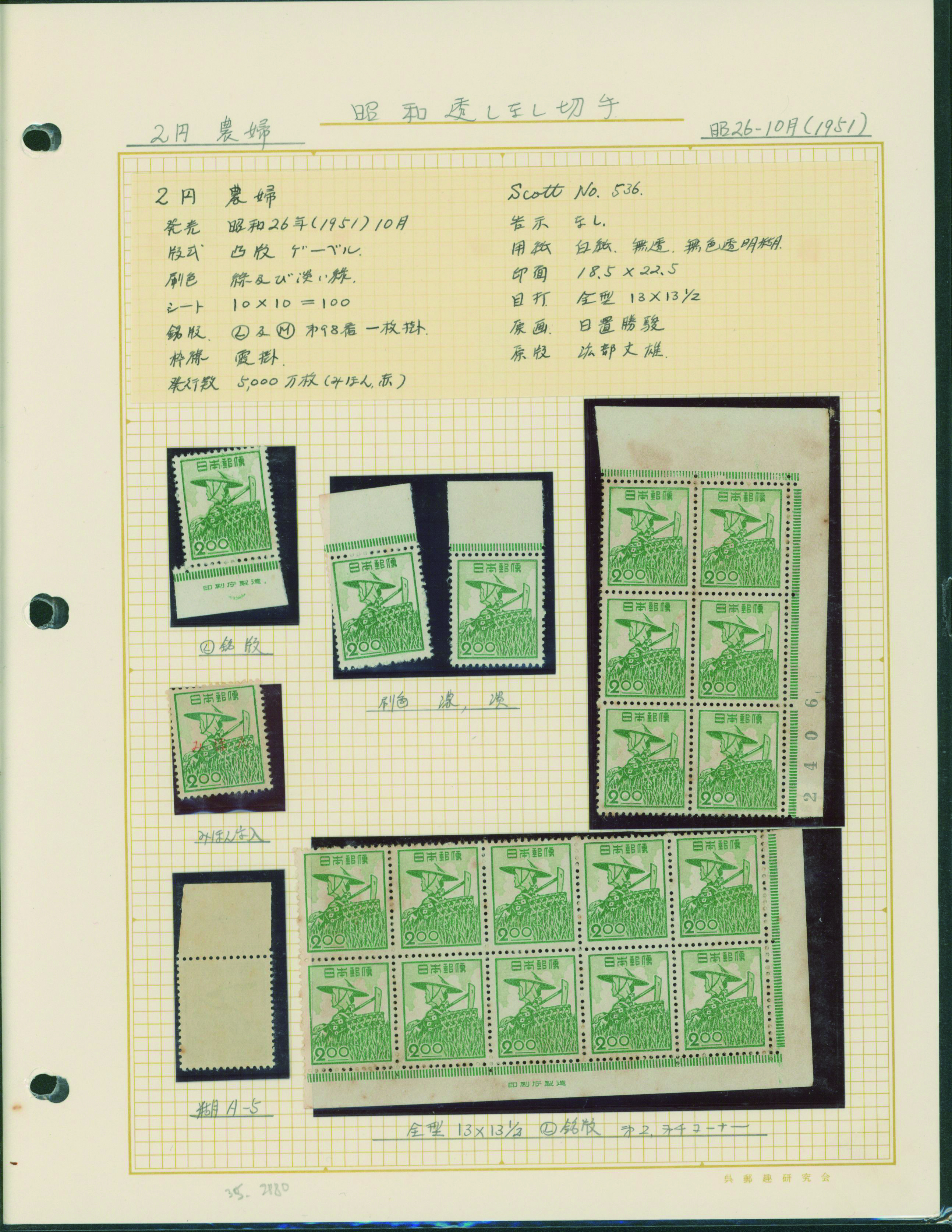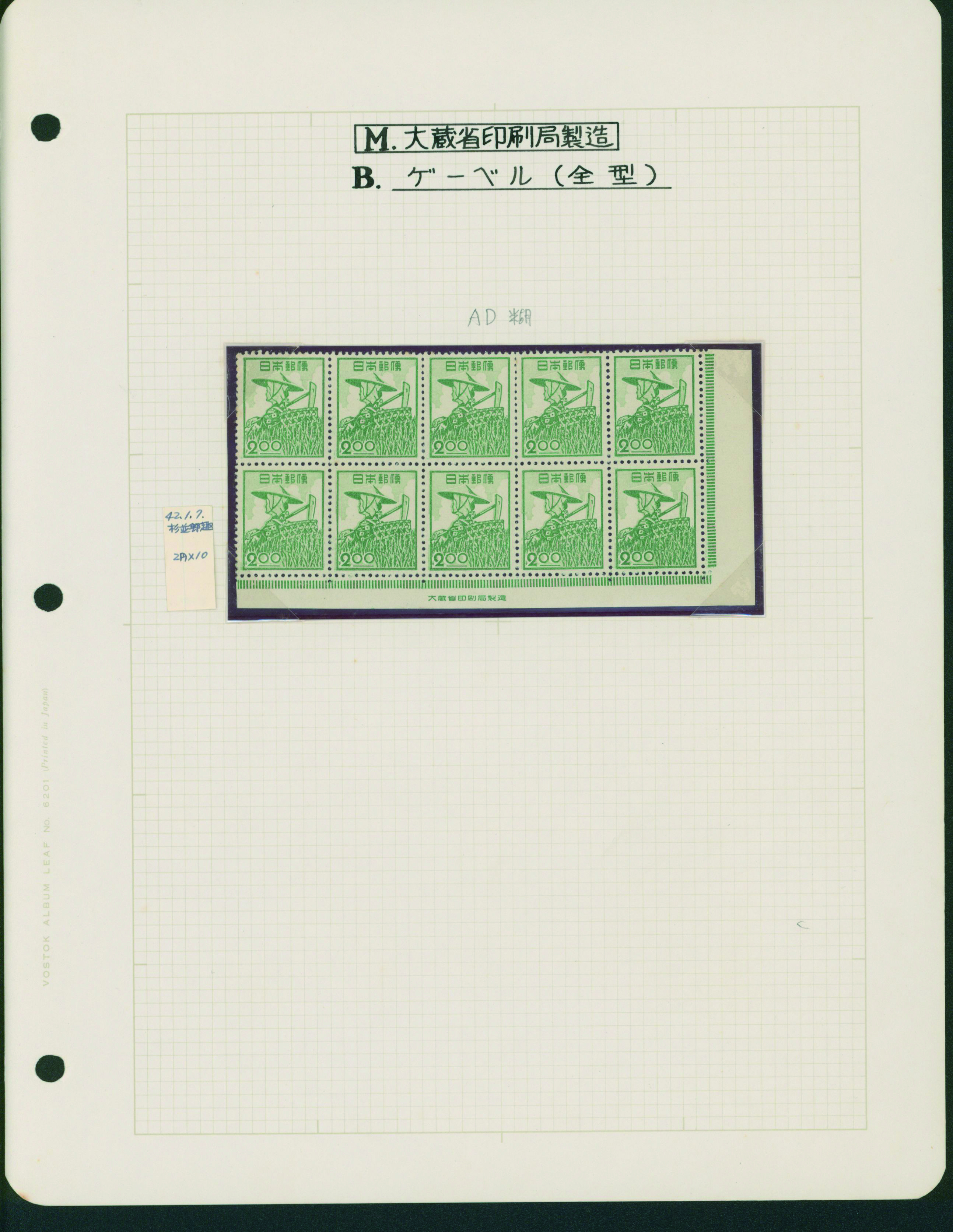 カテゴリー:産業図案・透かし無し(シート) 1948-1949 issue 16 Yen unused sheet(s), PF an extra horizontal blue line at the pos.50最低値: 10,000 円