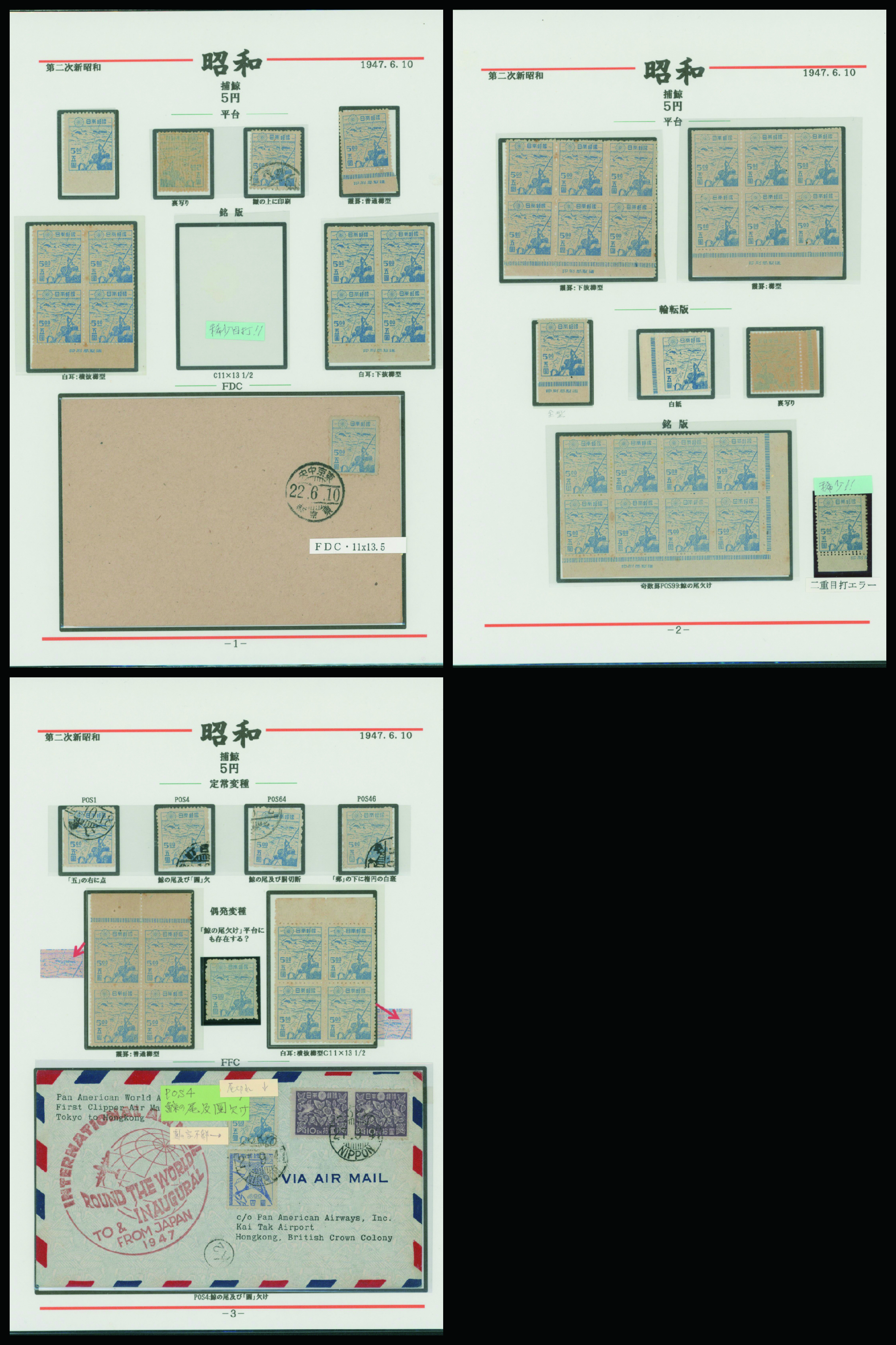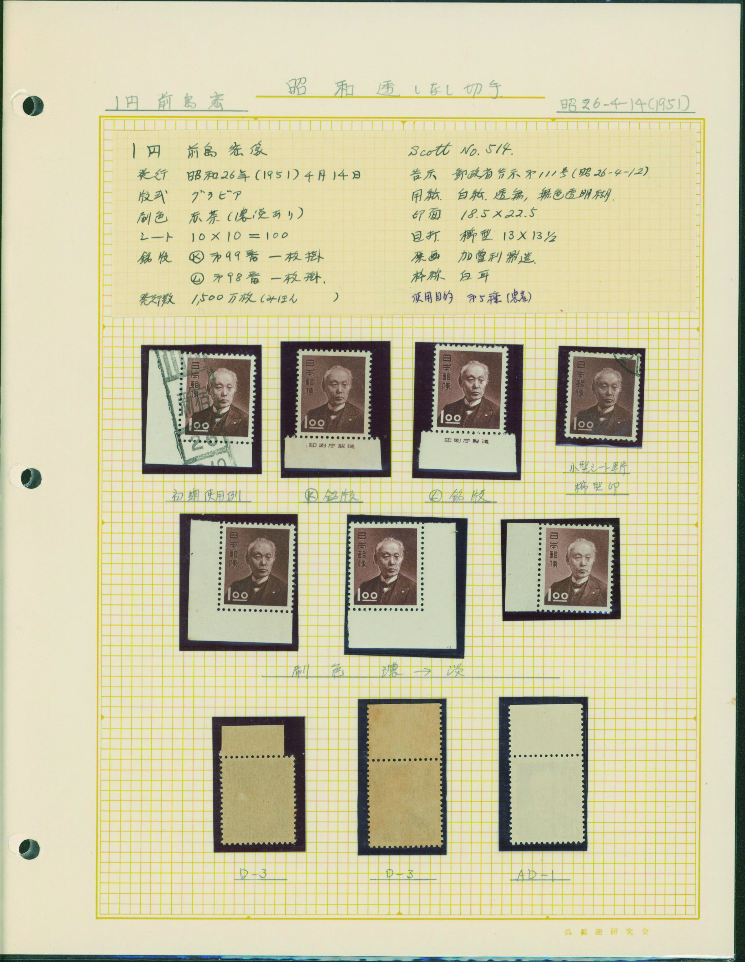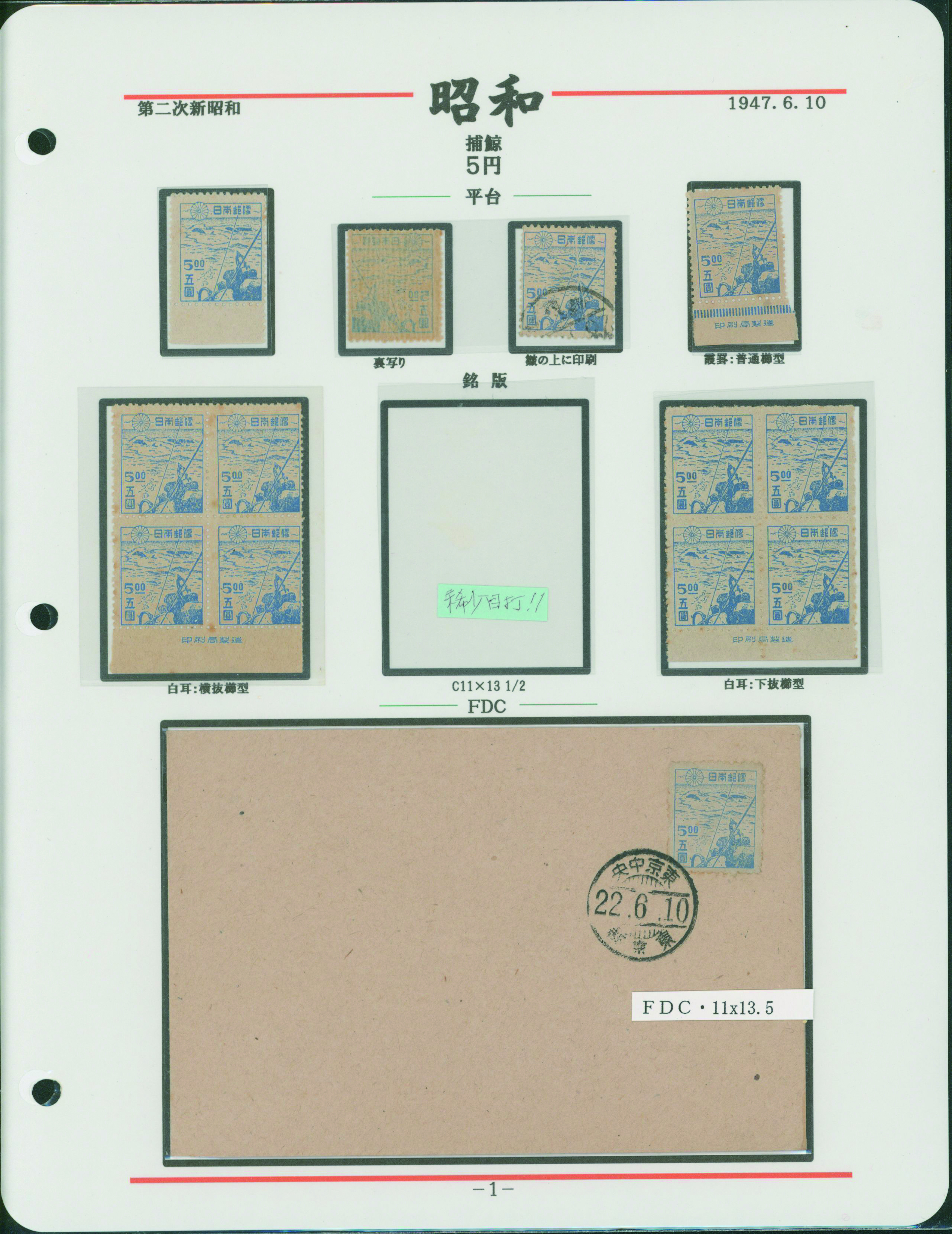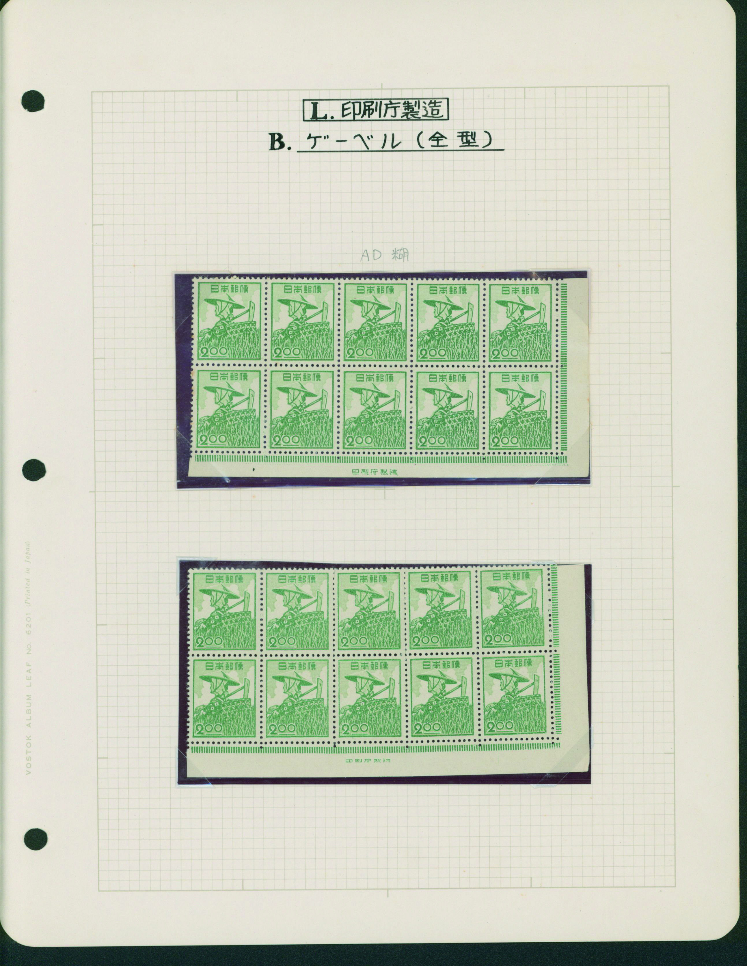 カテゴリー:産業図案・透かし無し(シート) 1948-1949 issue 16 Yen unused sheet(s), PF an extra horizontal blue line at the pos.50最低値: 10,000 円
