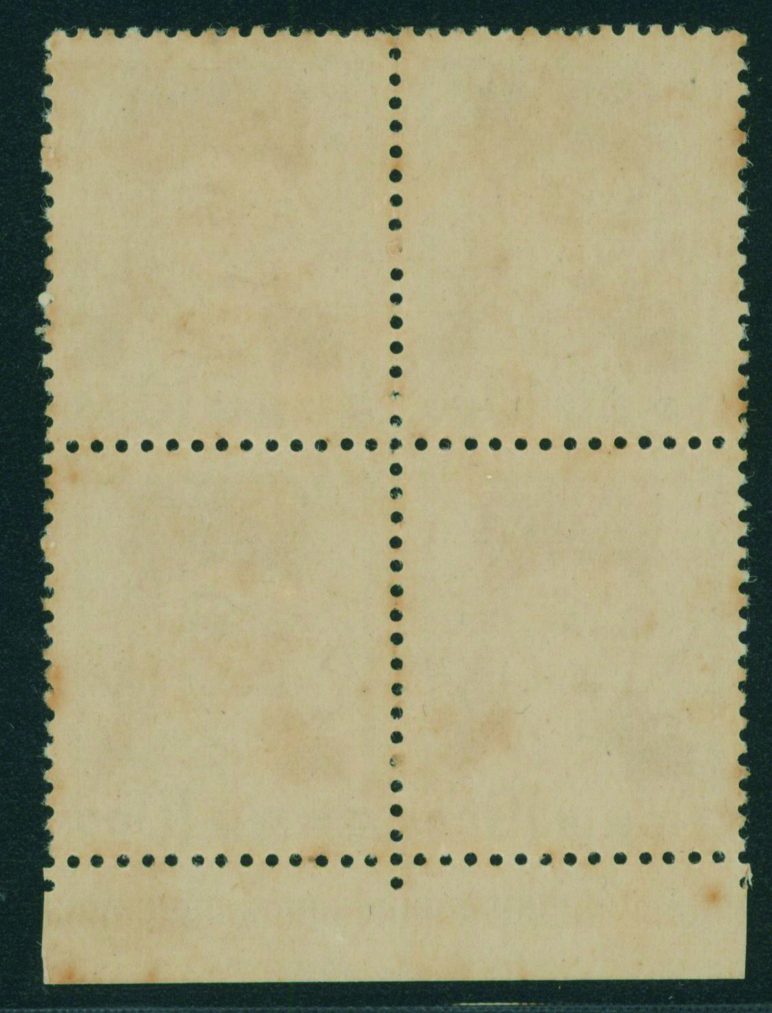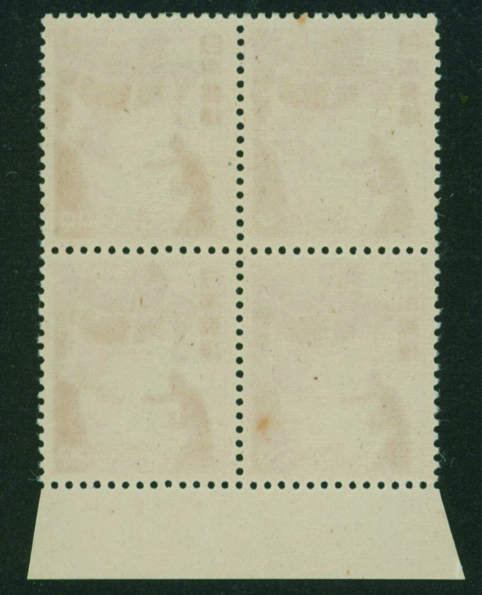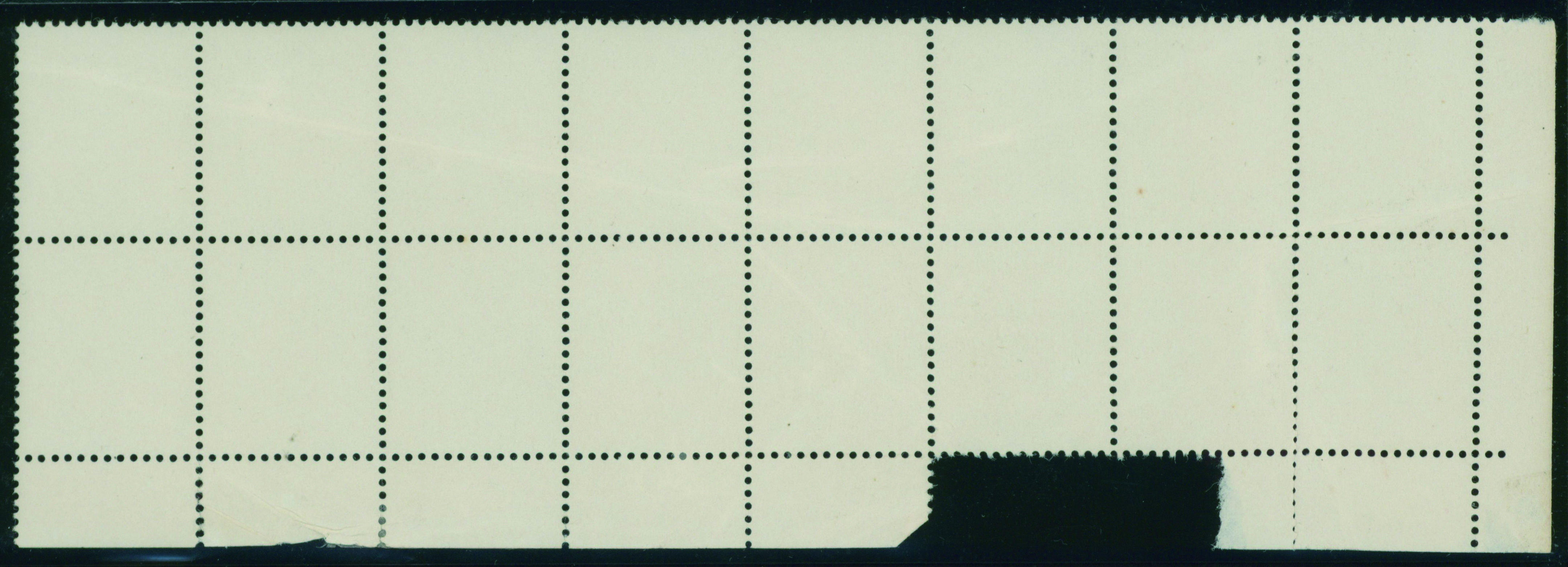 [未] 無印刷切手第4角16枚ブロック 未使用 裏糊あり、目打:連続2つ穴 耳紙一部欠損、シワ