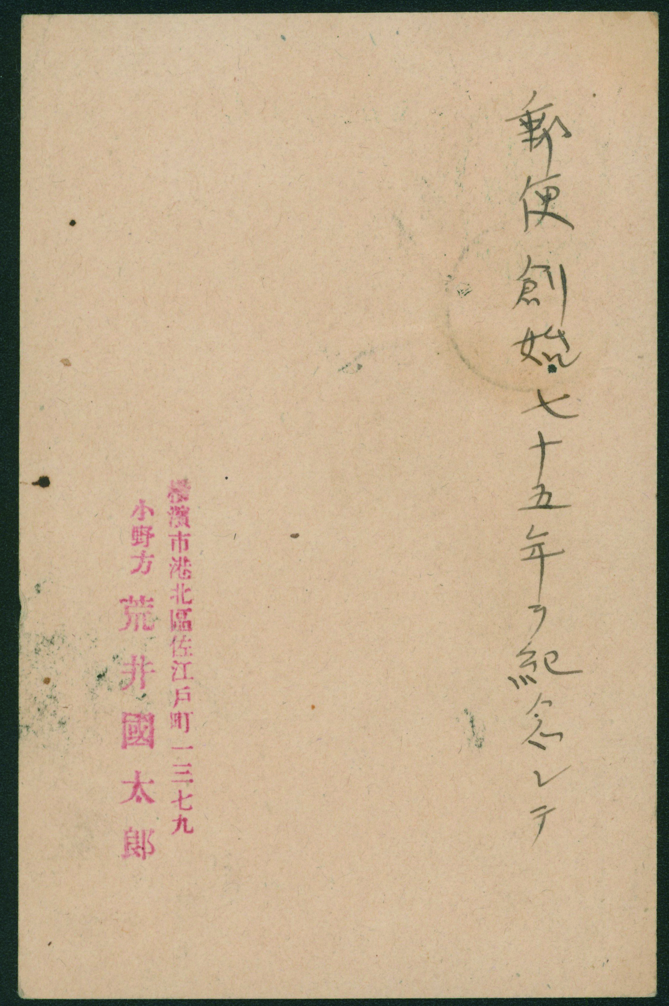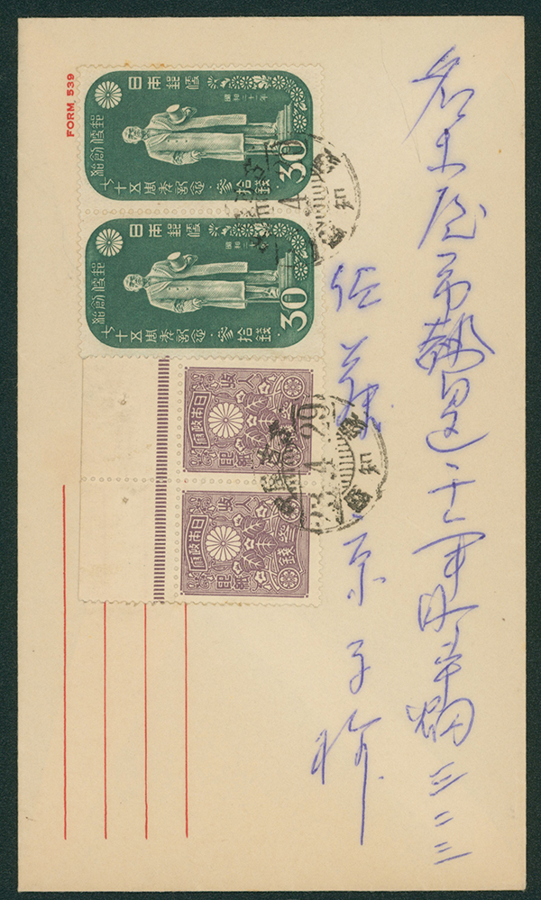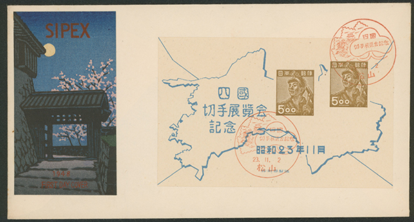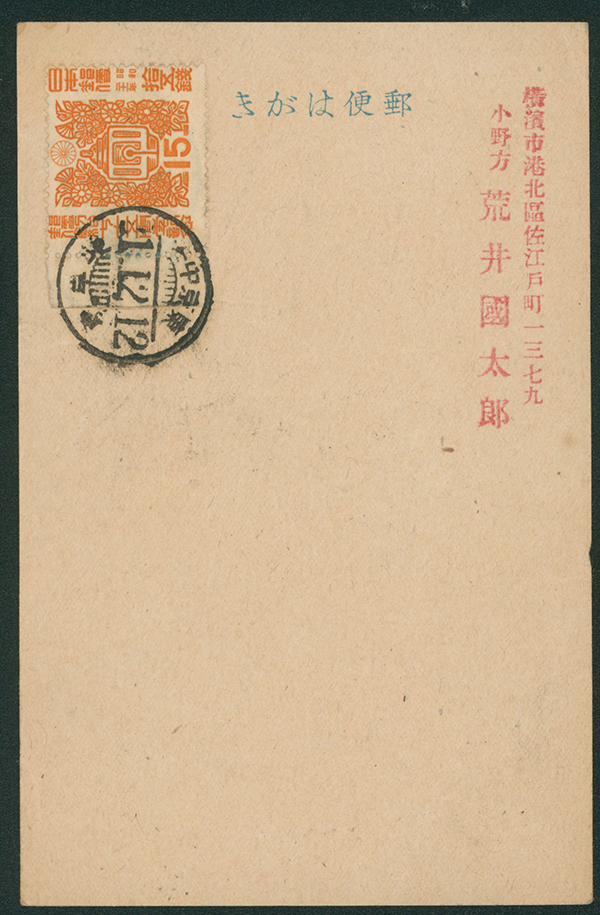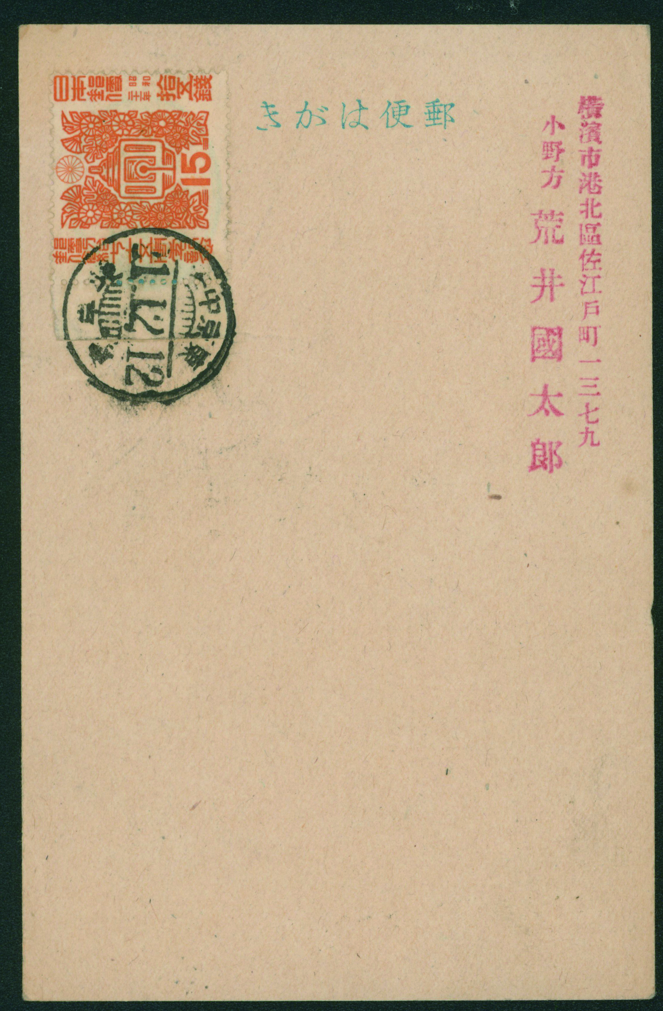 カテゴリー:戦後記念(郵便創始75年)カバー Internal Postalcard 1946 issue 5 Sen, 1946 Commemorative stamp 15 Sen, 1946-1948 issue 30 Sen rouletted cancelled by comb cds 1947-09-23 Kawashima(Kagawa)最低値: 5,000 円