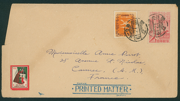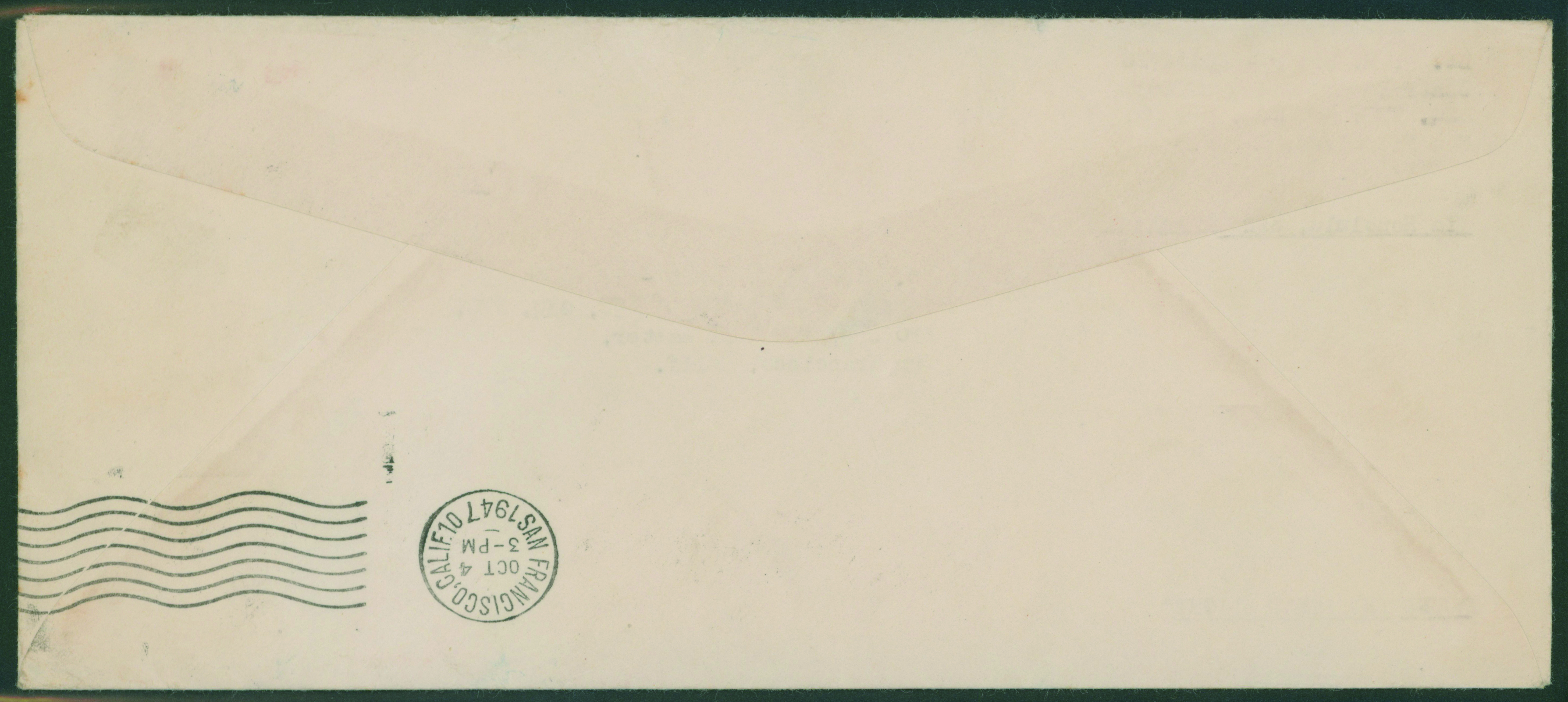 カテゴリー:戦後記念(郵便創始75年)カバー 1946 Commemorative stamp 1 Yen, 1947 Commemorative stamp 1.2 Yen, 4 Yen, , 1946-1947 issue 30 Sen imperf., 1946-1948 issue 10 Yen stained, cancelled by roman letter comb cds 1947-10-02 TOKYO to USA arrival :SAN FRANCISCO,10/4最低値: 3,000 円