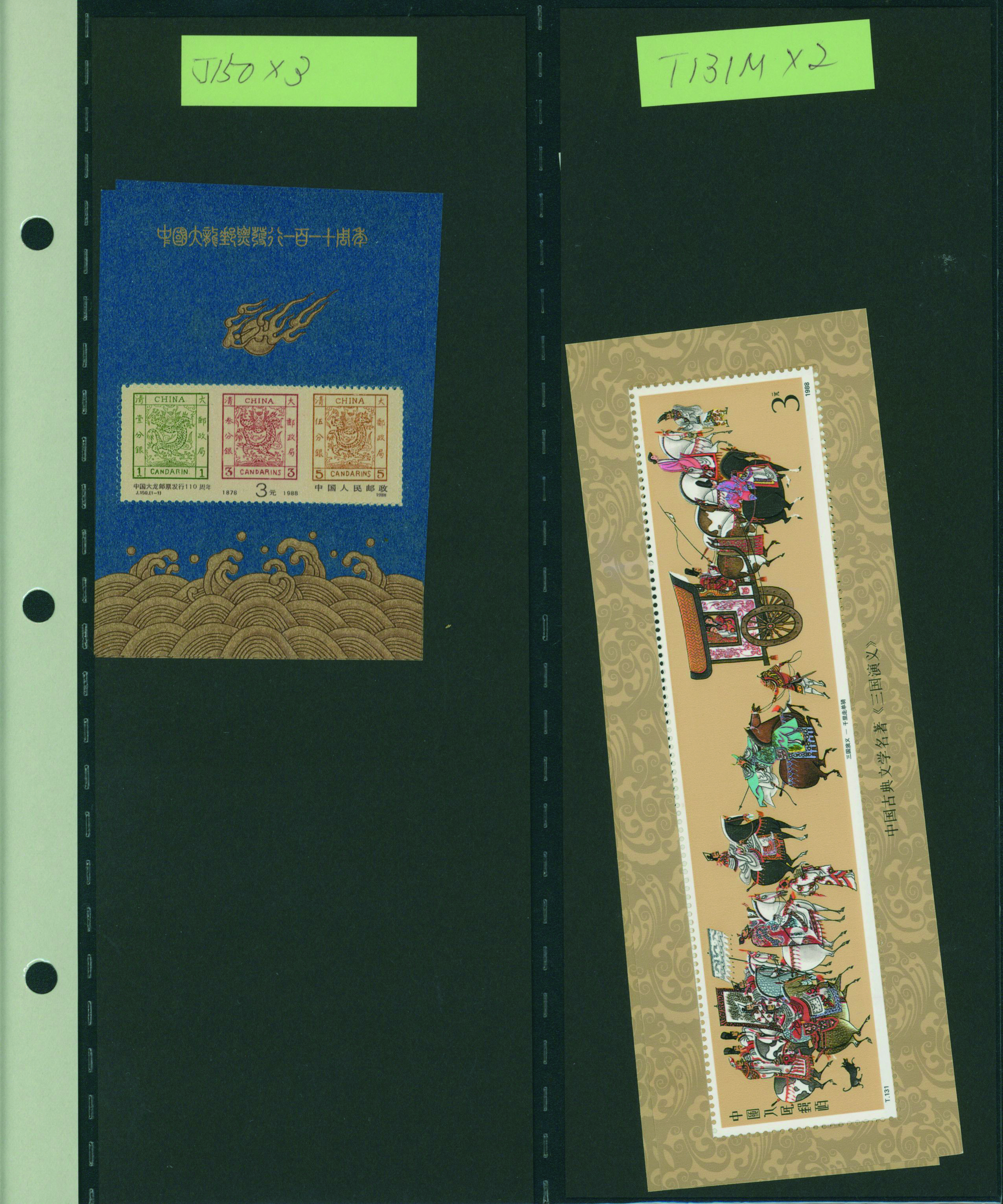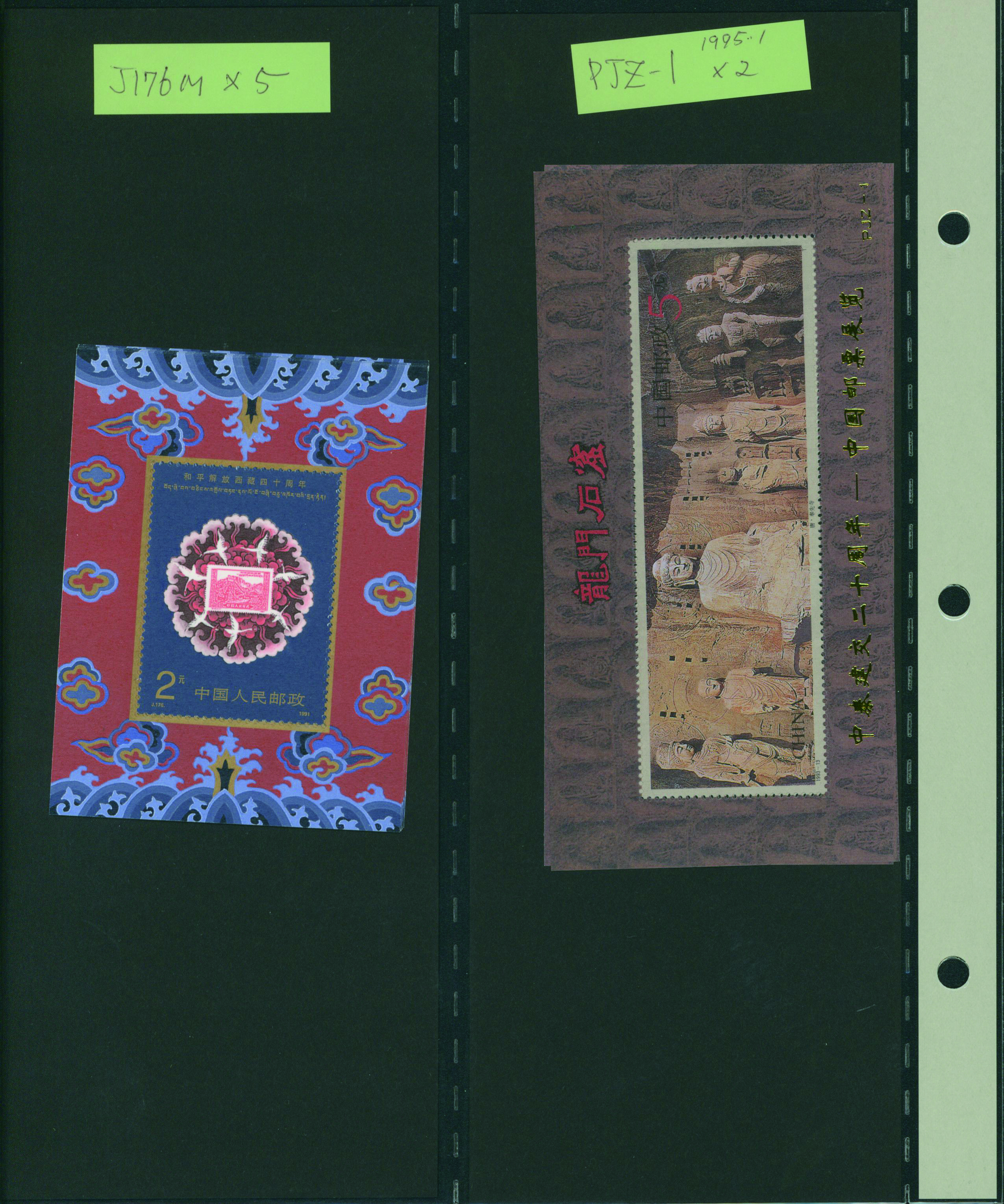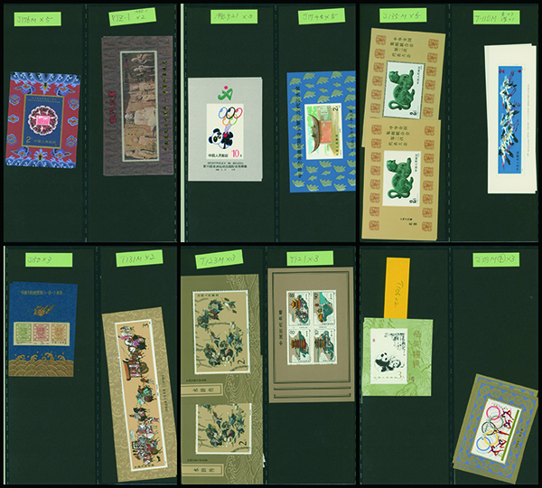 [未] [済] 中国 1982-91 小型シートのセレクション 重複あり 1984年〜1988年に発行されたものが多く、J85,T123(3点),T131(3点)などを含む。使用済を1点含む 未使用 済 切手50シート