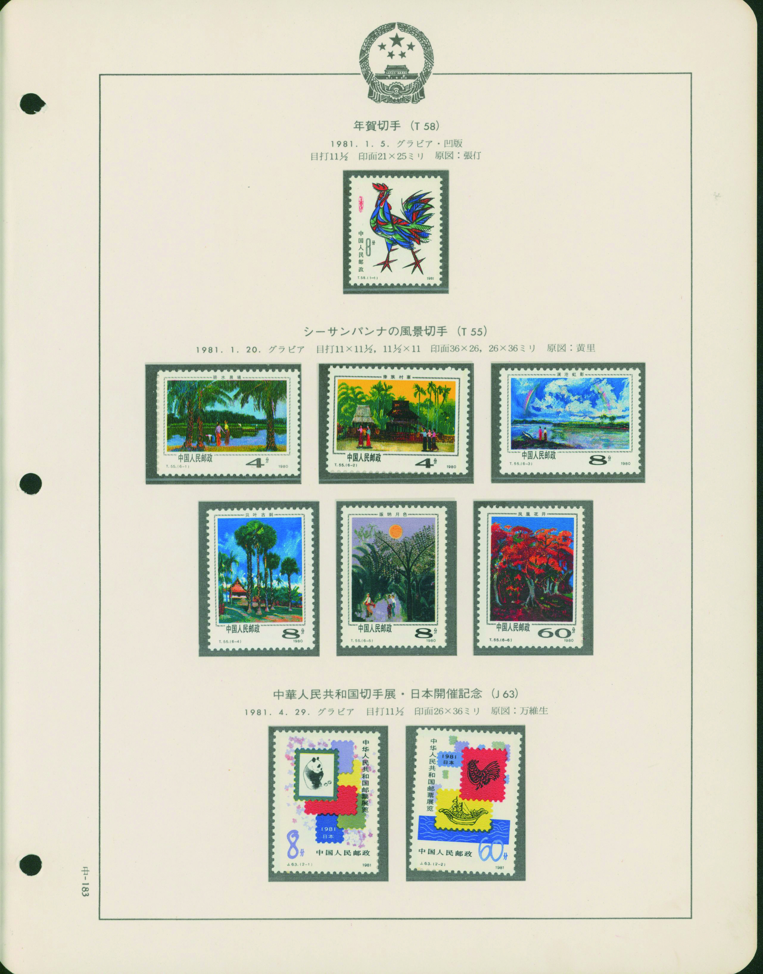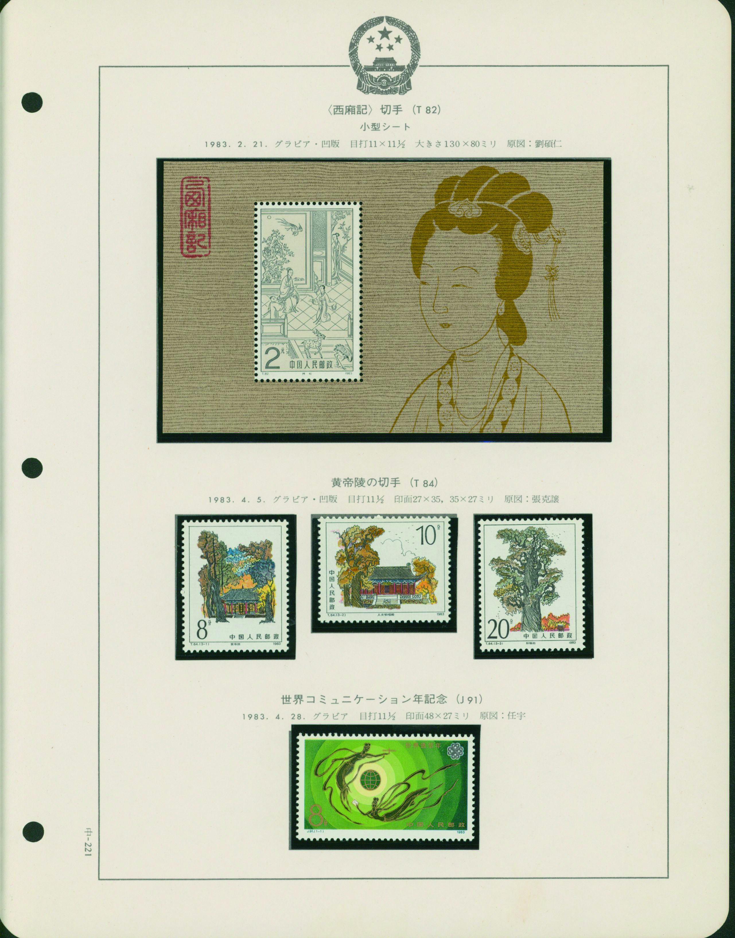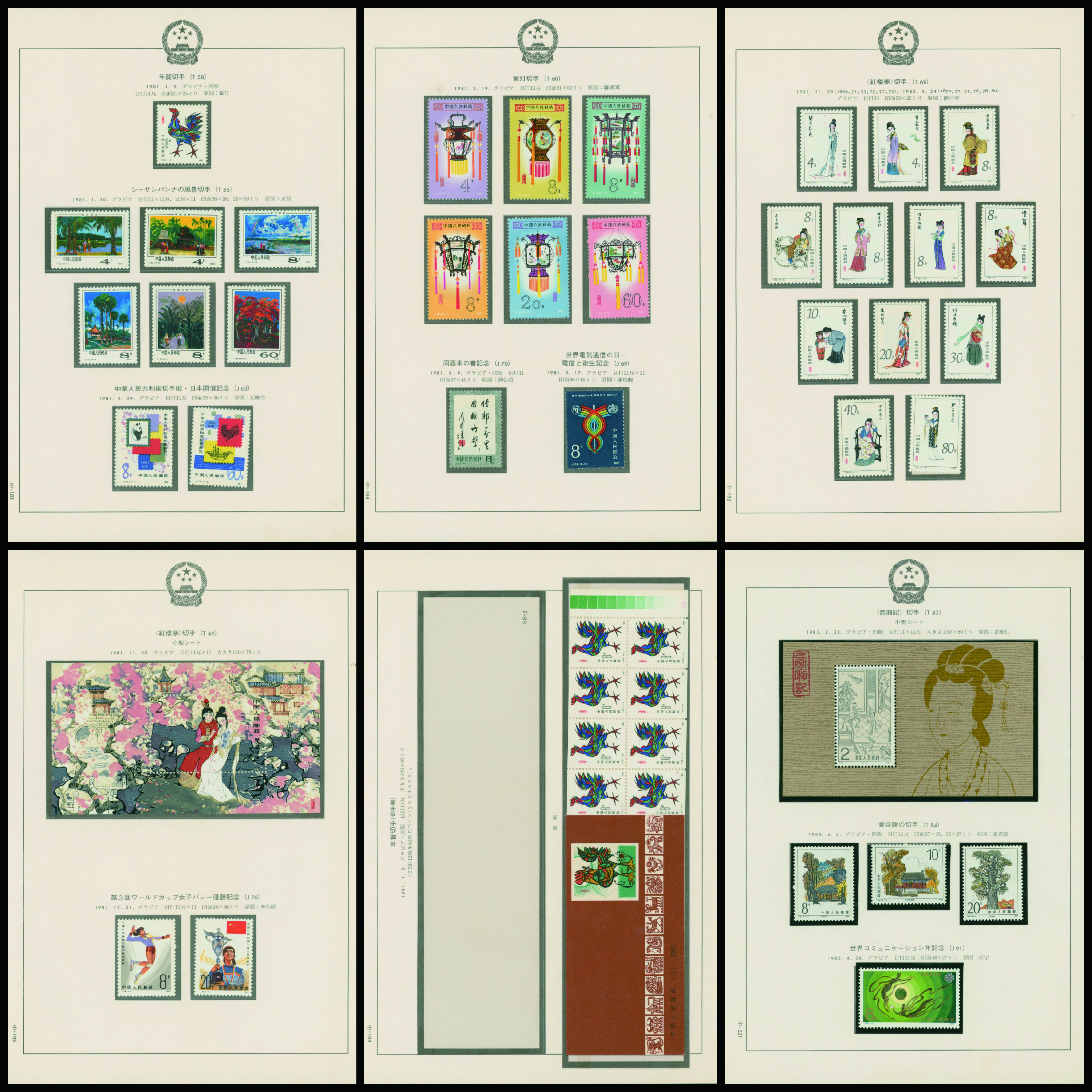 カテゴリー:中国 カタログコレクション China 1981-83 A collection is organized into leaves 43 pages, 2 covers Includes souvenir sheet, stamp booklet, and commemorative covers. unused (中華人民共和国|中国)最低値: 3,000 円
