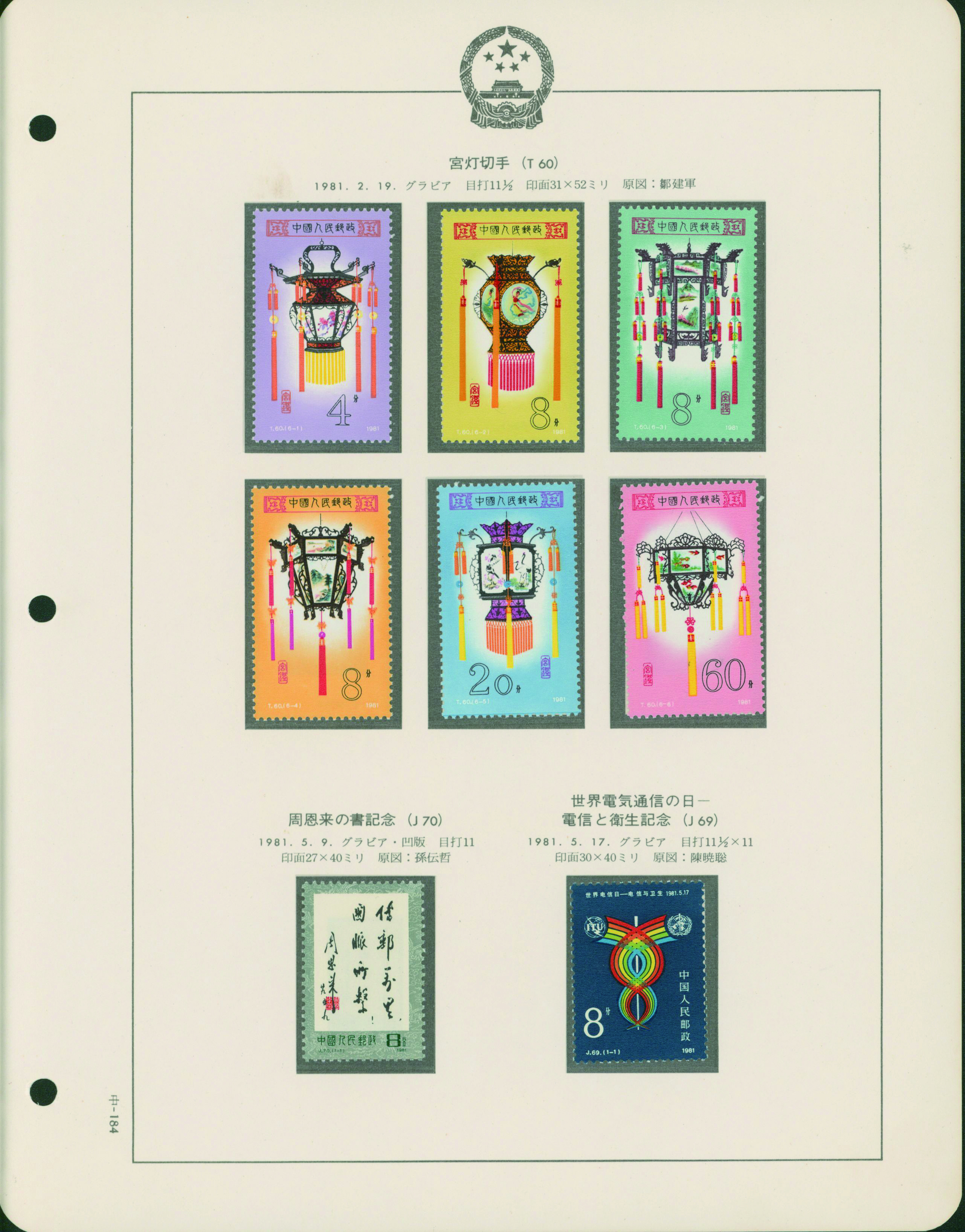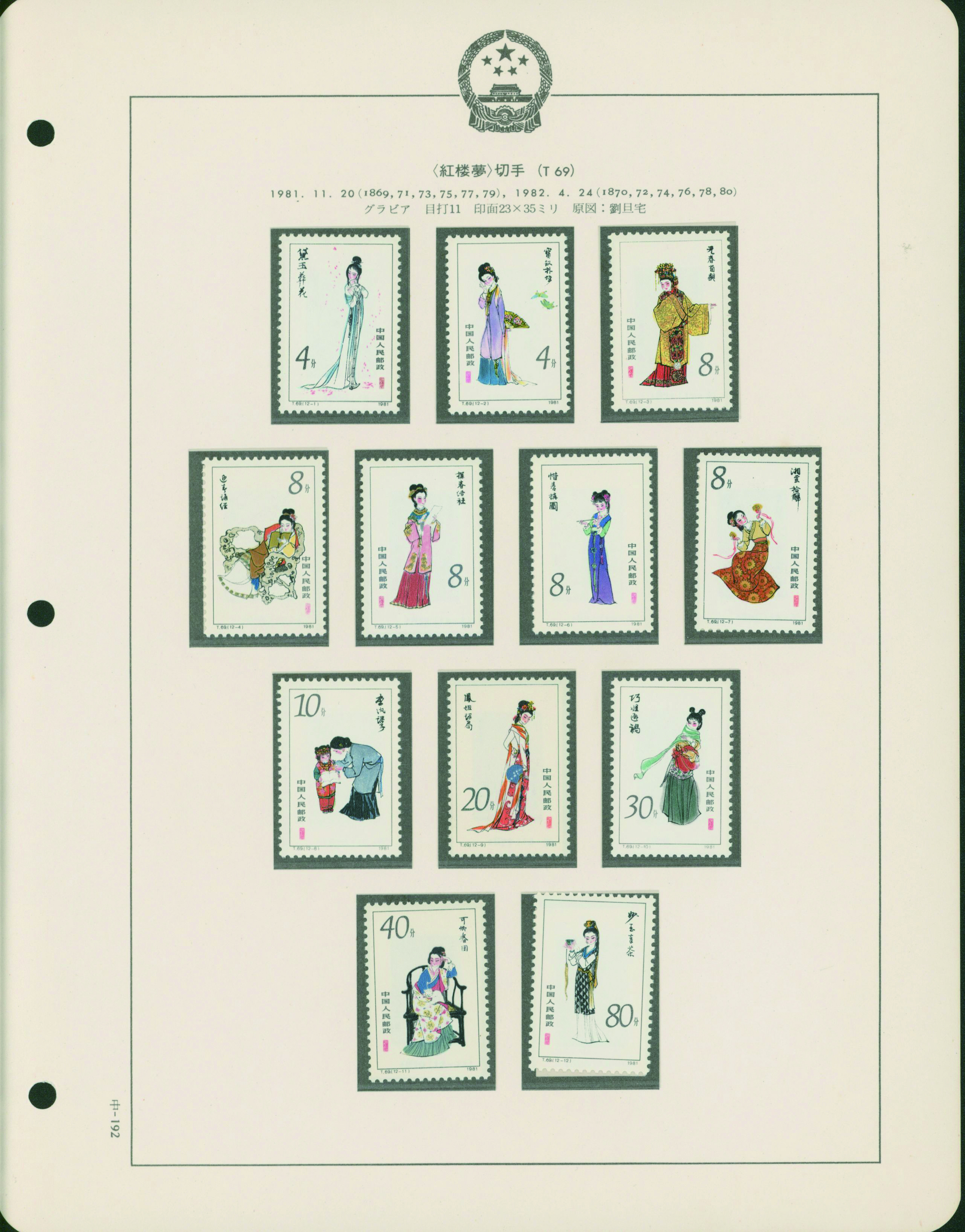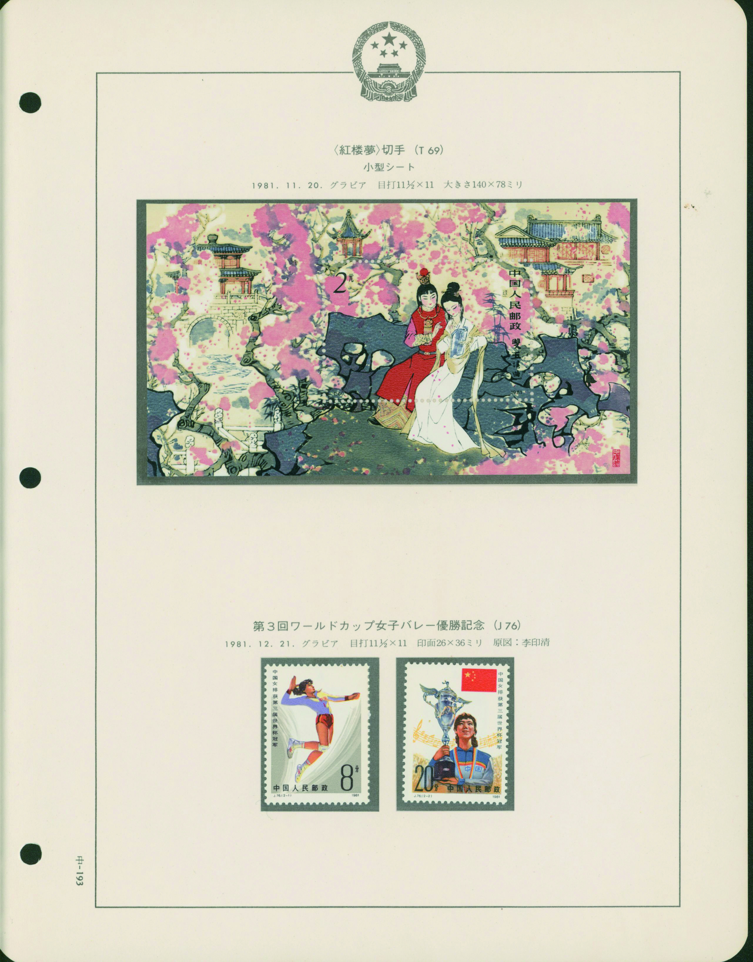 カテゴリー:中国 カタログコレクション China 1981-83 A collection is organized into leaves 43 pages, 2 covers Includes souvenir sheet, stamp booklet, and commemorative covers. unused (中華人民共和国|中国)最低値: 3,000 円