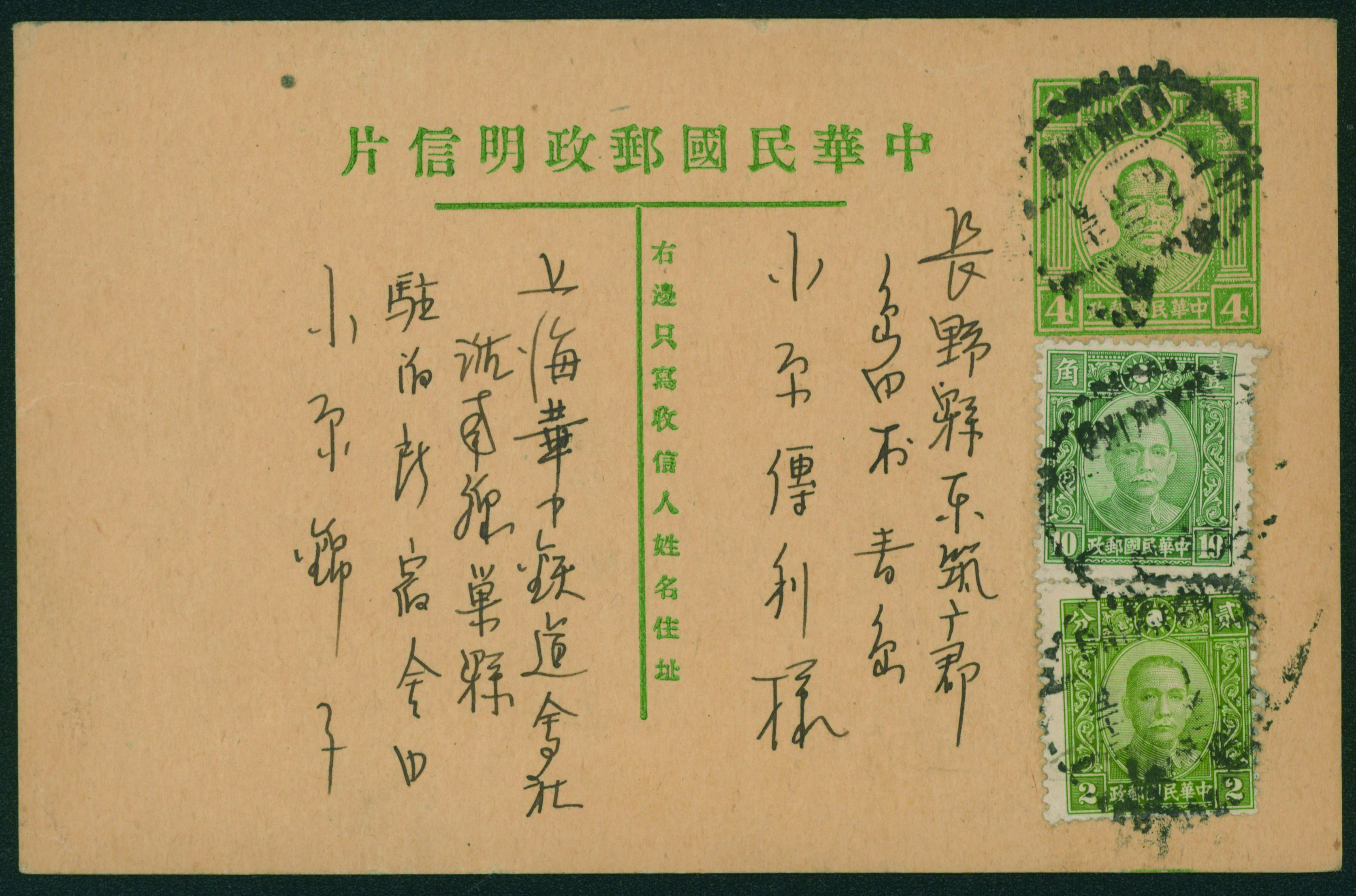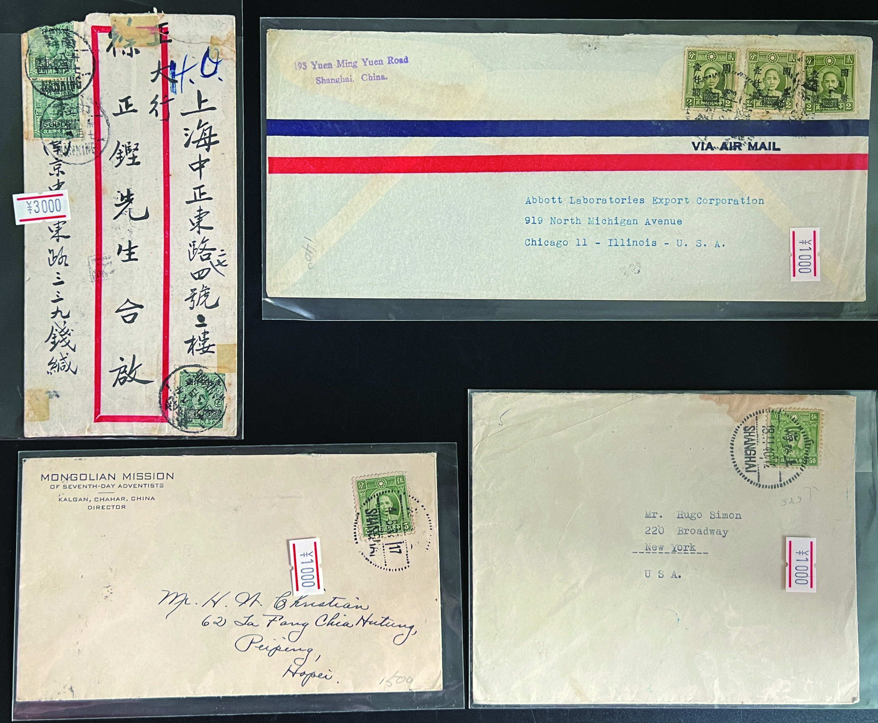 [使用例] 1937年〜1948年 カバー4通 中国 アメリカ宛2通、国内使用2通 開封時に破れているものを含む