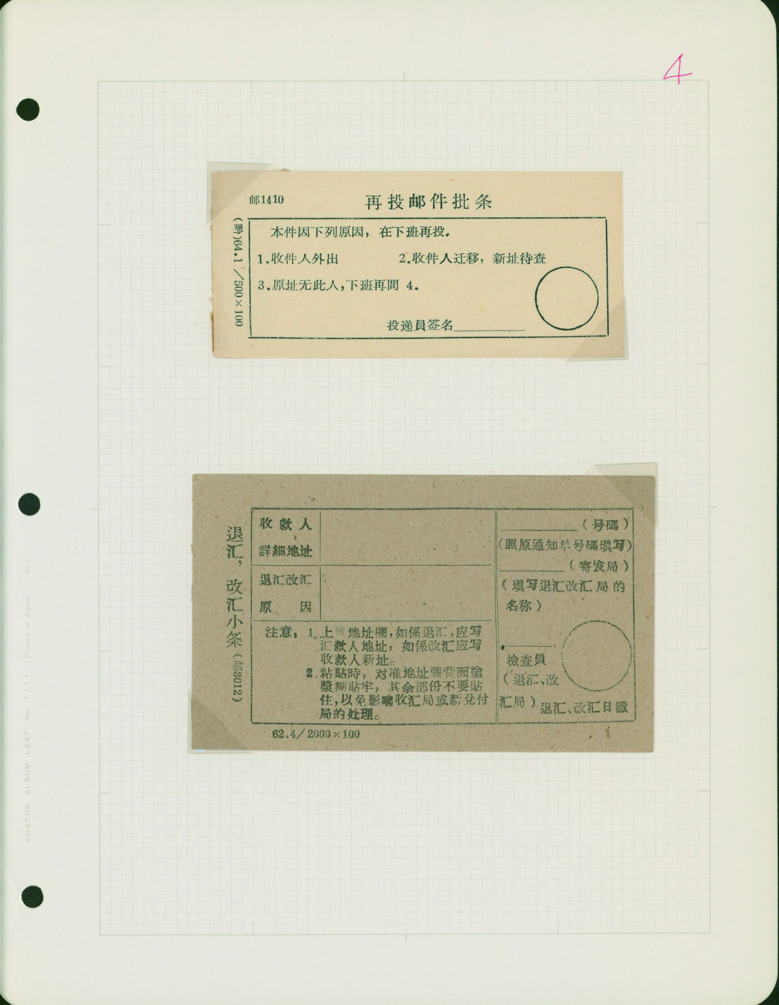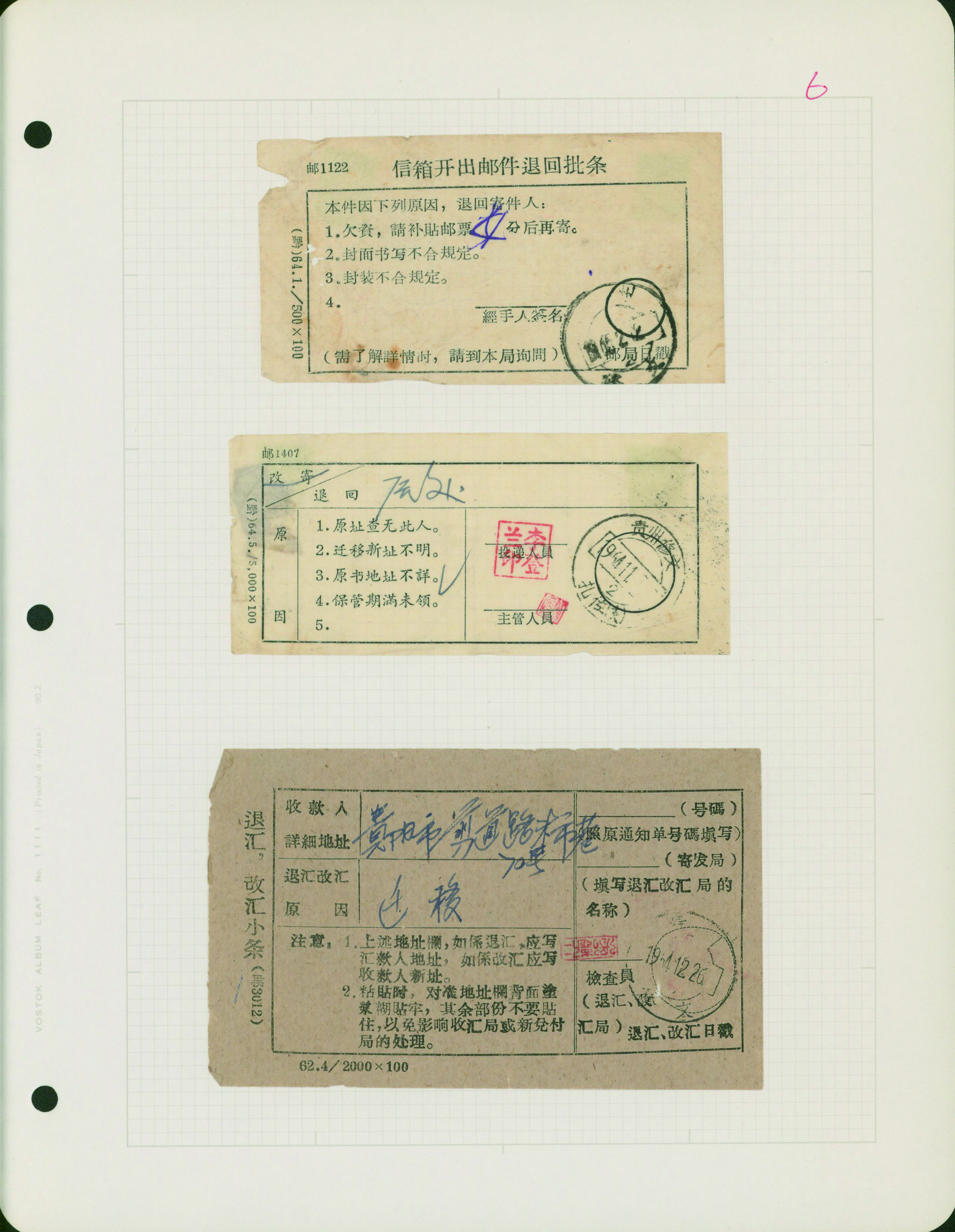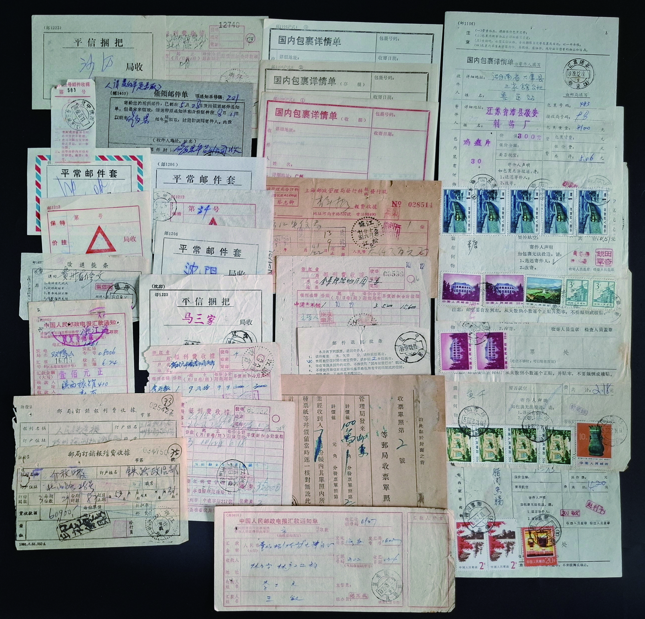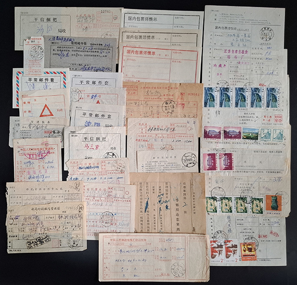 [使用例] 中国 郵政局内部資料 1940年代〜1980年代 小包送り状控、為替送金控、郵袋表示票など 概して状態良い