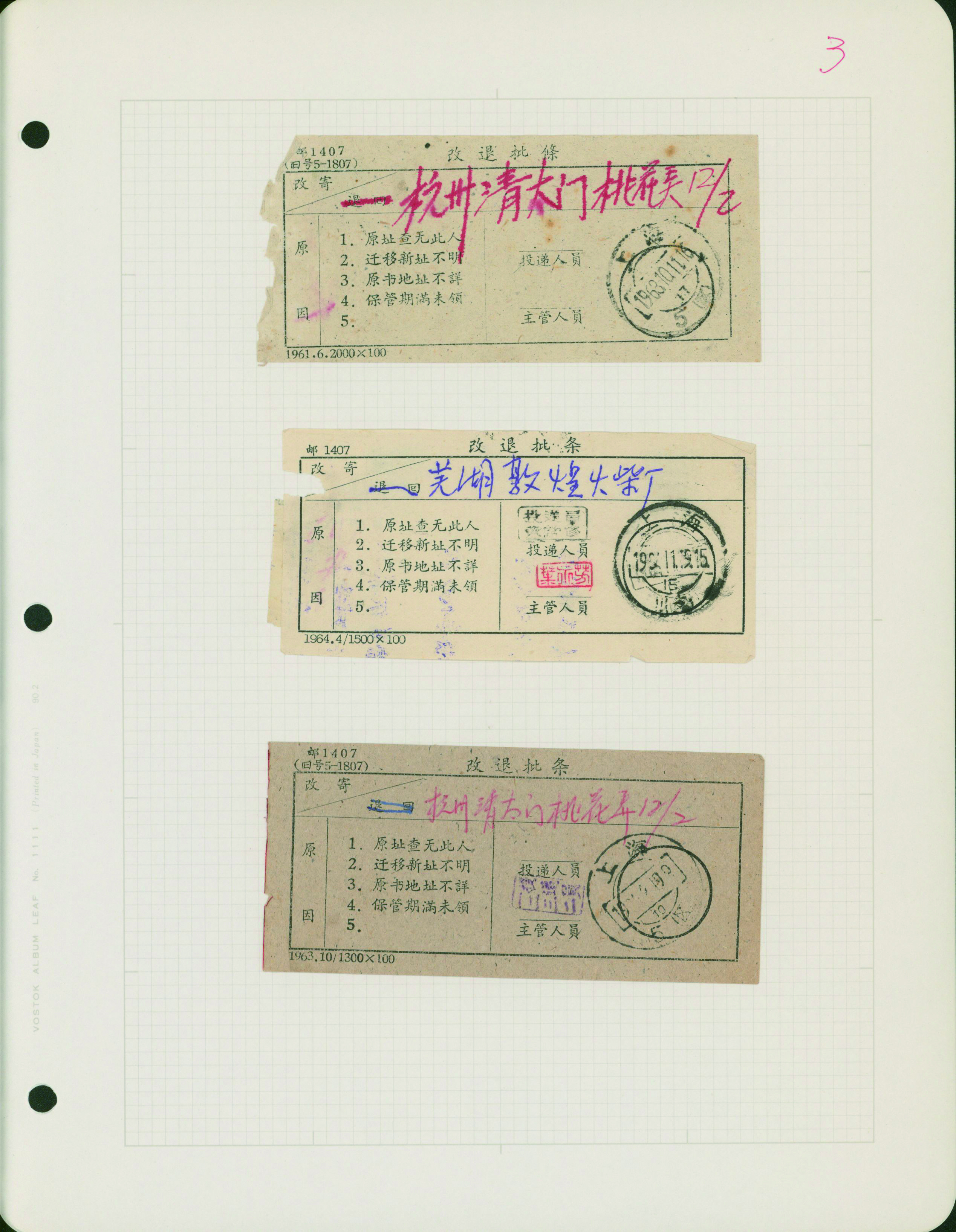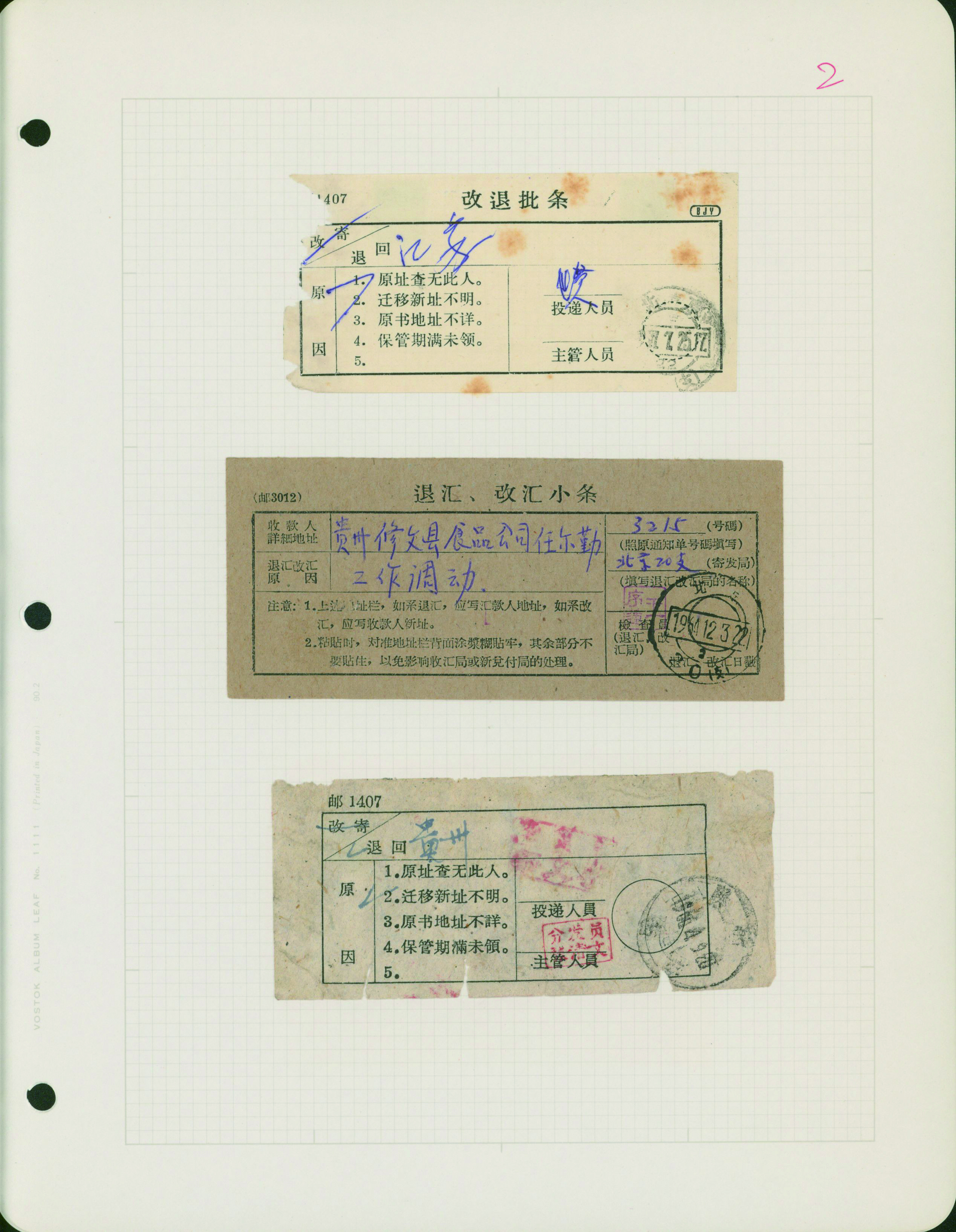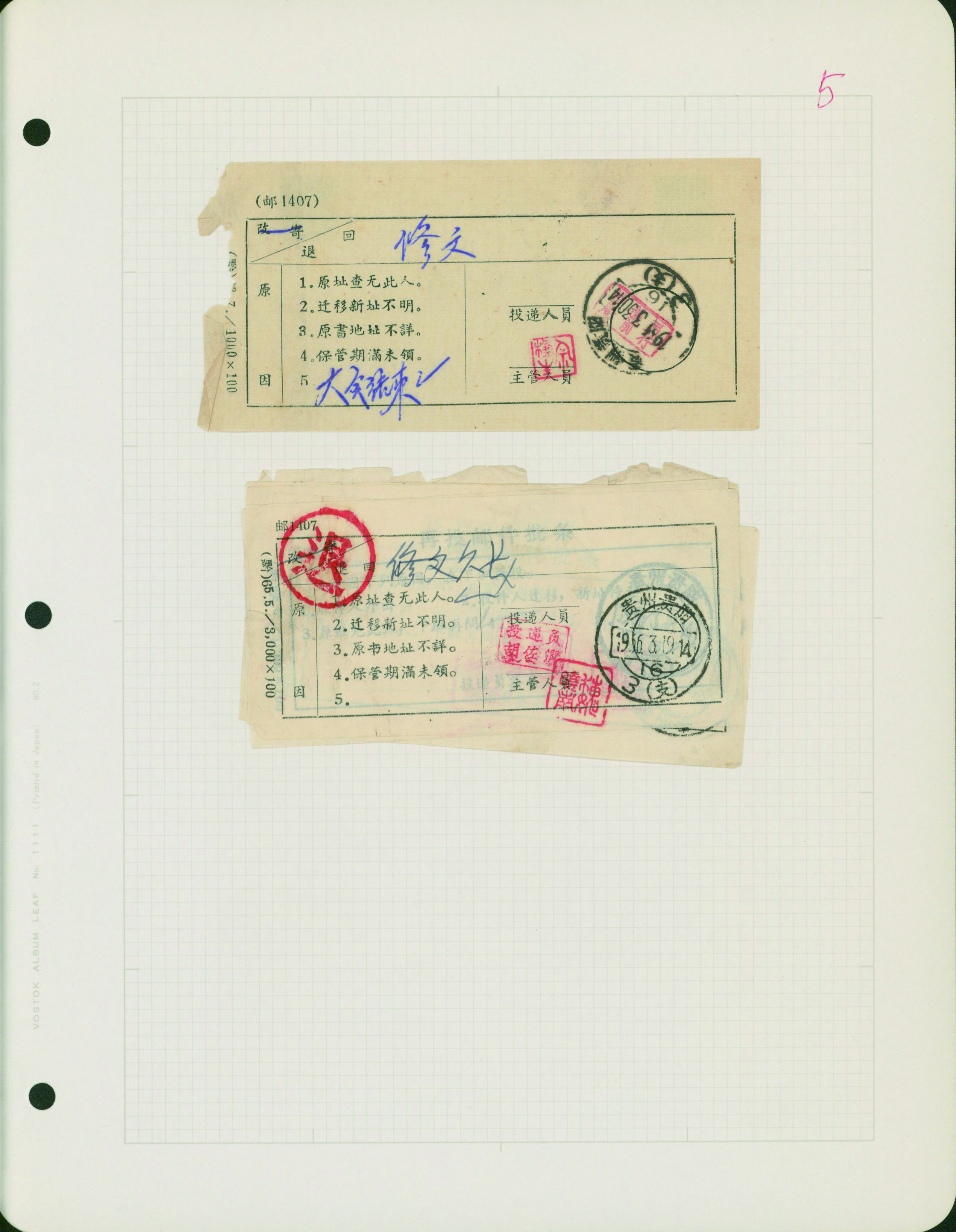 [使用例] 中国 郵政局内部資料 1940年代〜1980年代 小包送り状控、為替送金控、郵袋表示票など 概して状態良い