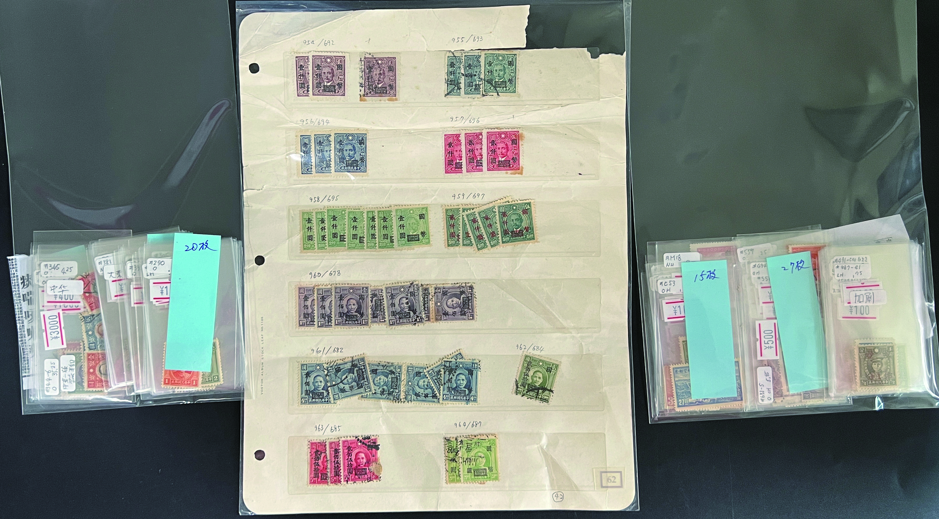 [Accumulation] 中国 1931-1948 孫文及び烈士切手主体のアキュームレーション 小袋に分けて整理された切手を含み、また記念切手のセットなどを含むが重複がある。 切手186枚 概して状態良い 未済混合