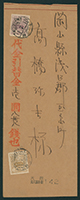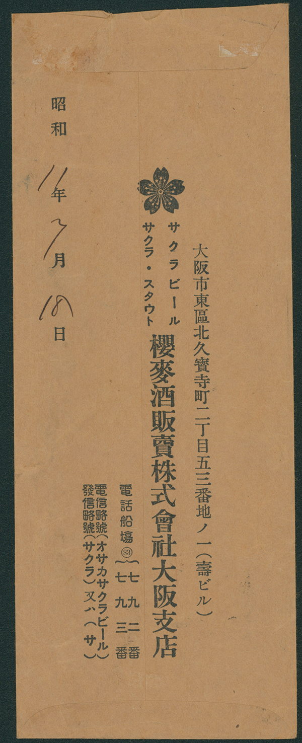 | ロット説明 新毛平面5銭, 13銭 櫛型印 昭和11 7 18 大阪北久寛寺町 書状書留代金引換 |